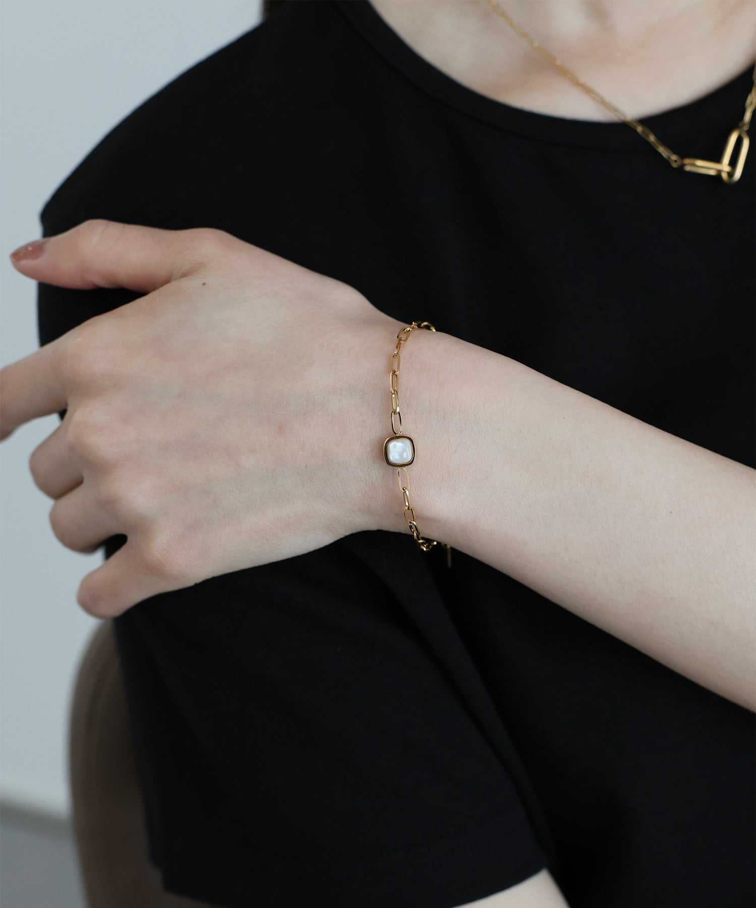 シェルの上品な魅力が引き立つリンクチェーンブレスレット