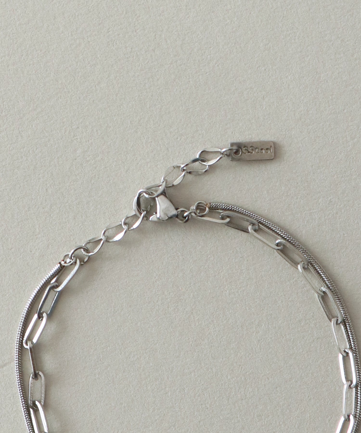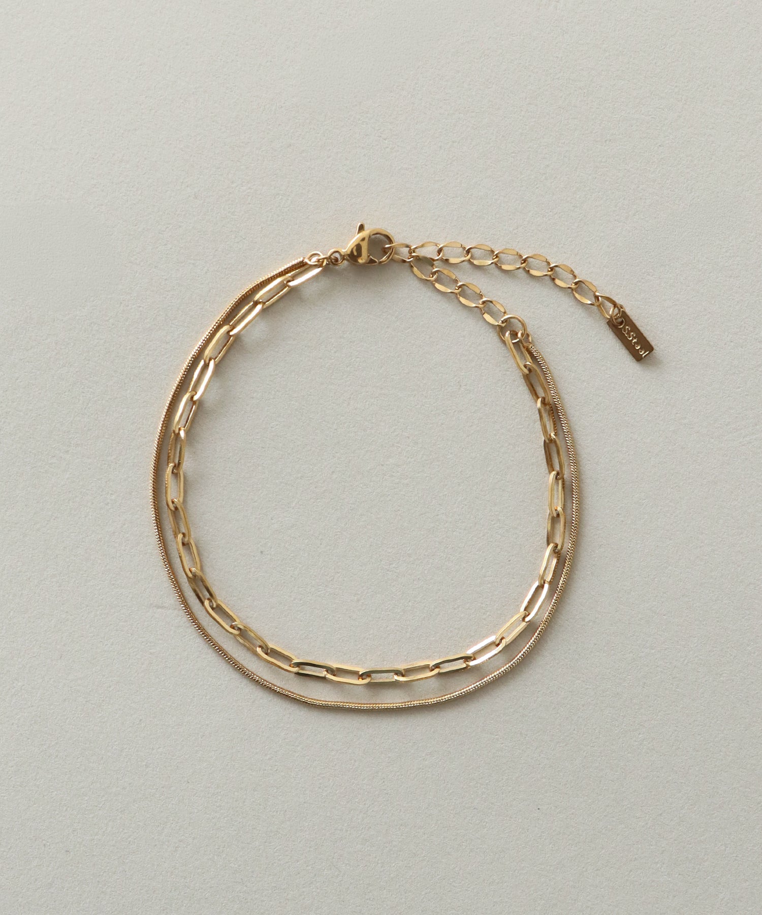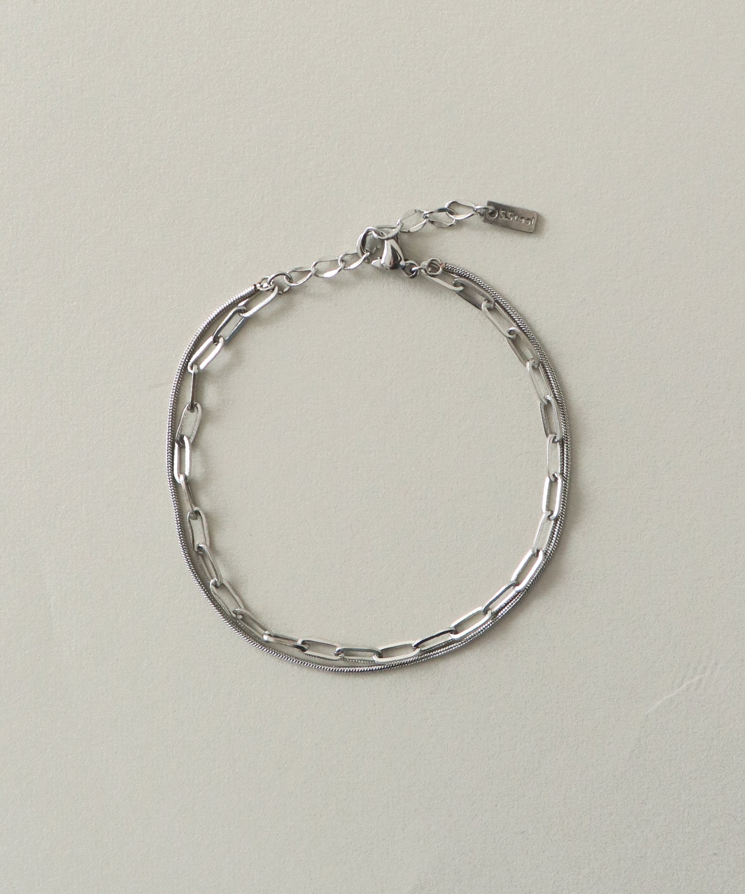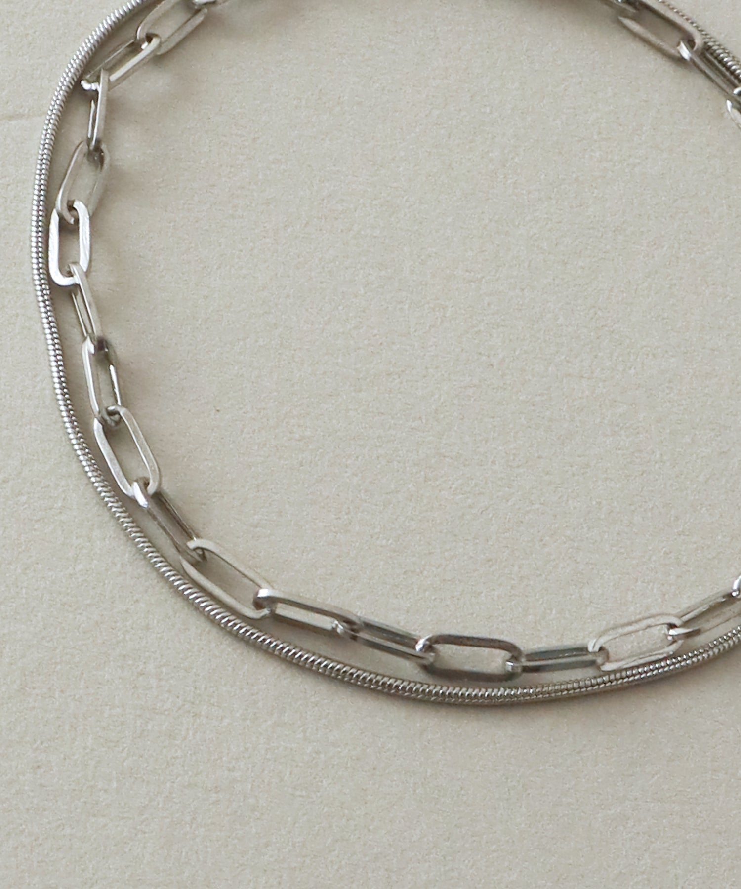 洗練された2種のチェーンが織りなす、モダンな2連レイヤードブレスレット