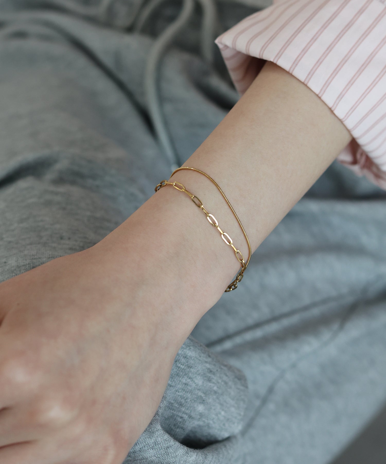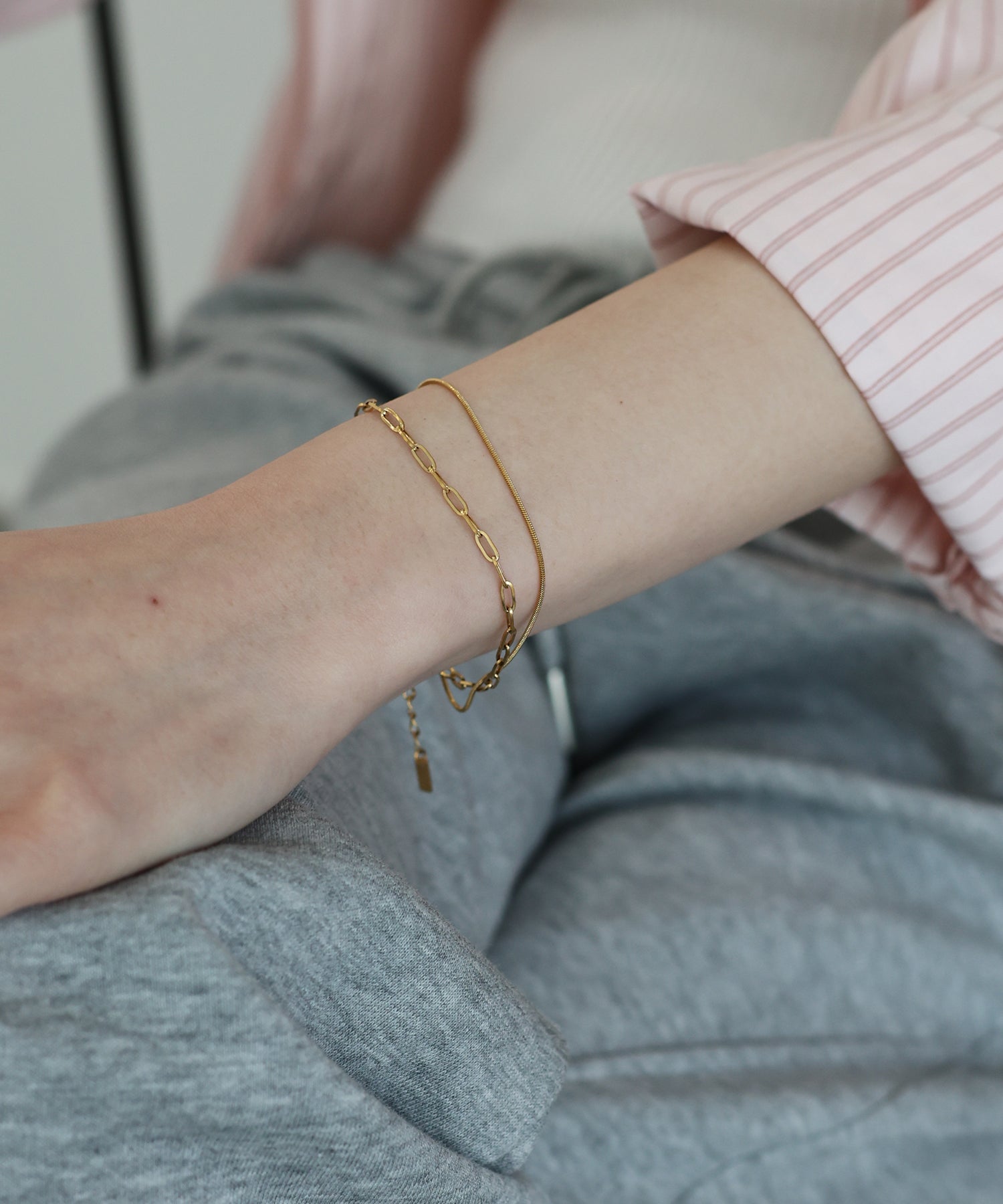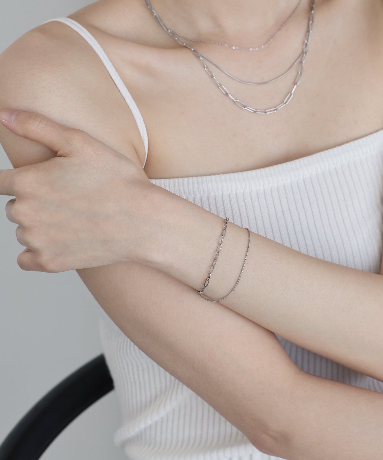 洗練された2種のチェーンが織りなす、モダンな2連レイヤードブレスレット