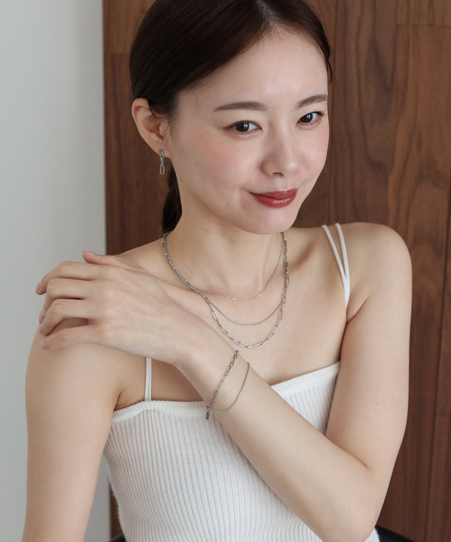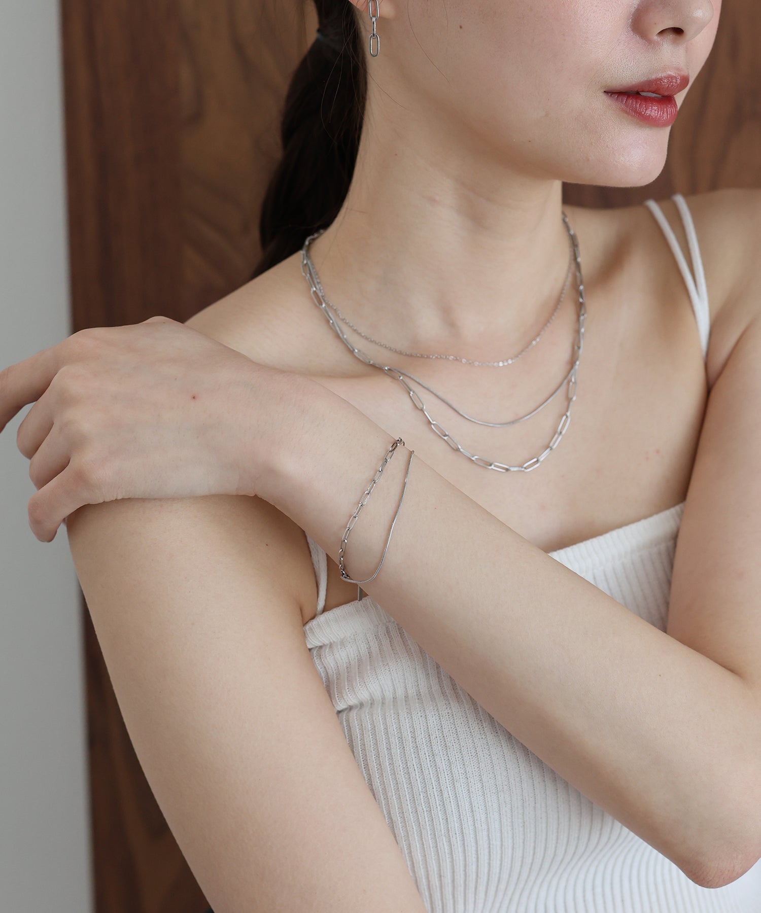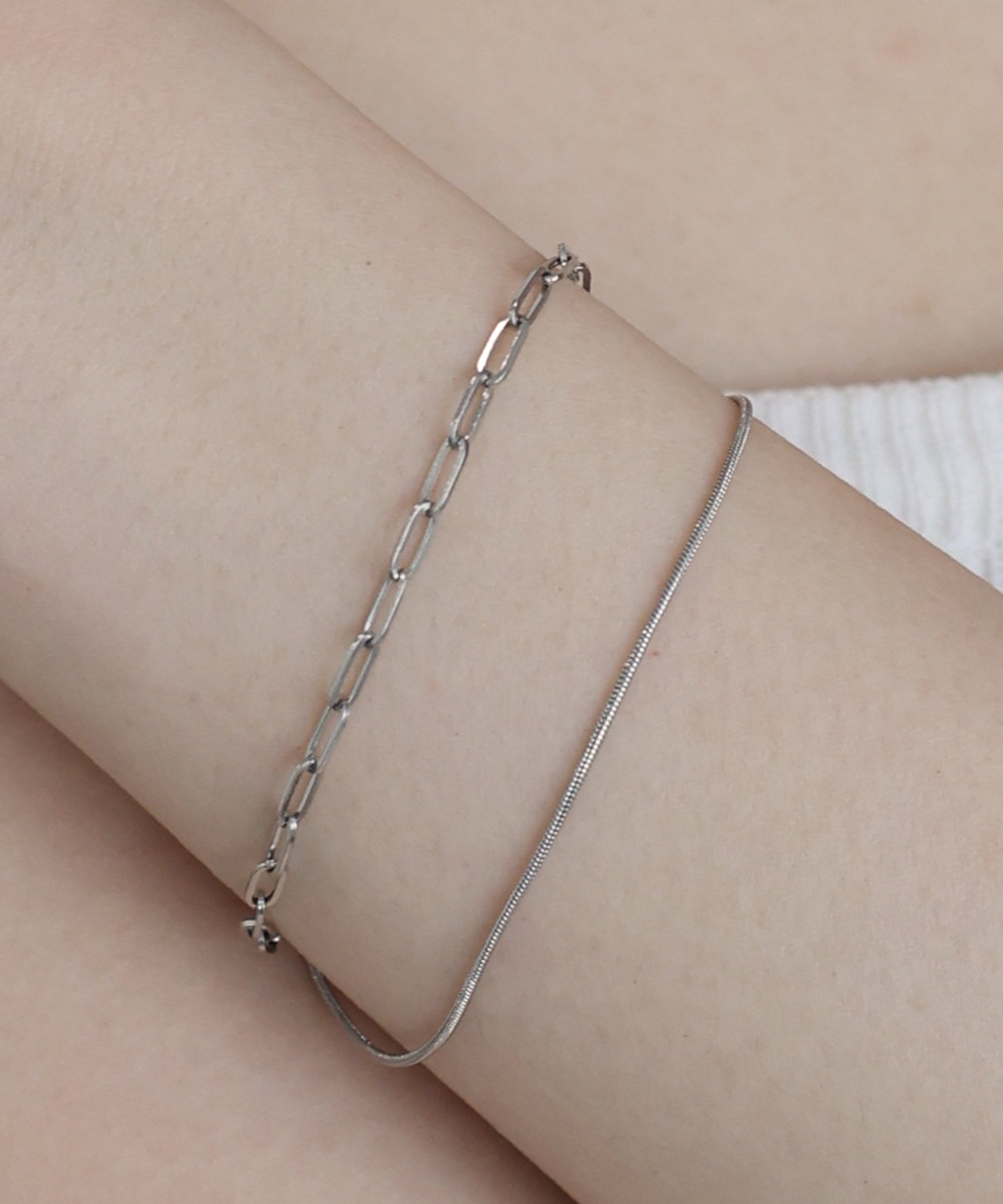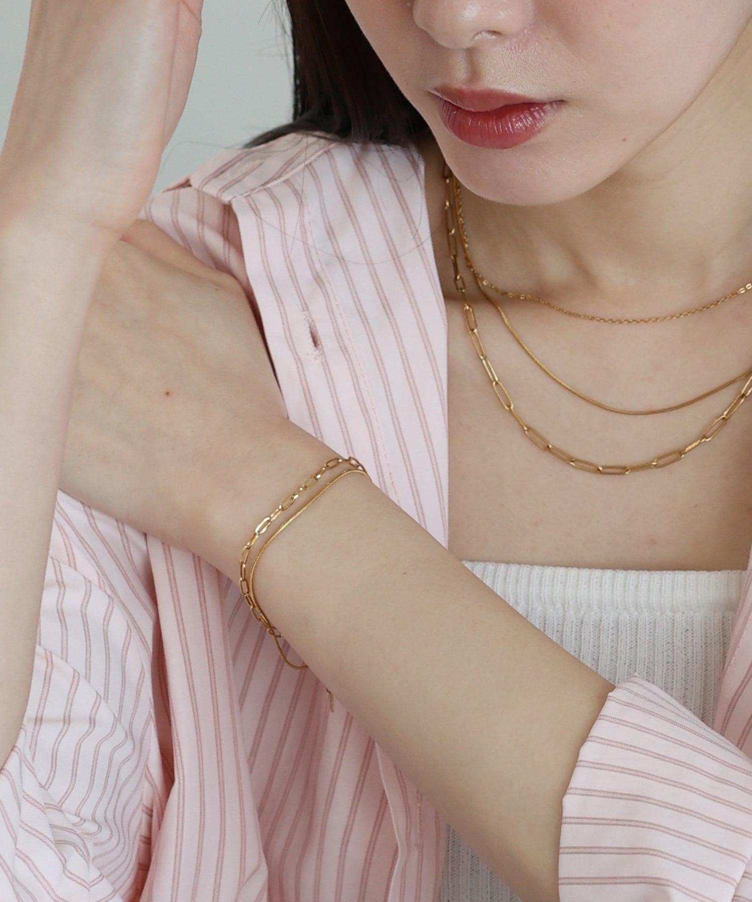 洗練された2種のチェーンが織りなす、モダンな2連レイヤードブレスレット