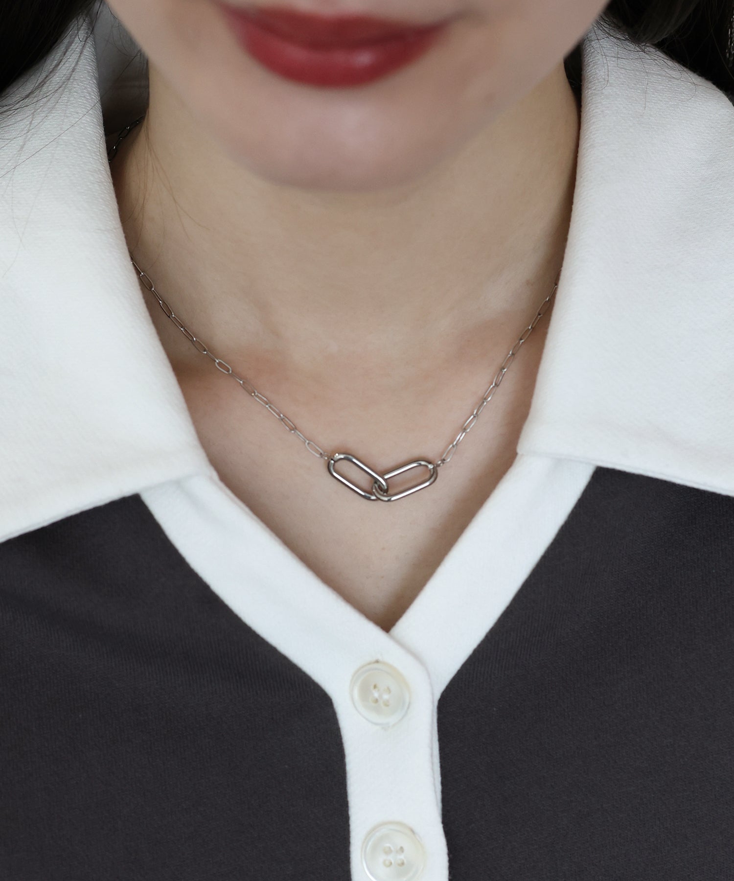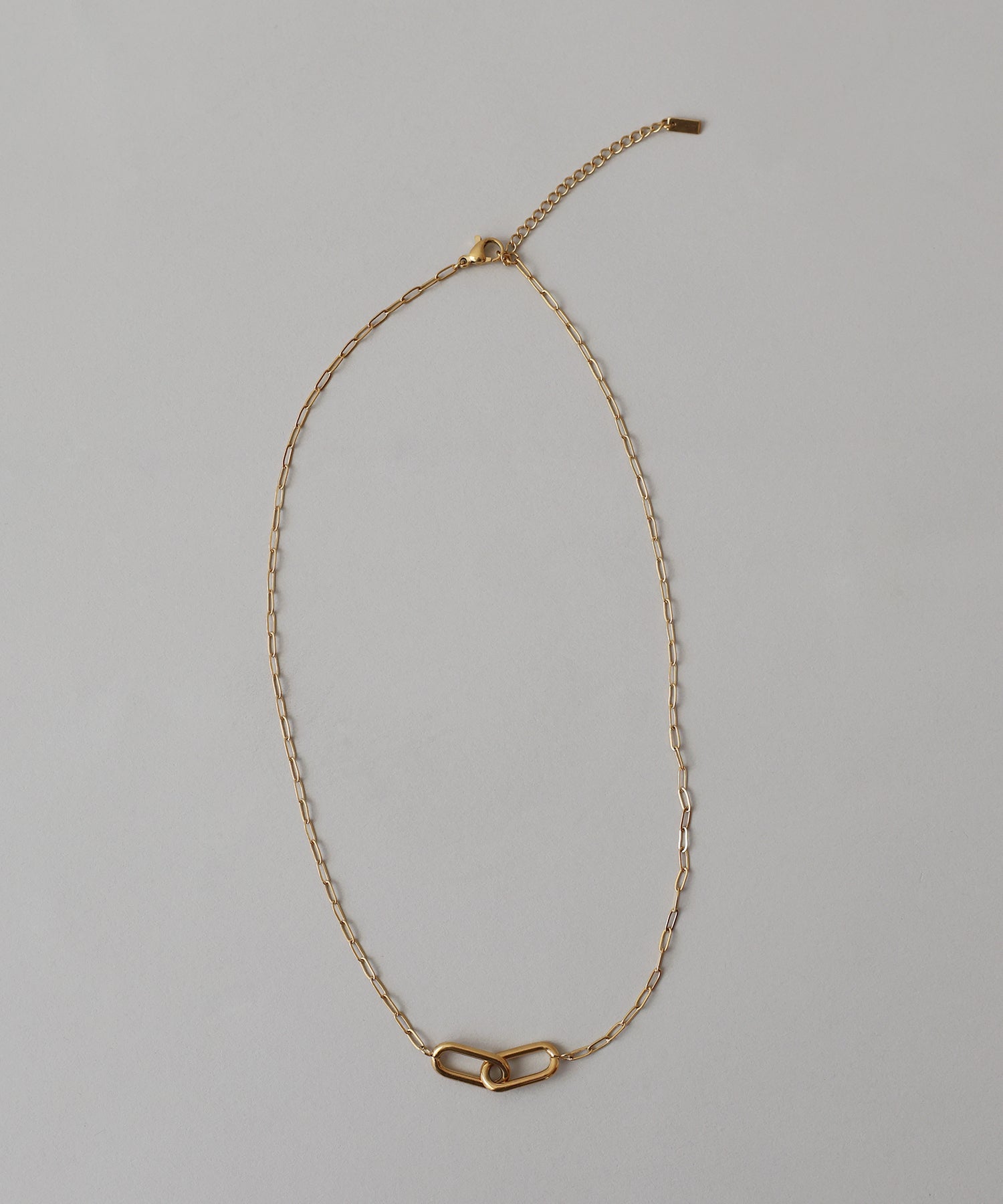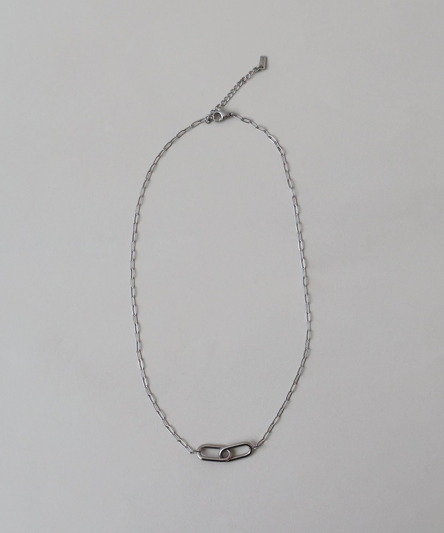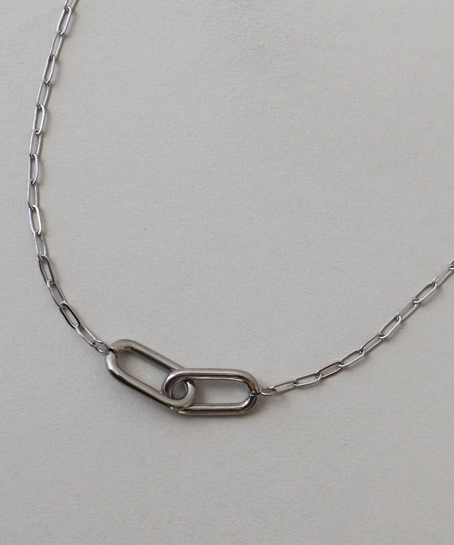 オーバル型の駒が連なったリンクチェーンデザインのネックレス。