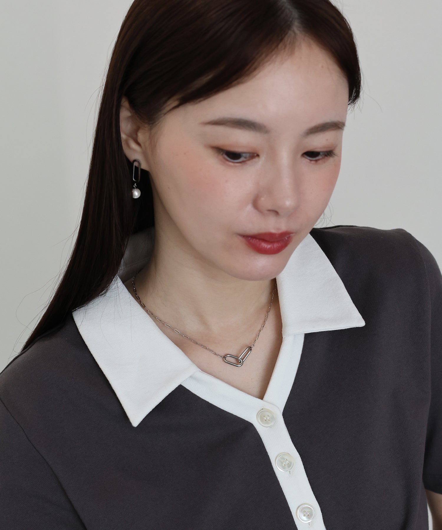 トップにあしらった太めのチェーンが存在感を放ちアクセントになります。