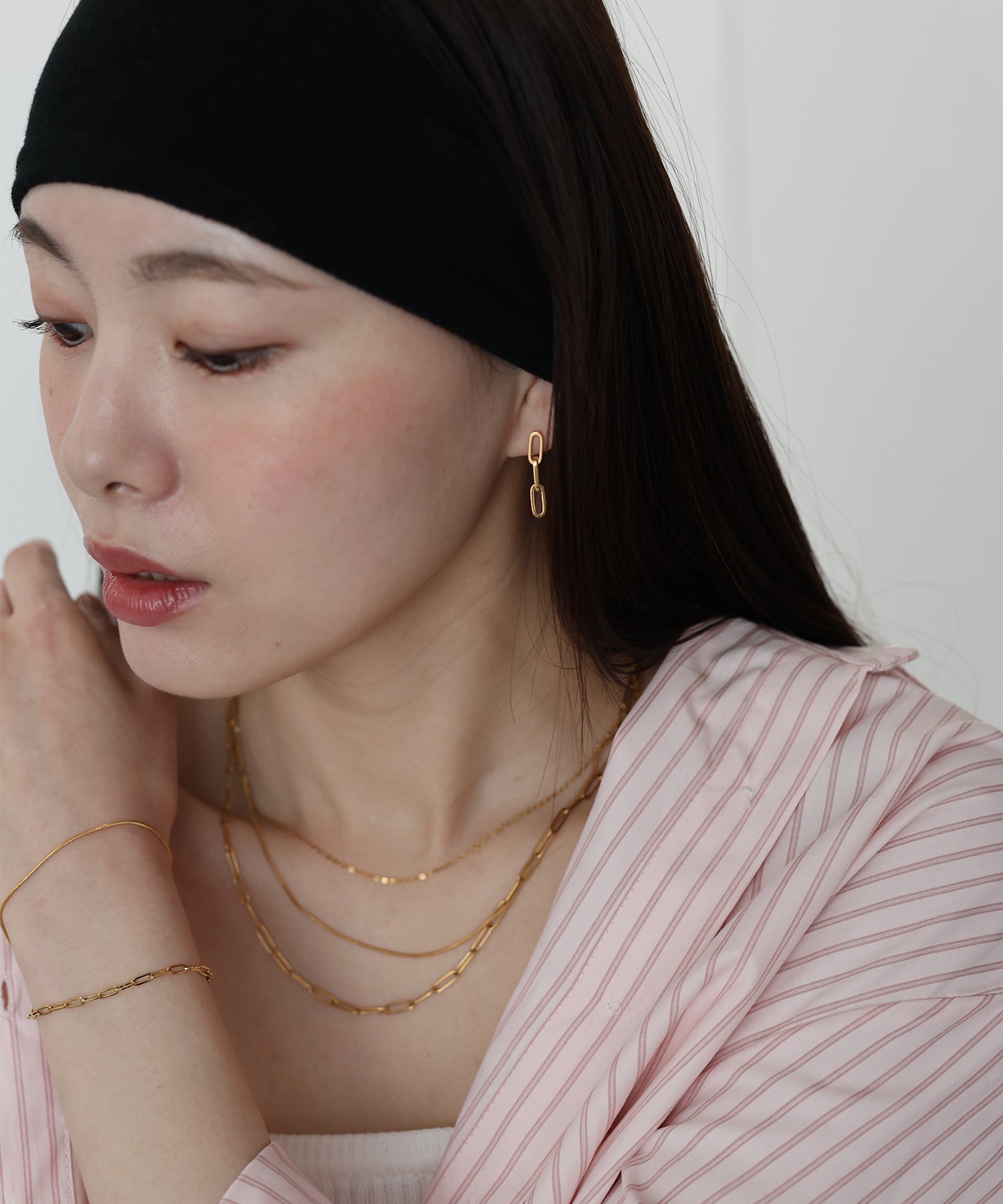金属アレルギーの方にもお楽しみいただけるよう、汗や水に強く変色しにくいステンレス素材を使用したアクセサリーです。