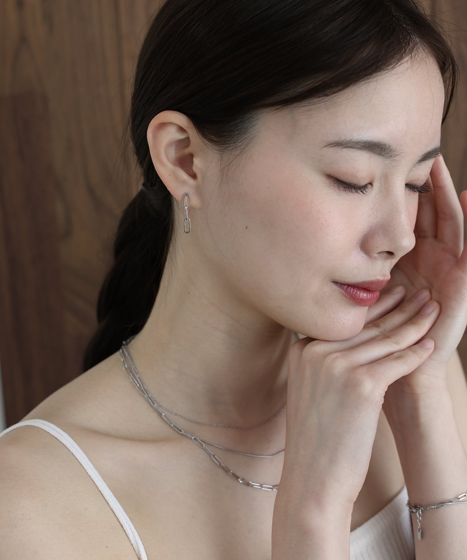 繊細なチェーンが描くしなやかな曲線が上品なチェーンピアス。