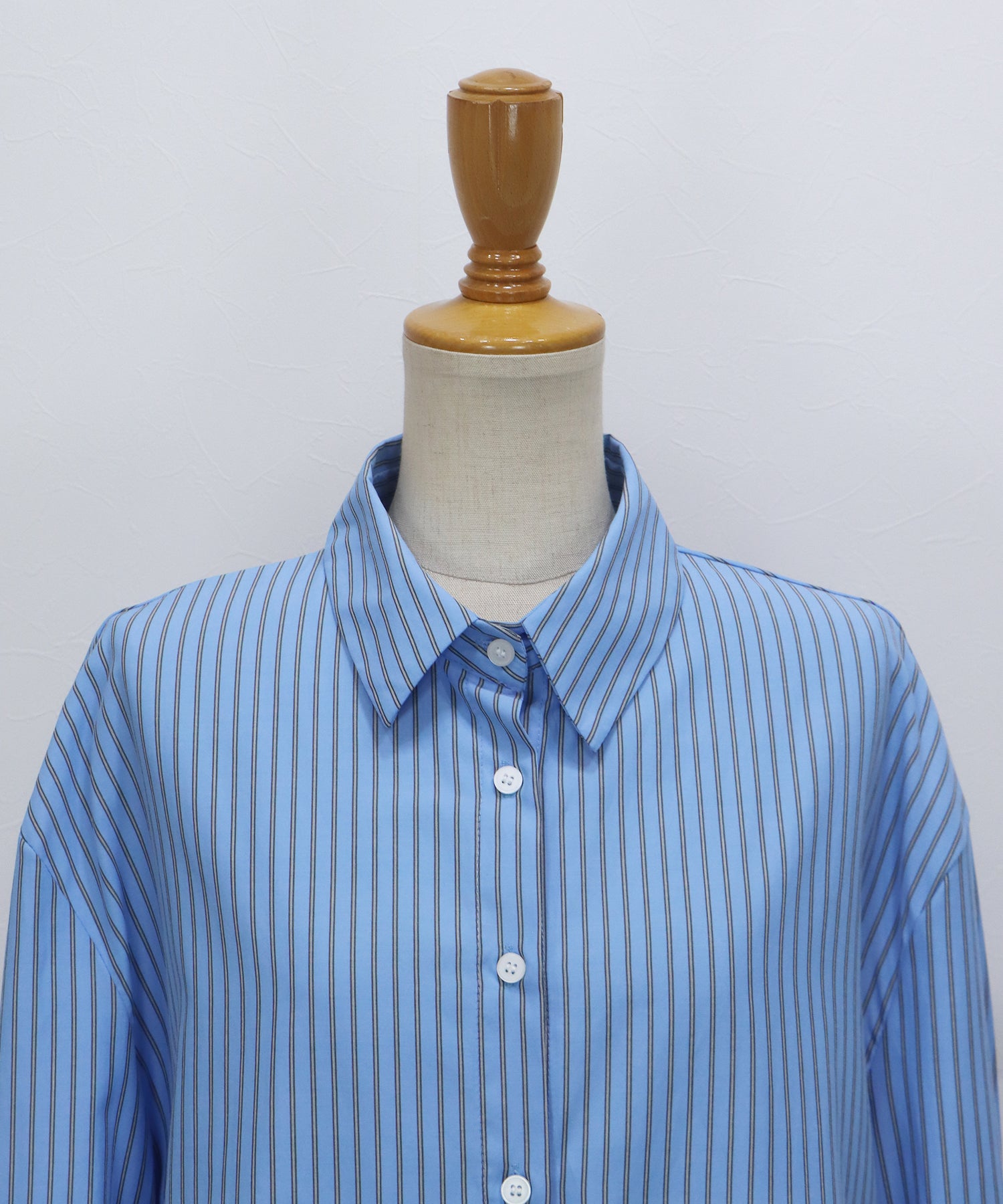 等間隔に並んだストライプが、クリーンで知的な印象を与えるシャツ。
