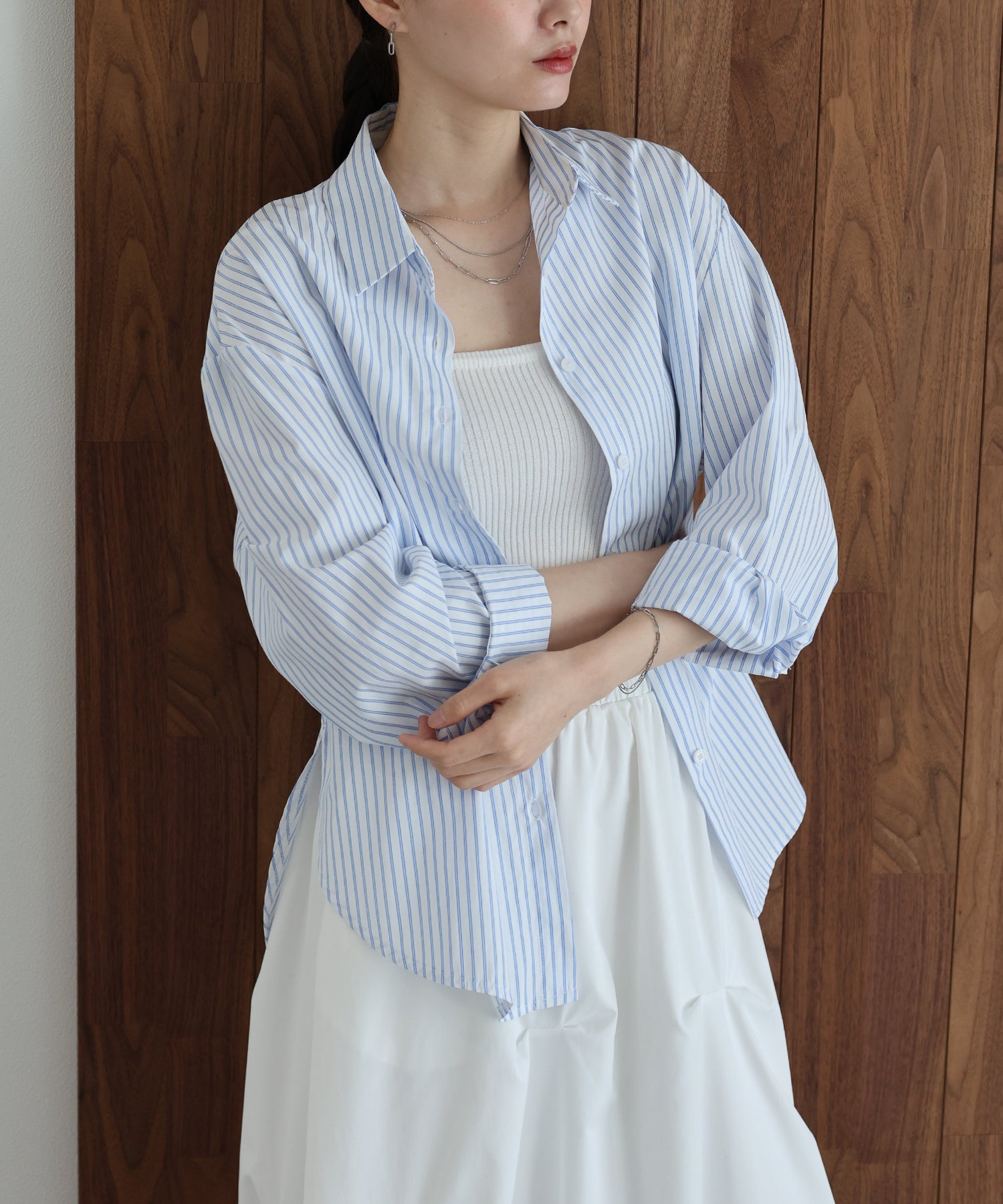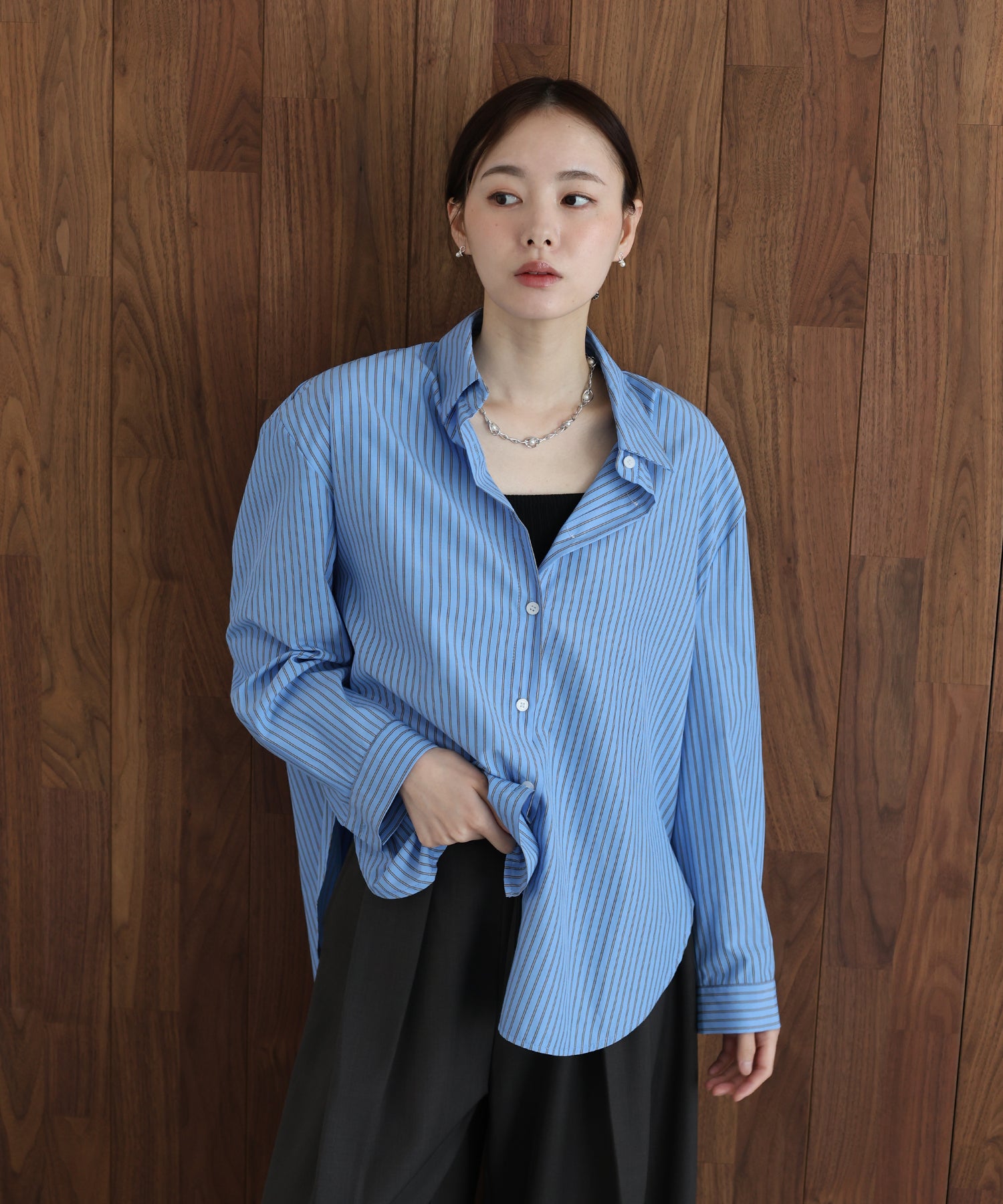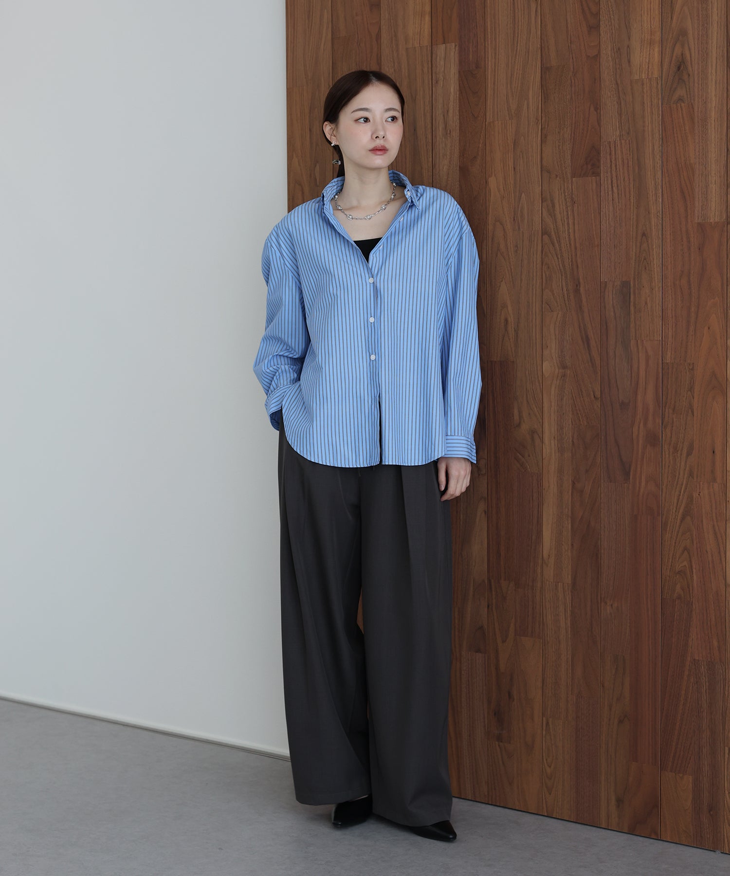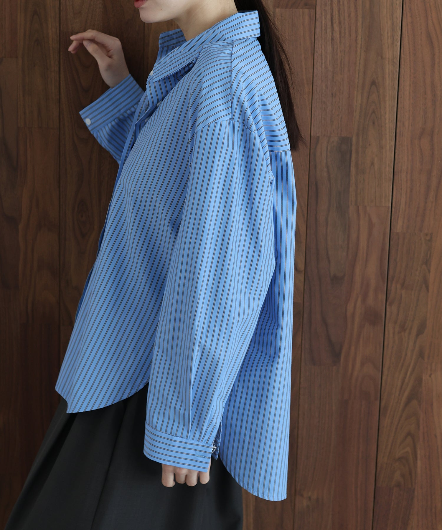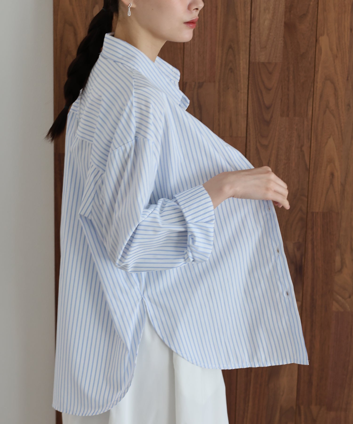 洗練されたリラックス感を纏う、オーバーサイズストライプシャツ
