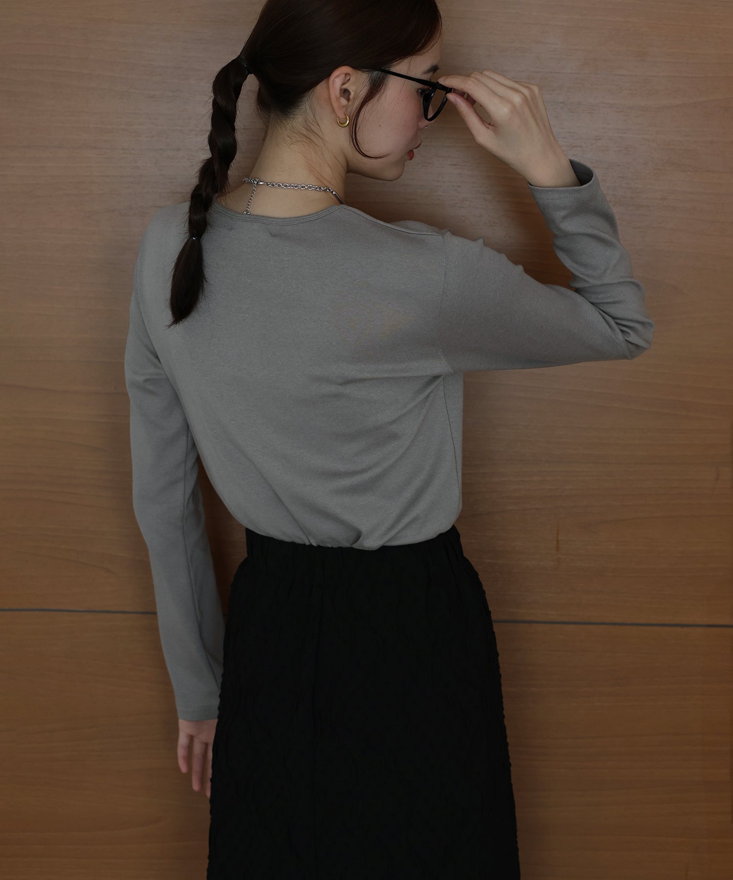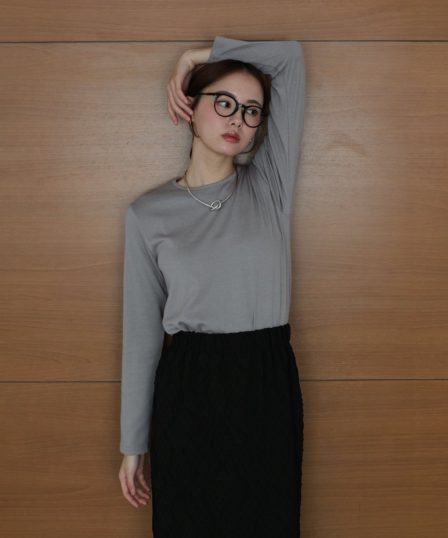 柔らかな綿混素材が肌に心地よく馴染み、ほどよくフィットするシルエットが洗練されたムードを演出します。