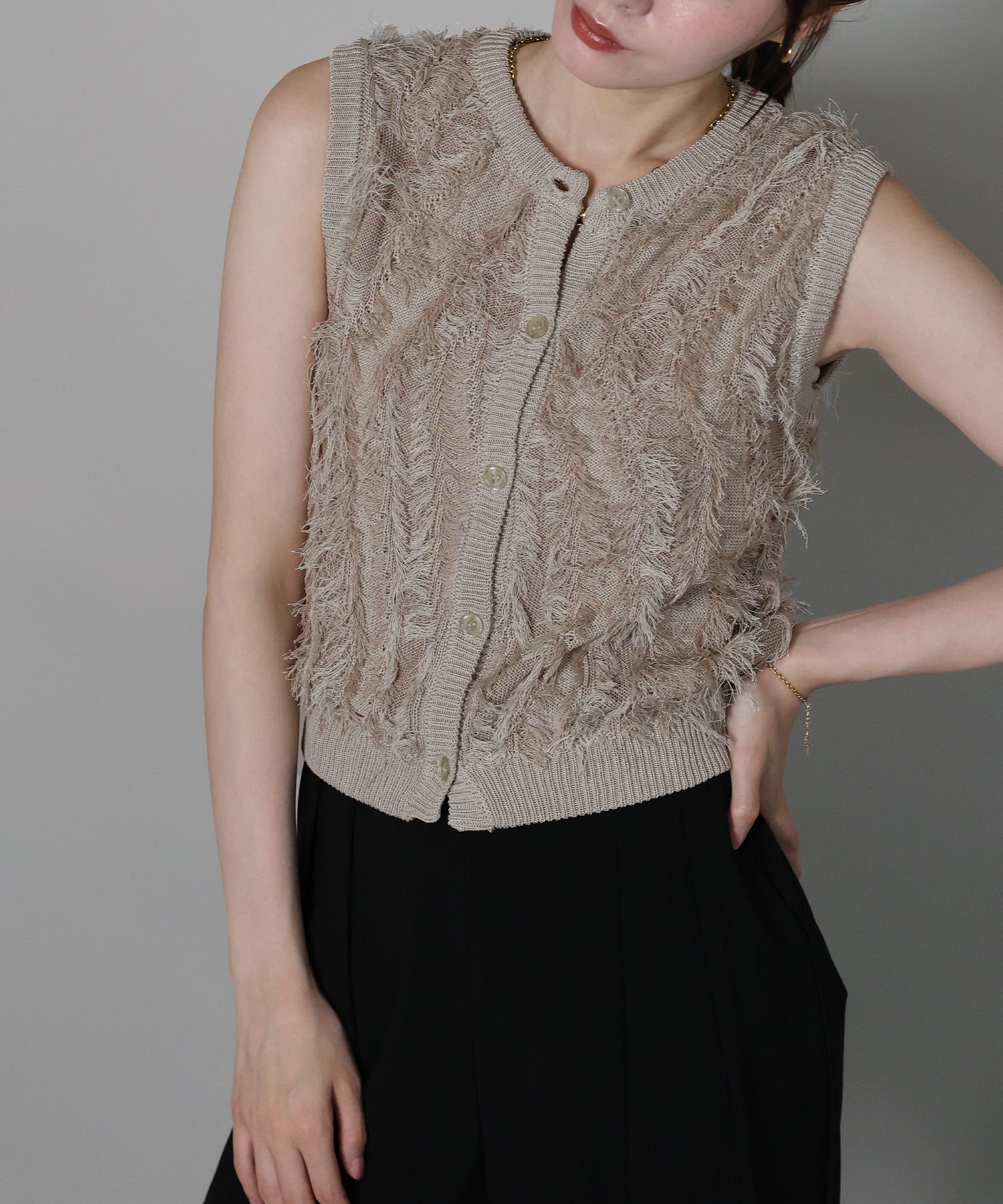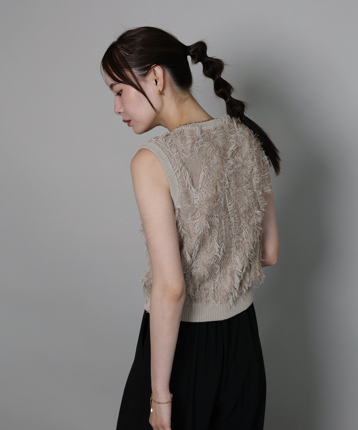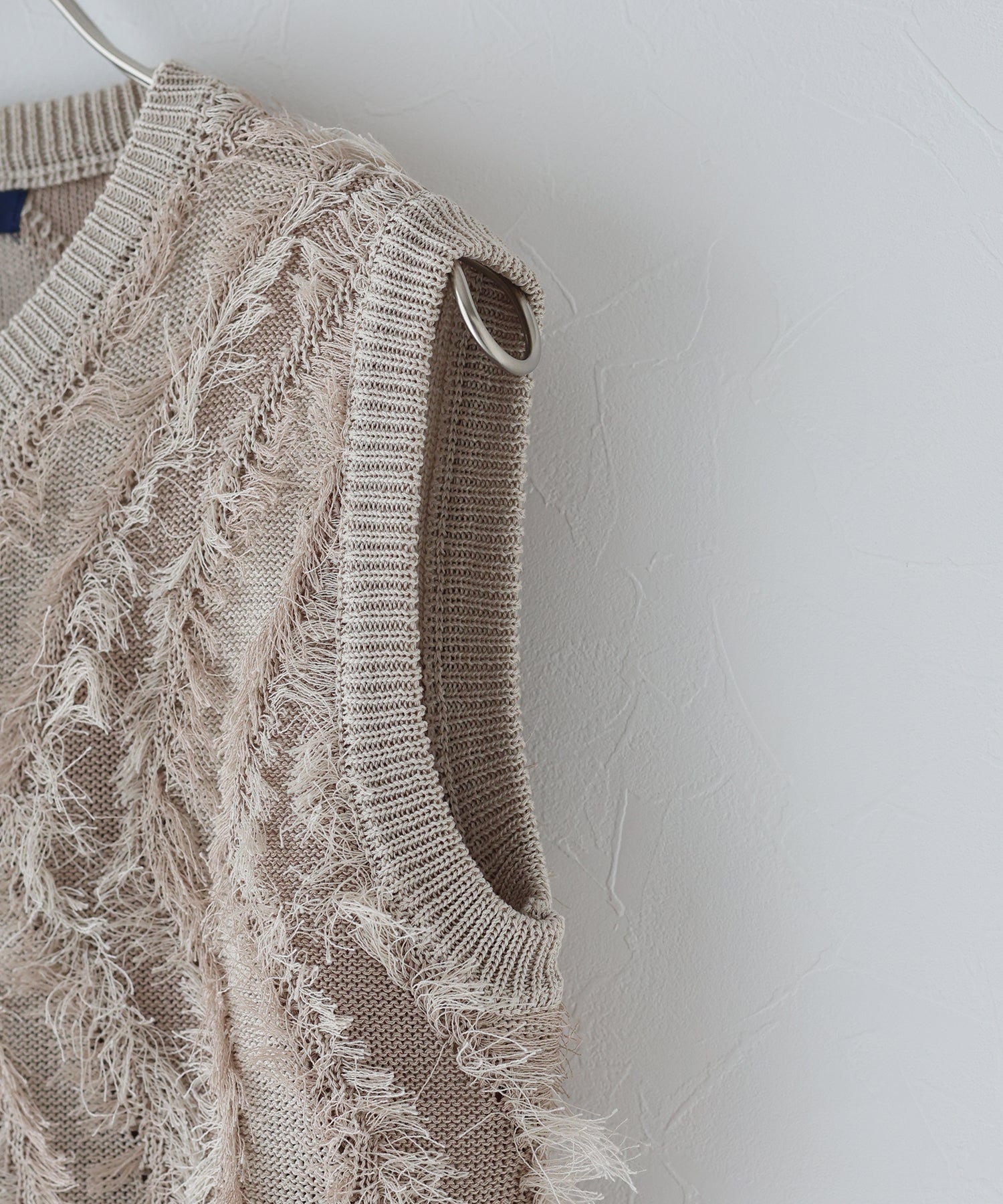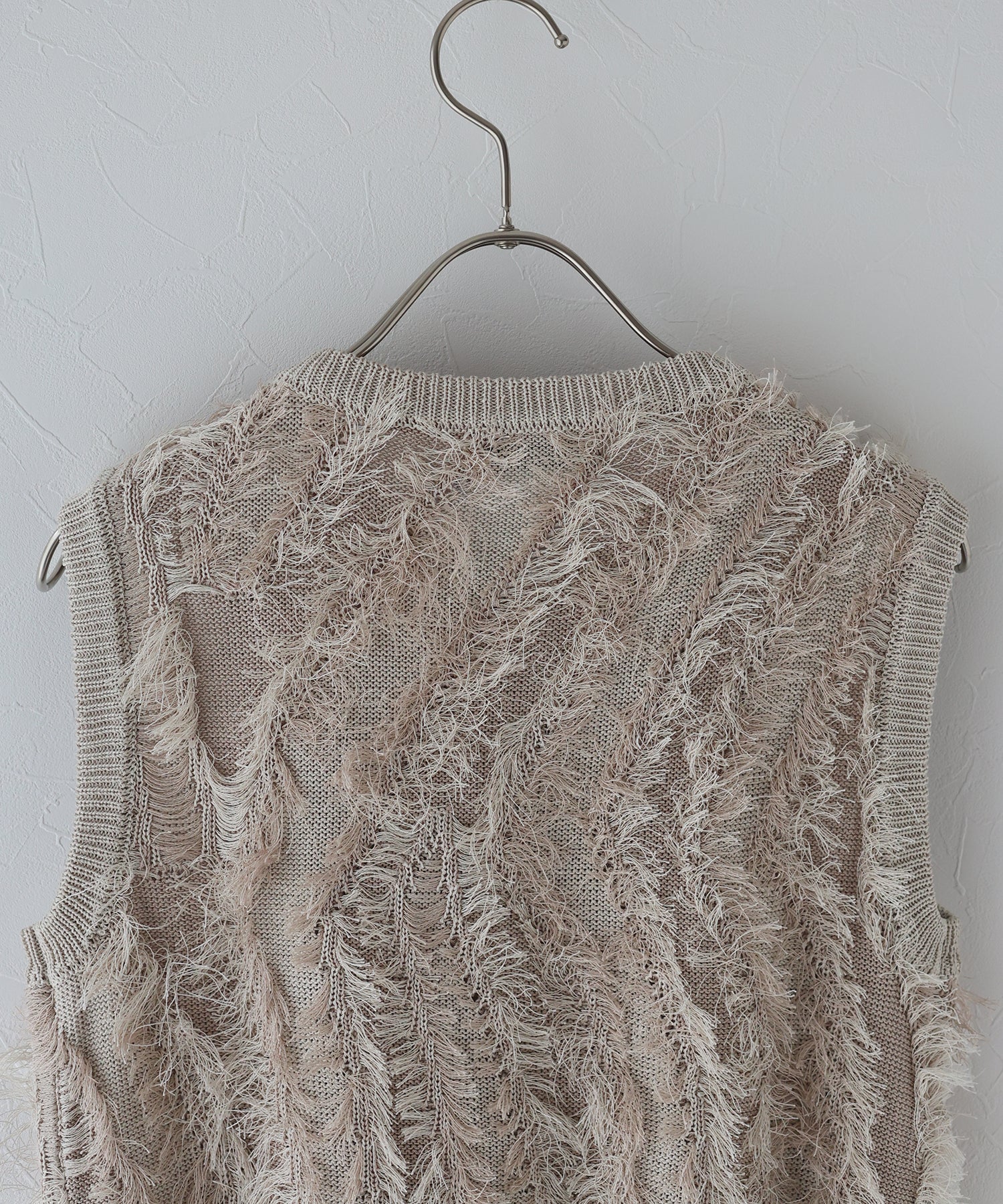 立体的なフリンジデザインが魅力のニットフリンジベスト