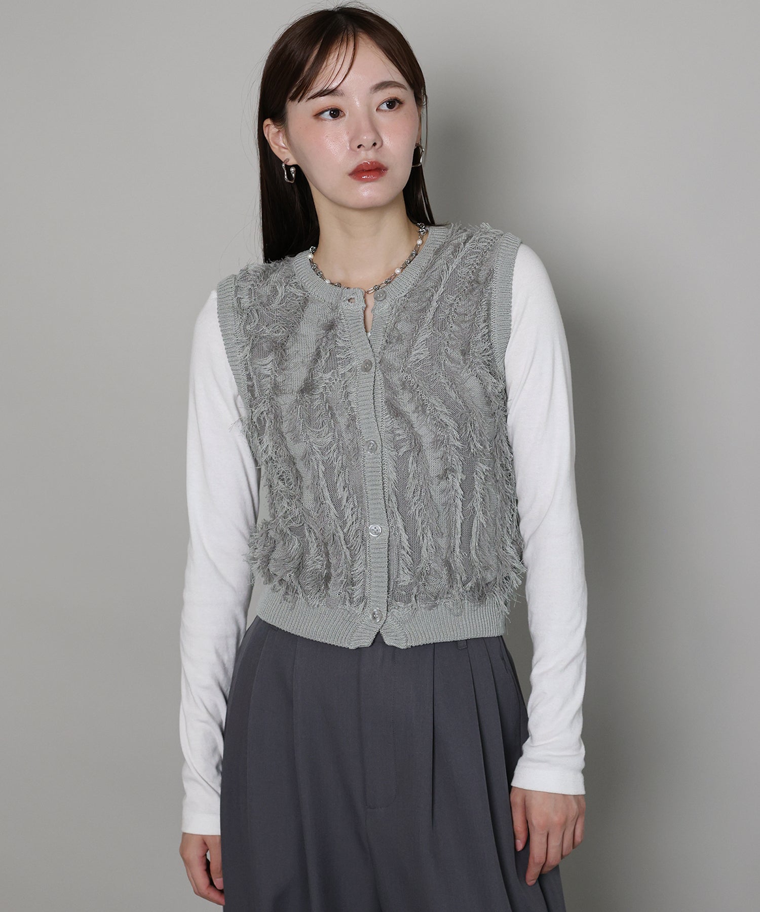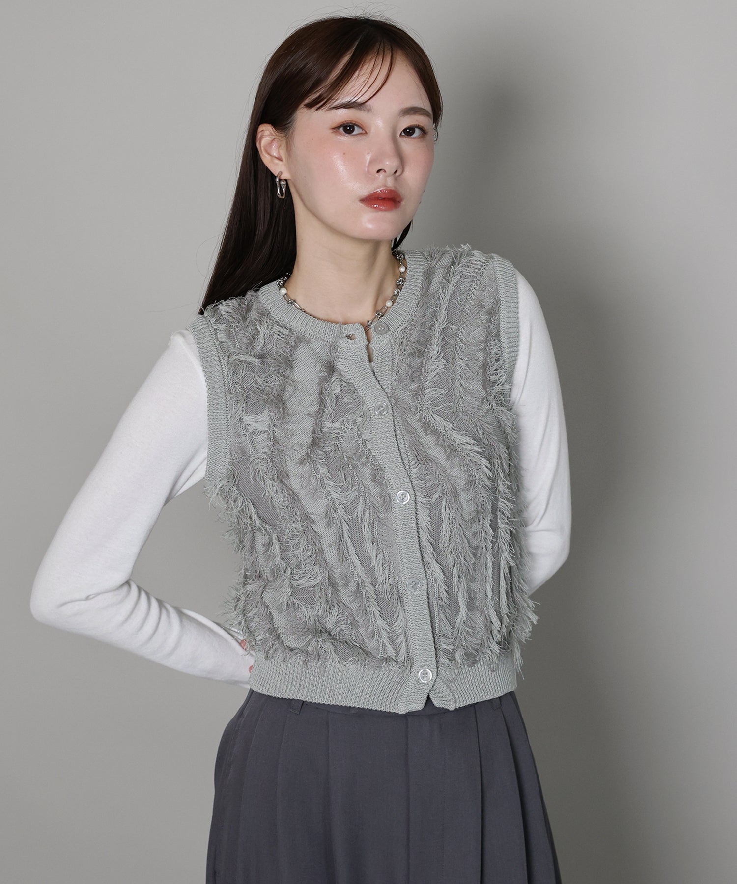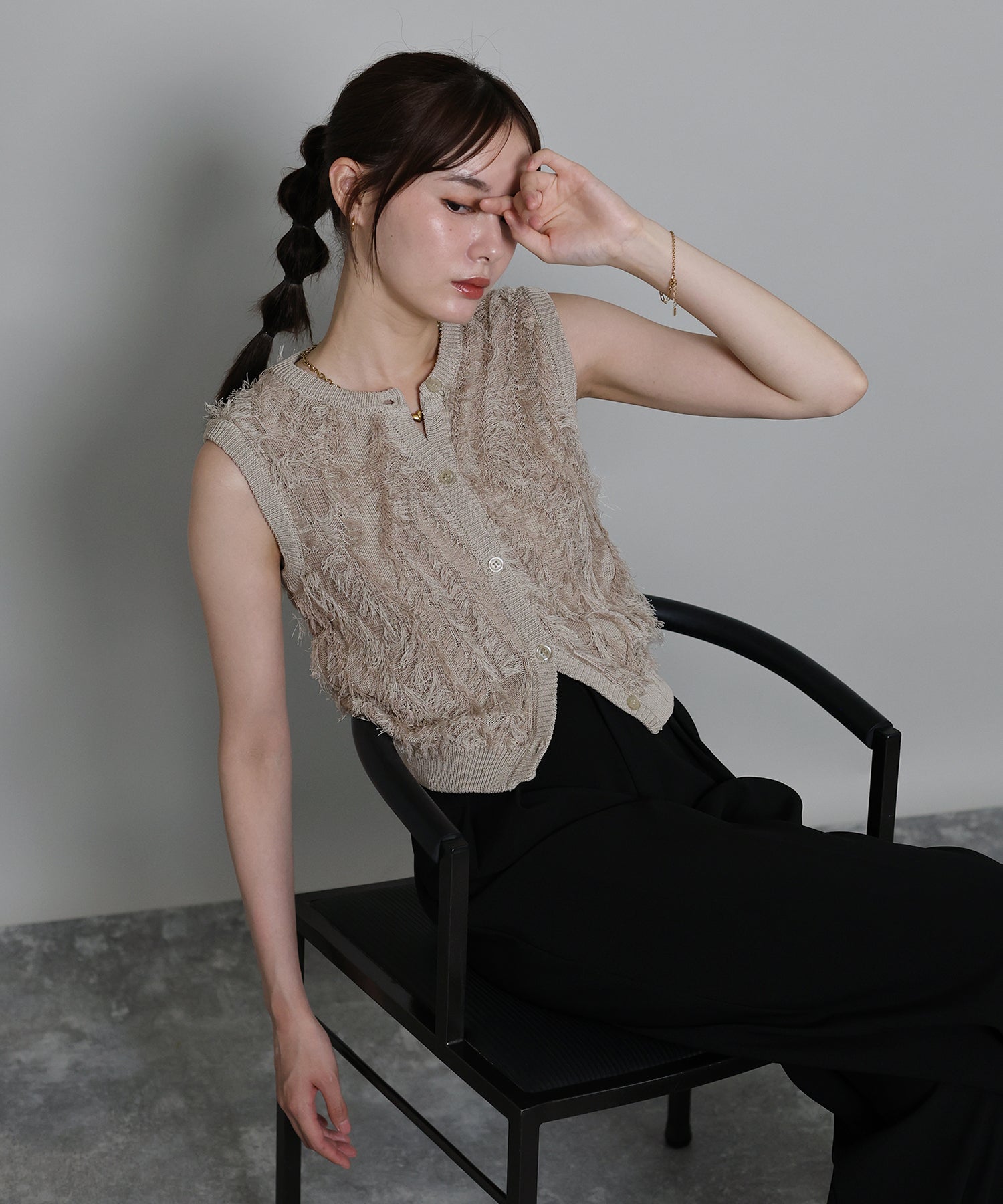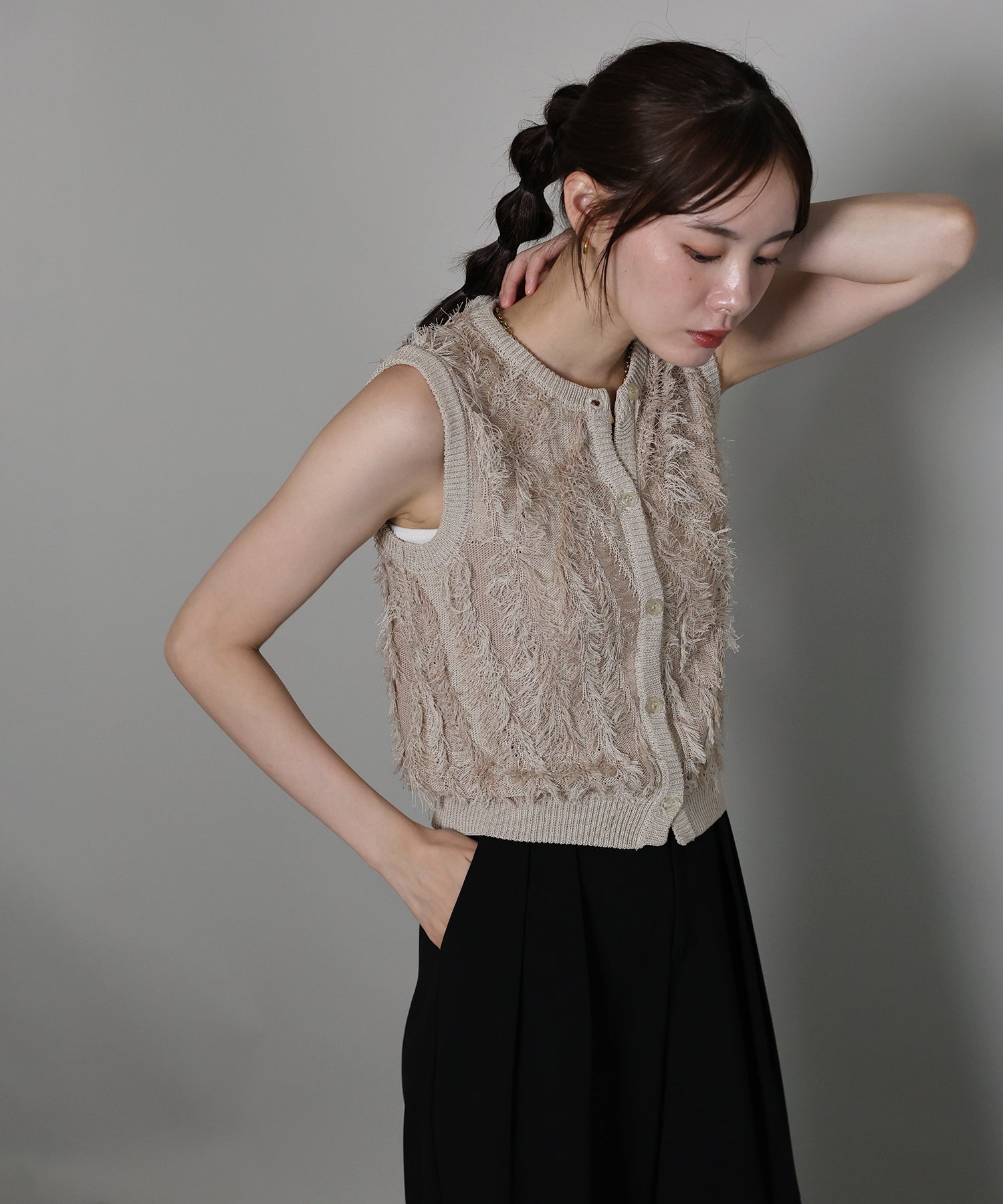立体的なフリンジデザインが魅力のニットフリンジベスト