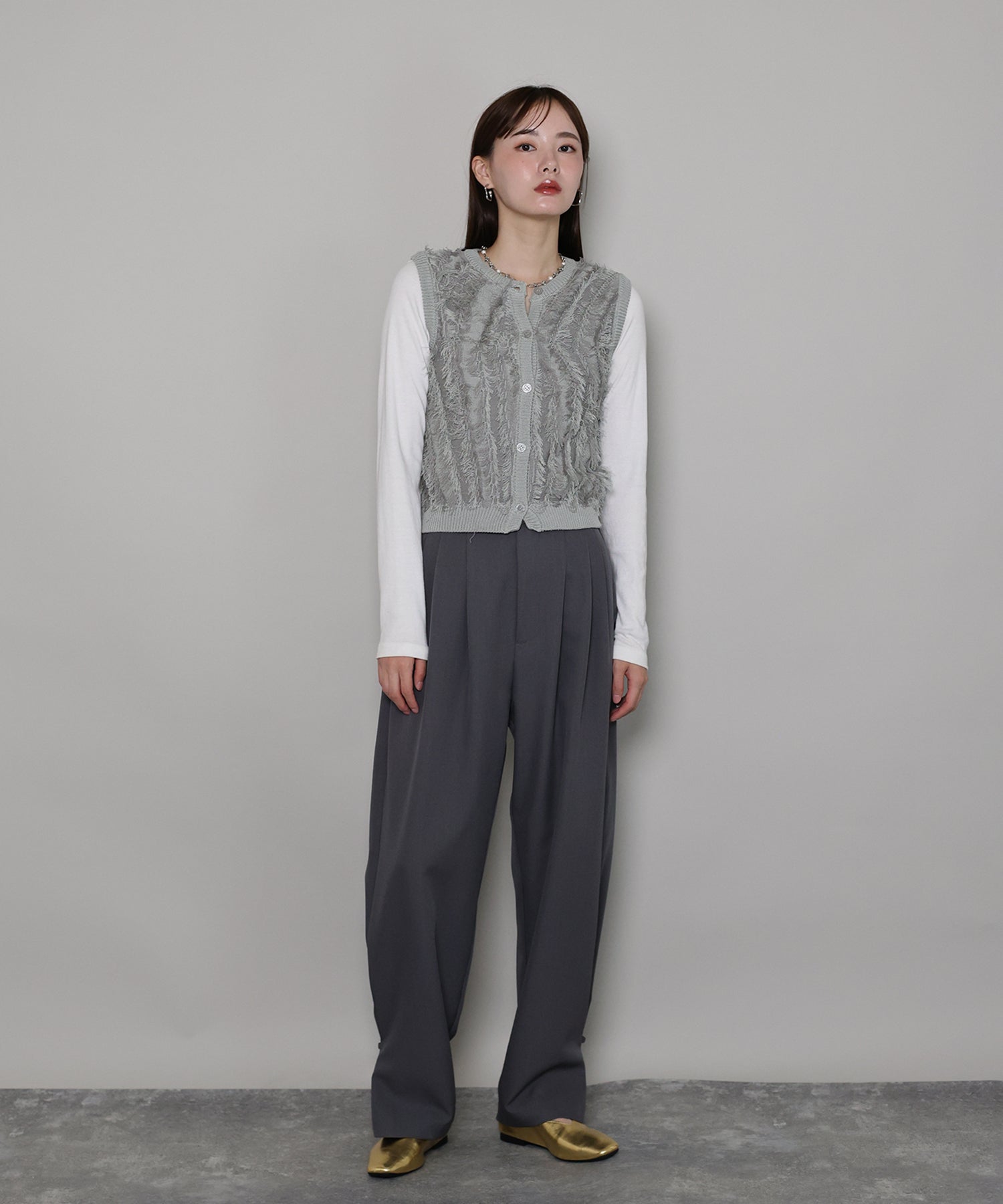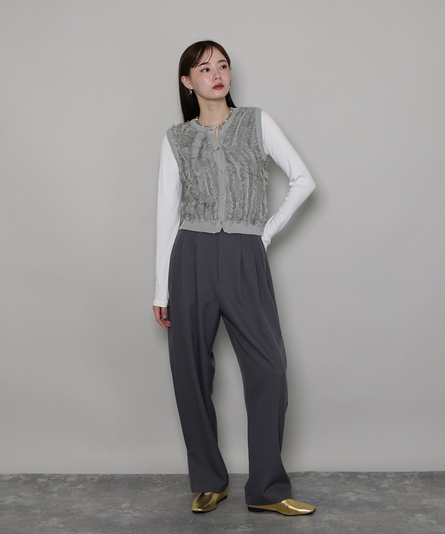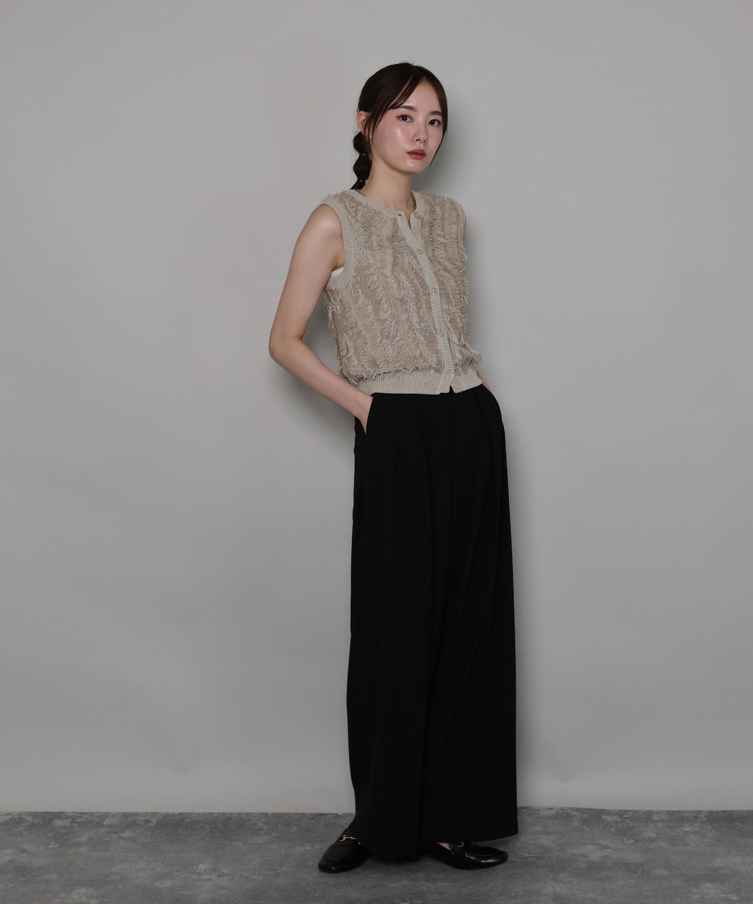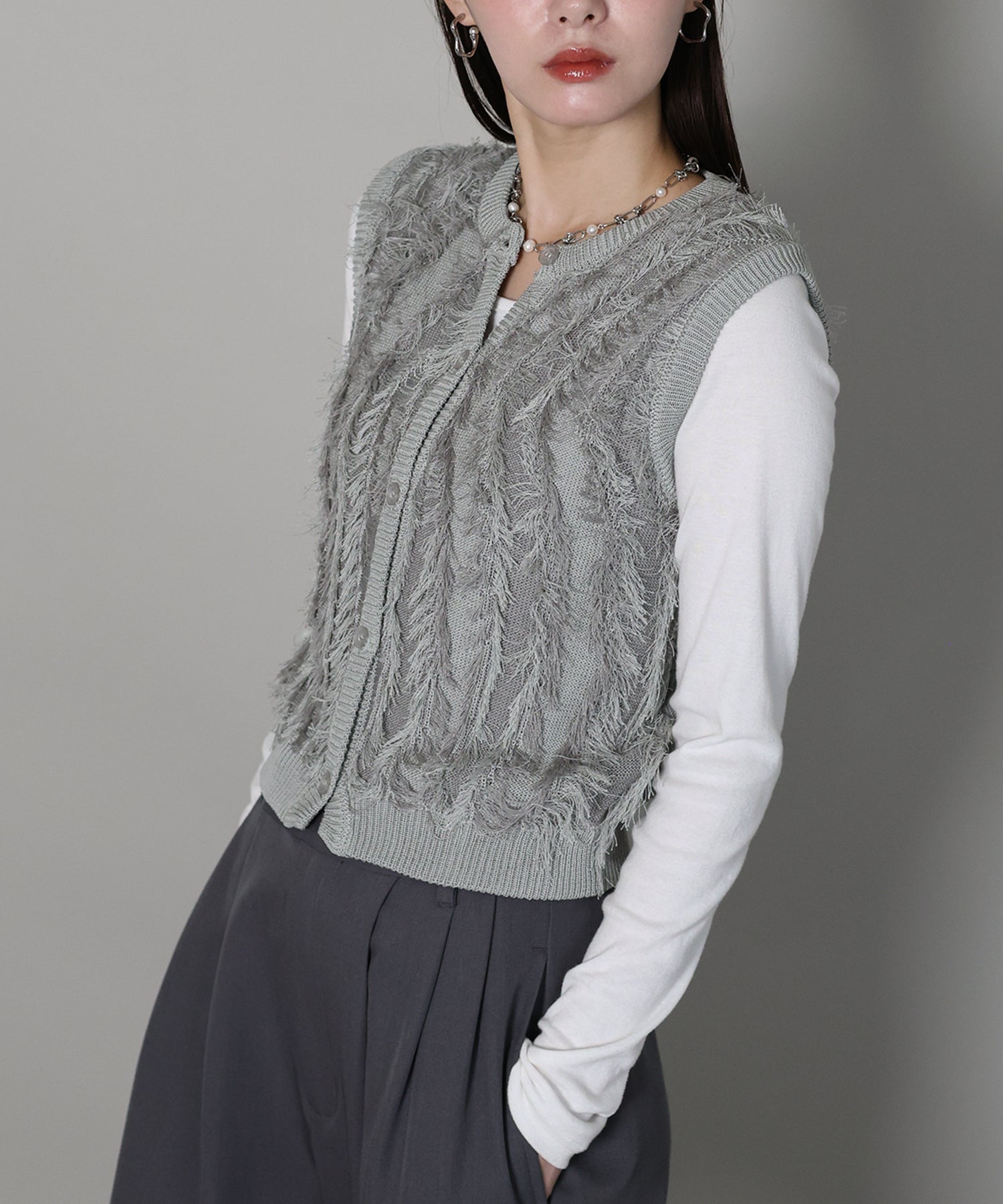 立体的なフリンジデザインが魅力のニットフリンジベスト