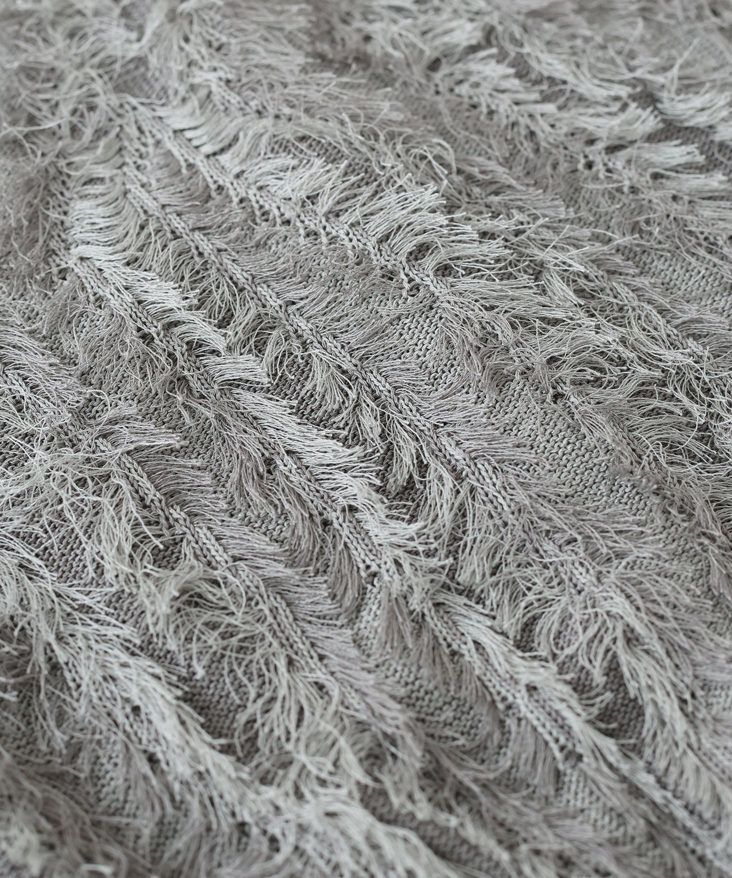 表情があるミックスカラーの立体的なフリンジジャガードで着映え間違いなしな華やかなデザイン。