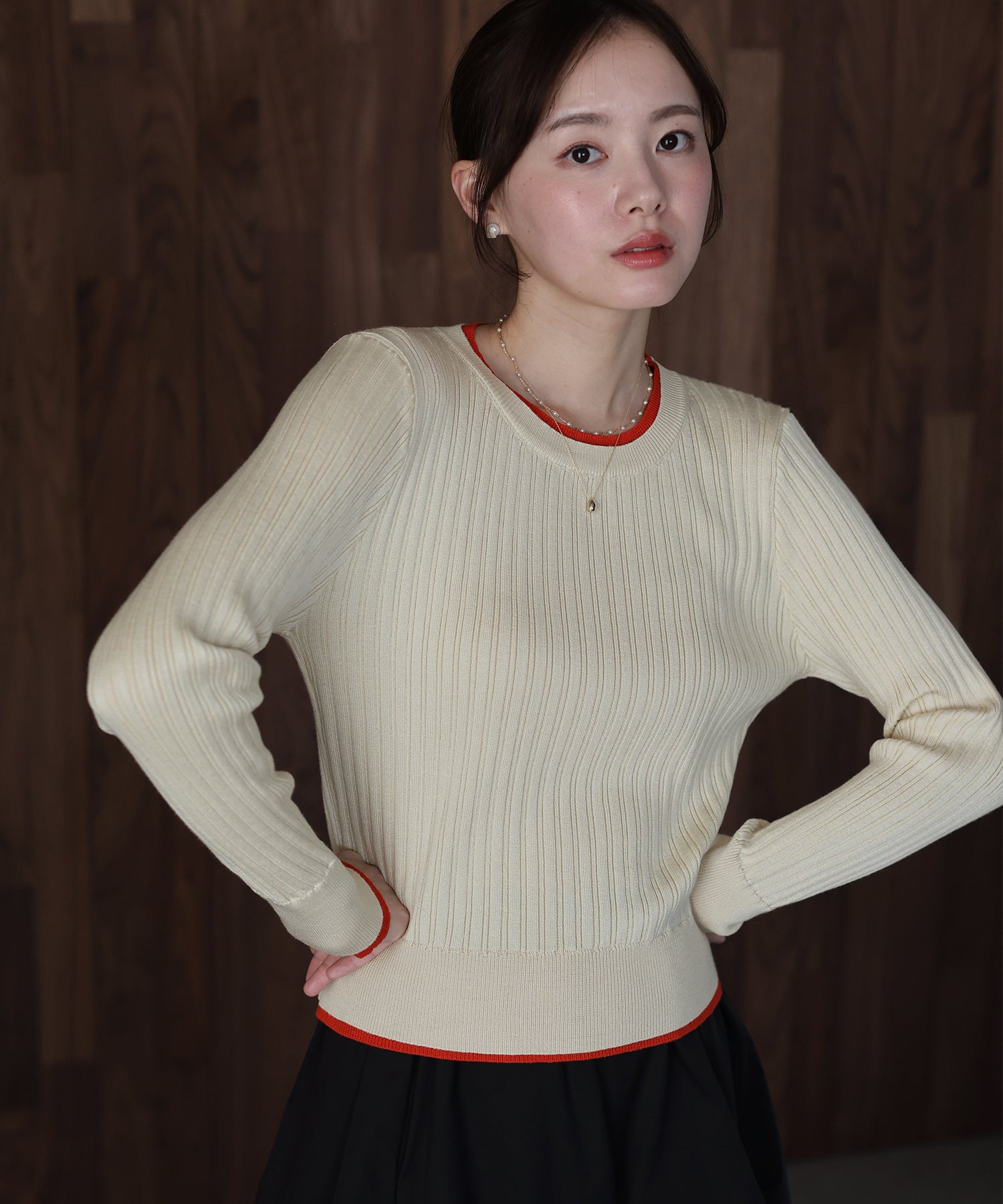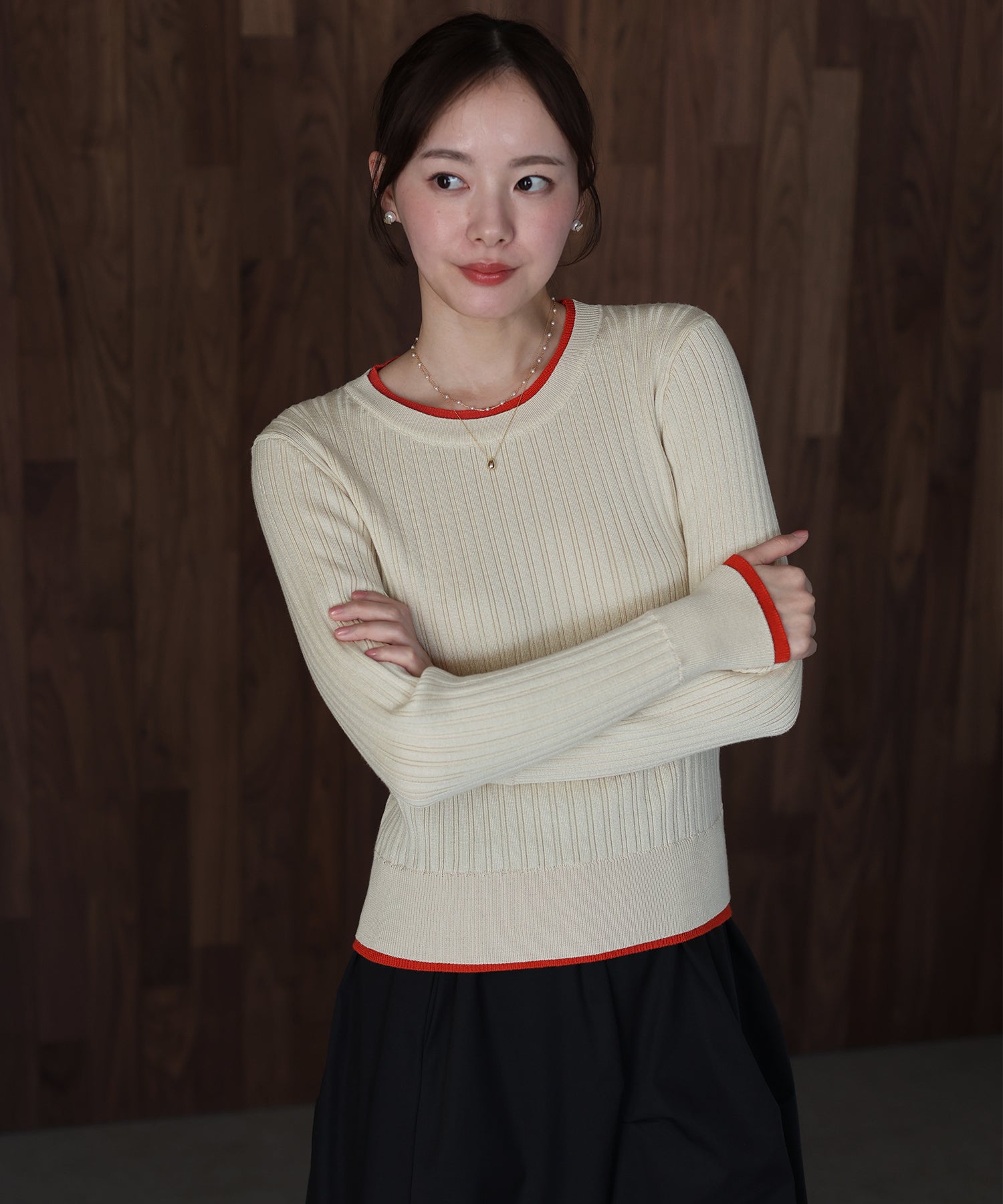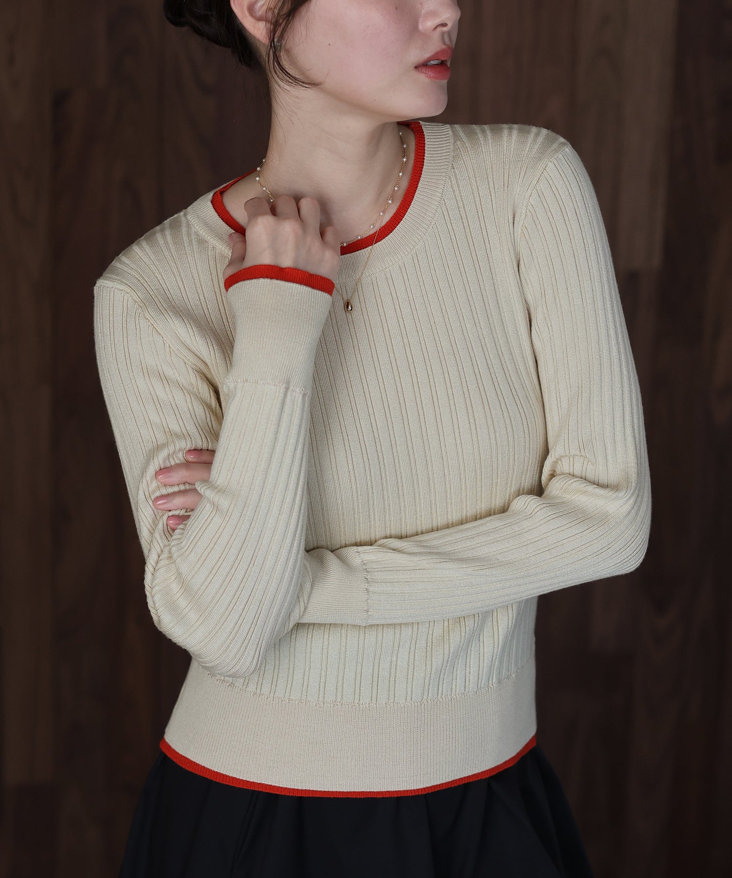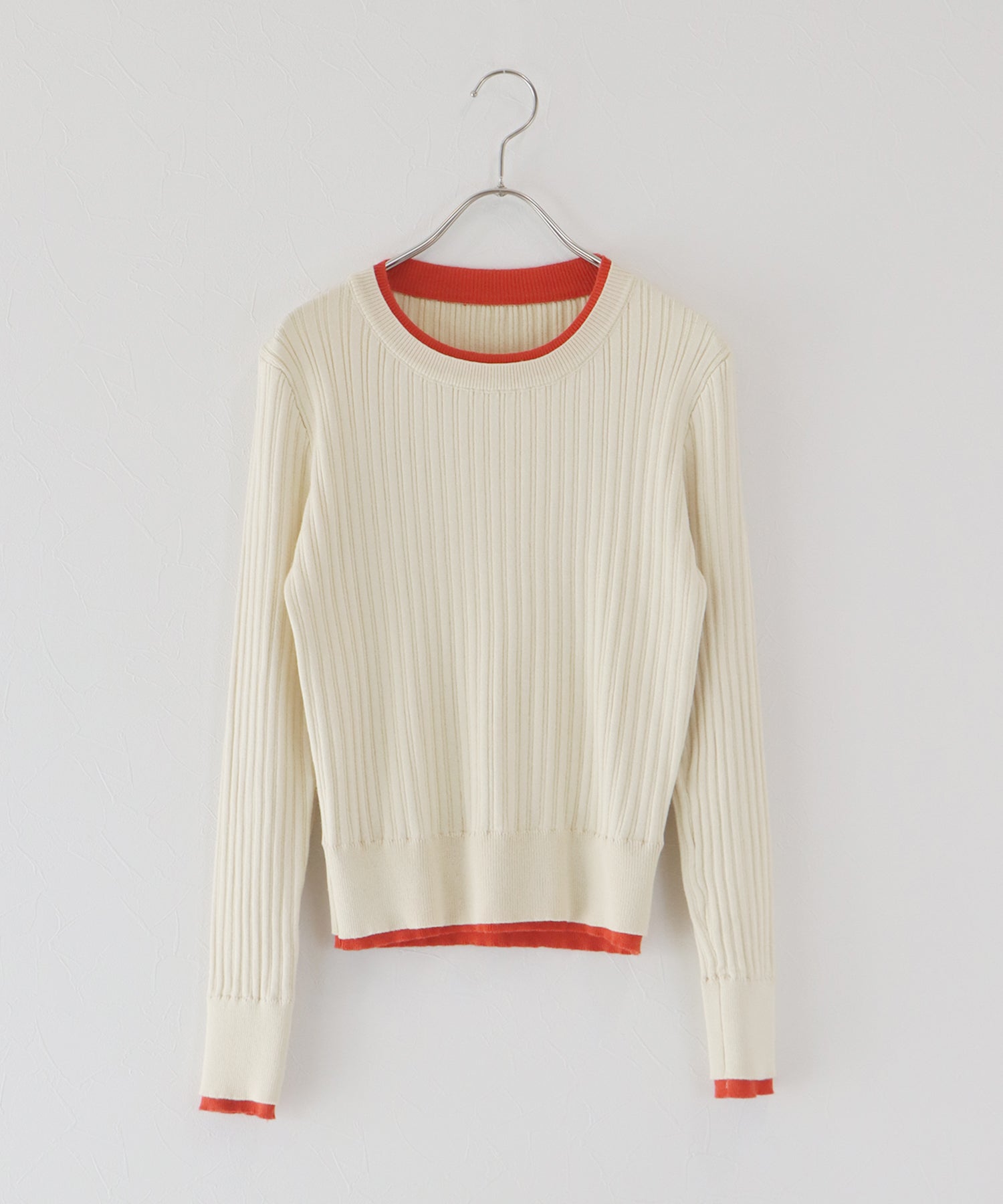 1枚で重ね着風のスタイリングが完成するリブニットトップス