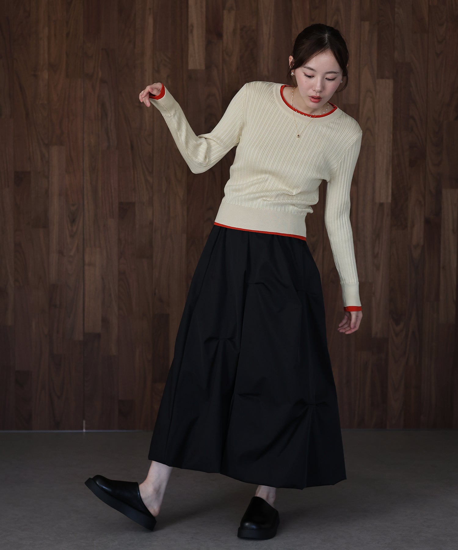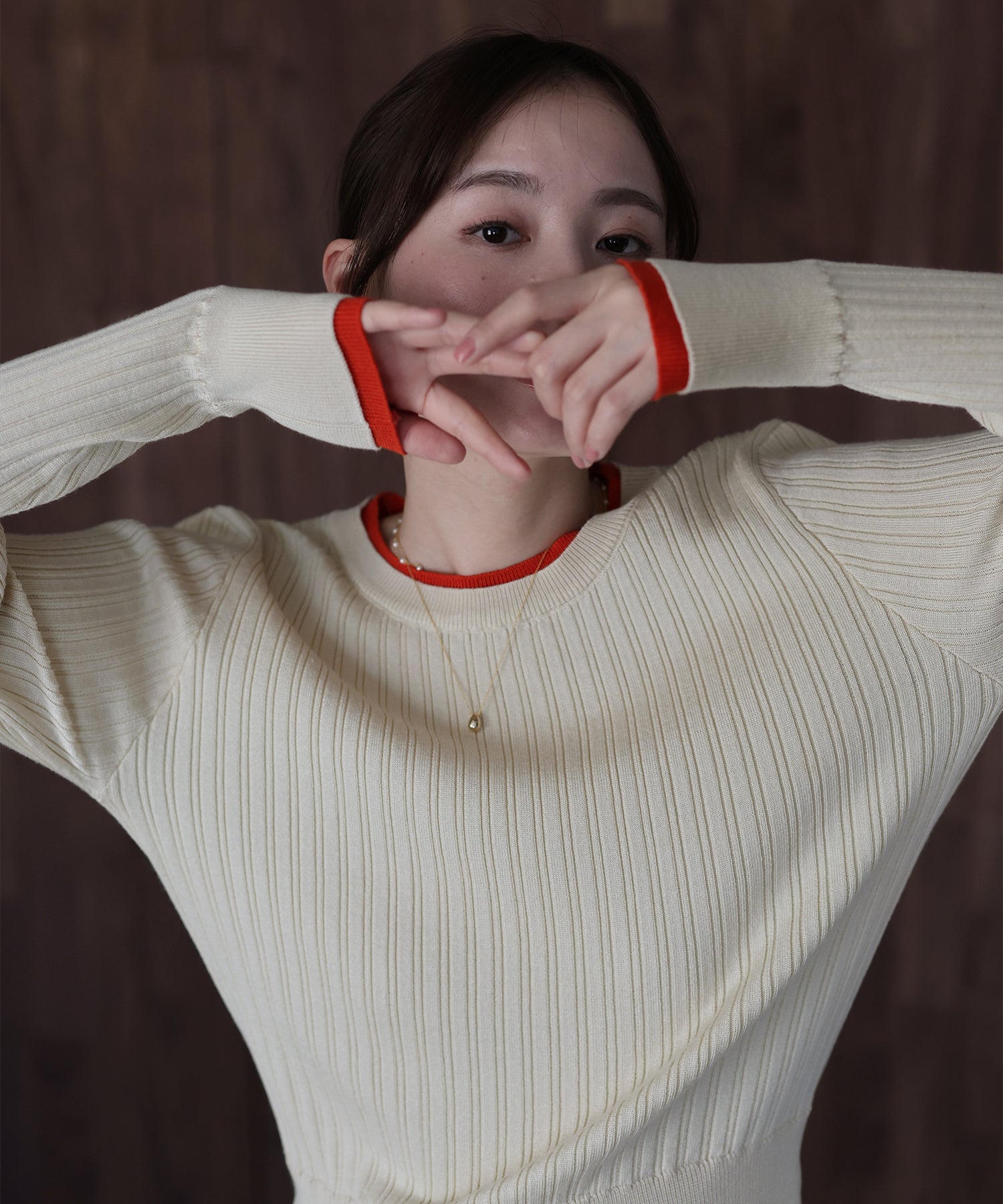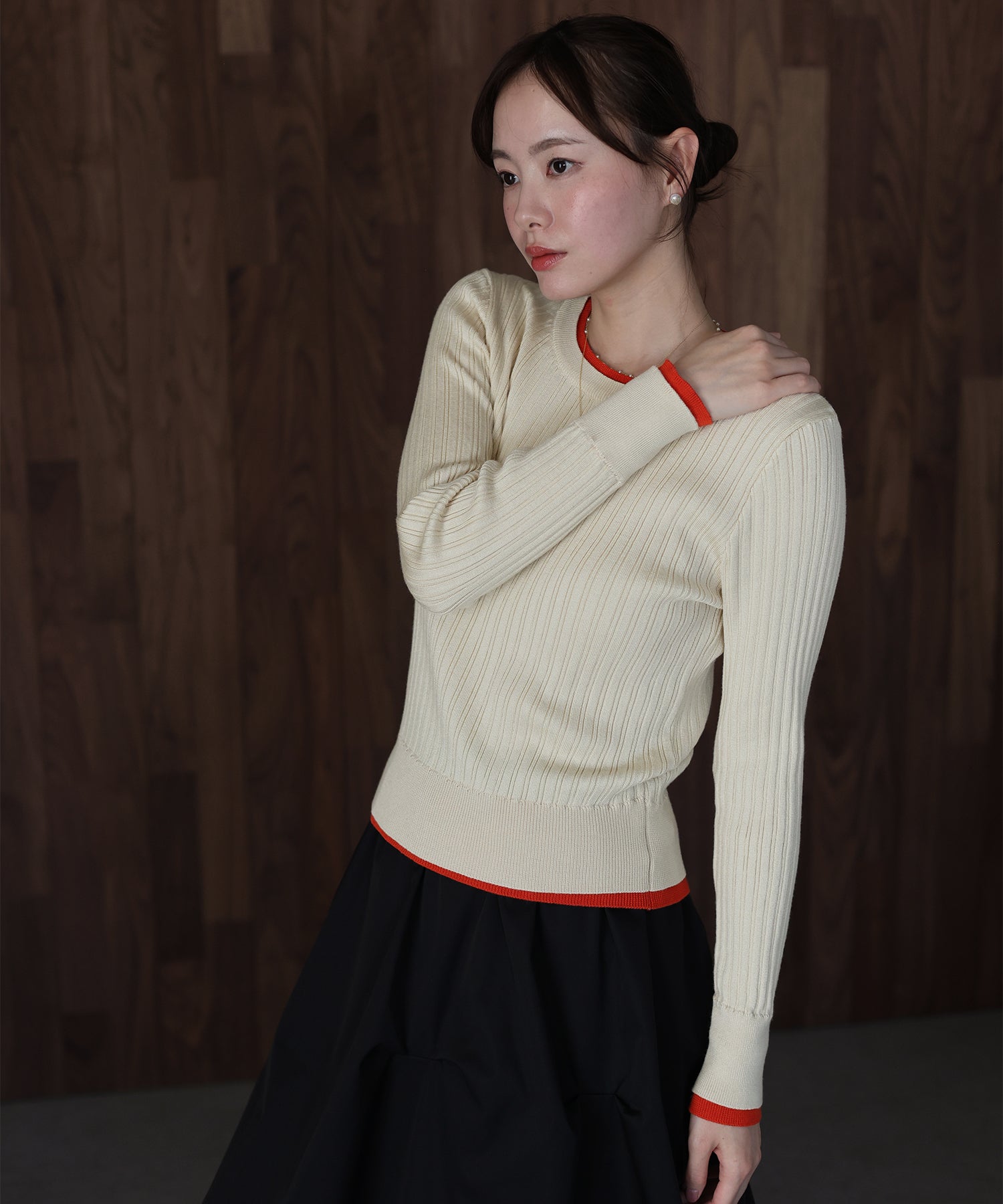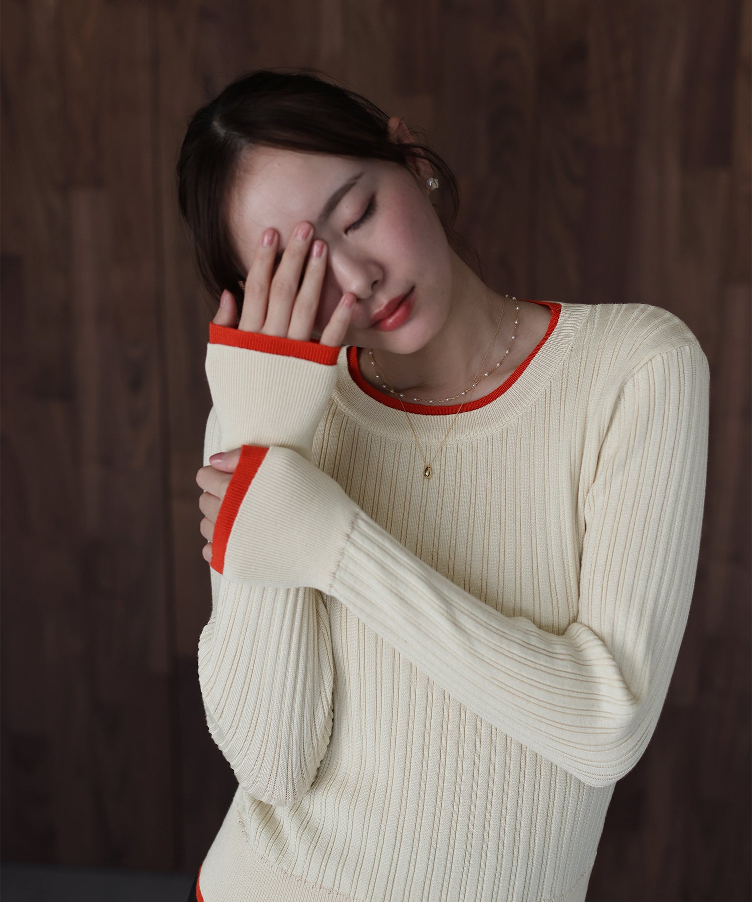 1枚で重ね着風のスタイリングが完成するリブニットトップス