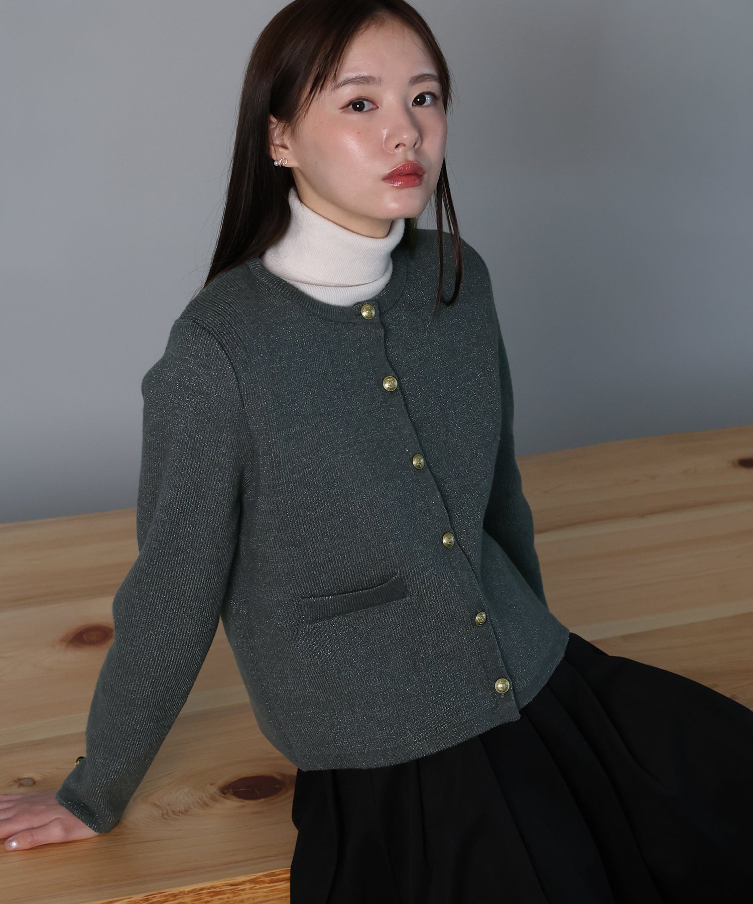 WINTER SALE【SALE】ラメジャガードカーディガン