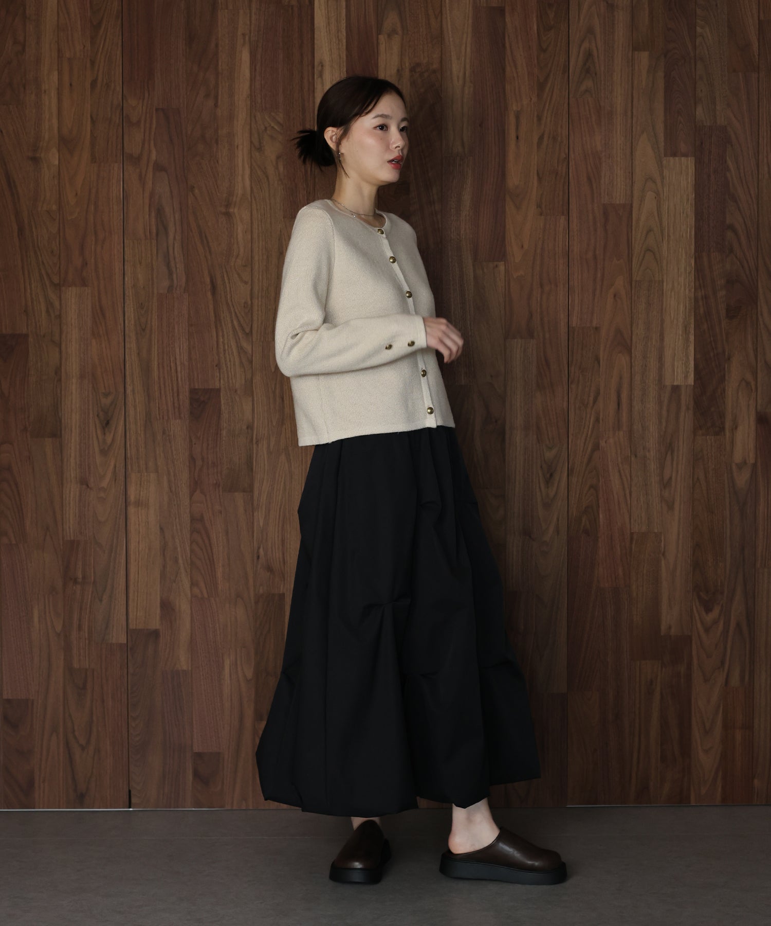 スカートと合わせてフェミニンな雰囲気にも着回しがきくデザイン。