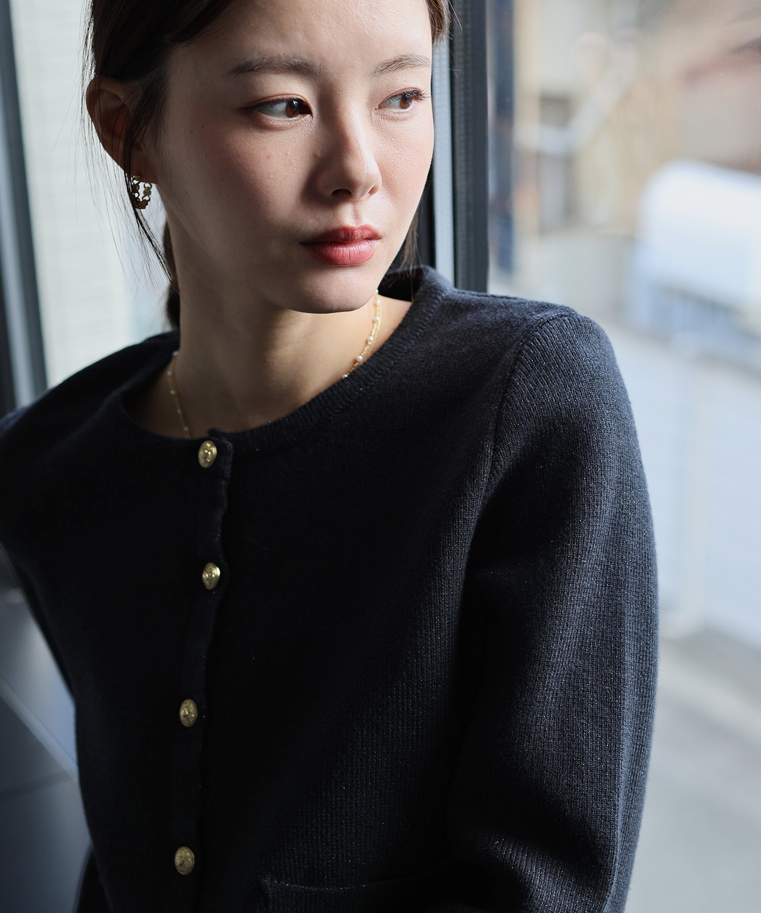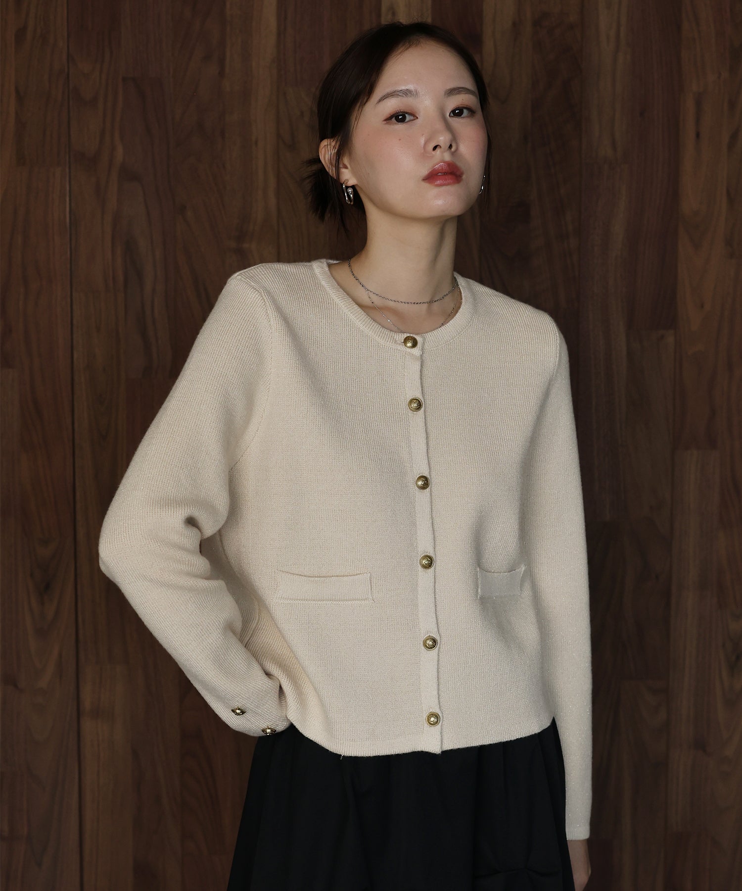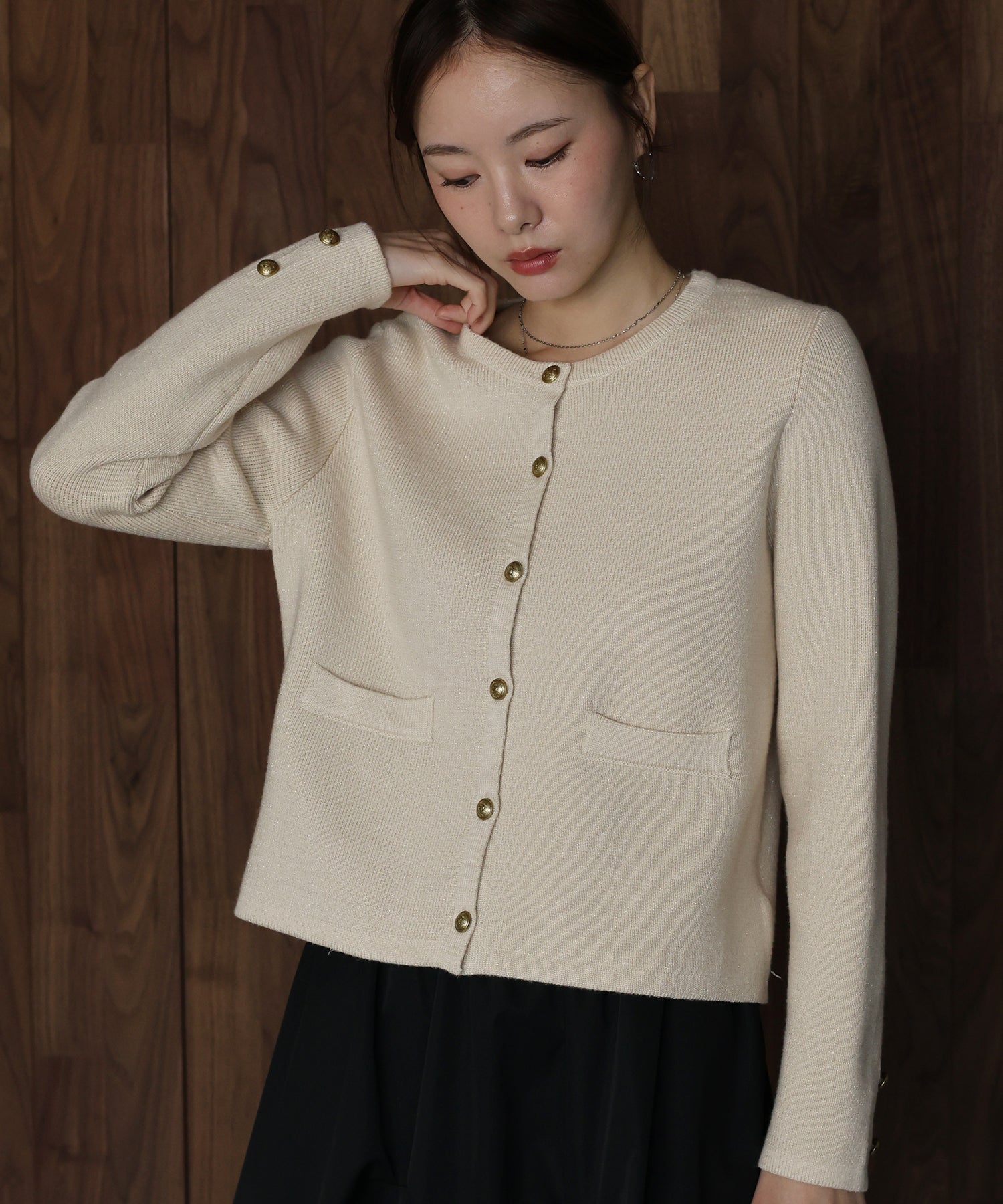 WINTER SALE【SALE】金ボタンクルーネックカーディガン