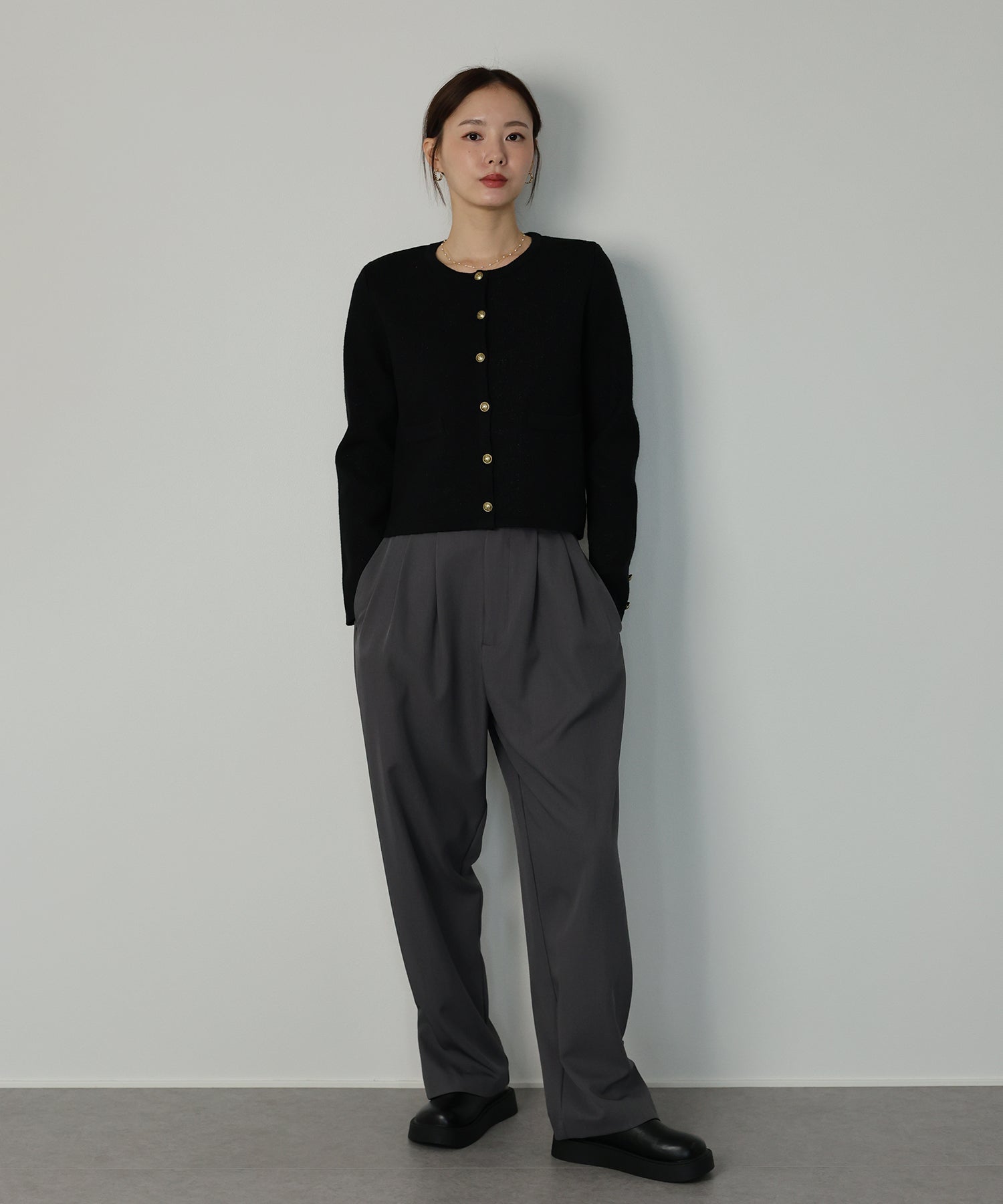デニムやスラックス、ゆるっとしたパンツと合わせてカジュアルにも、