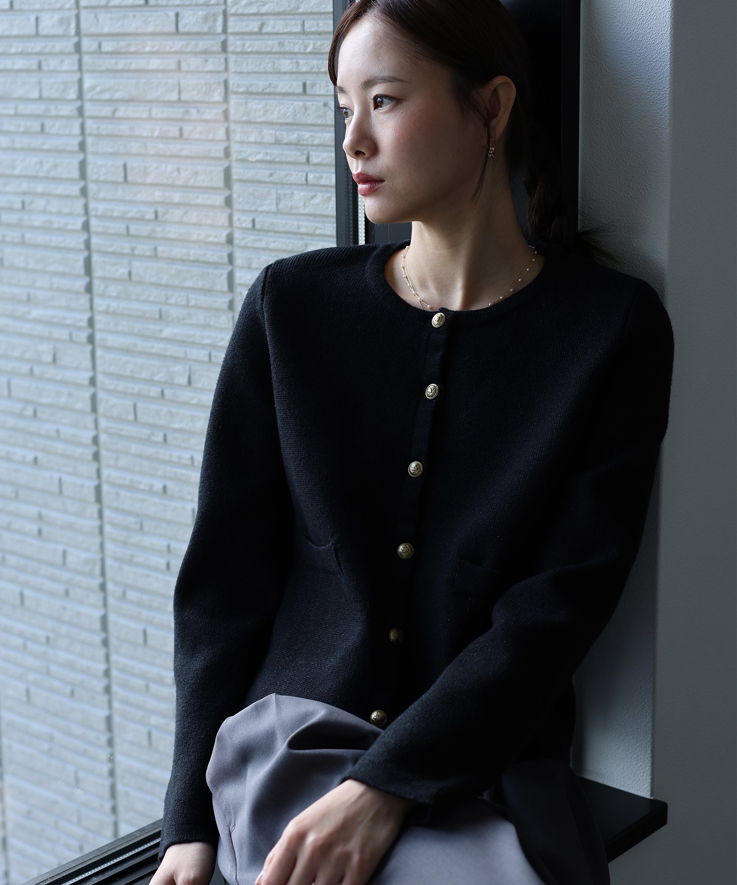 TIME SALE【TIME SALE】金ボタンノーカラーニットジャケット