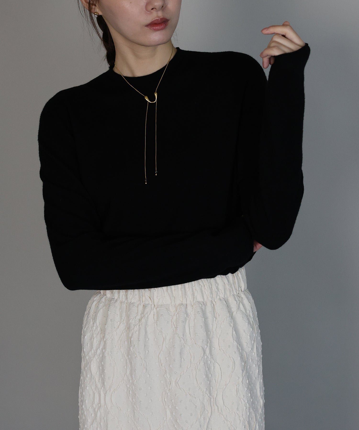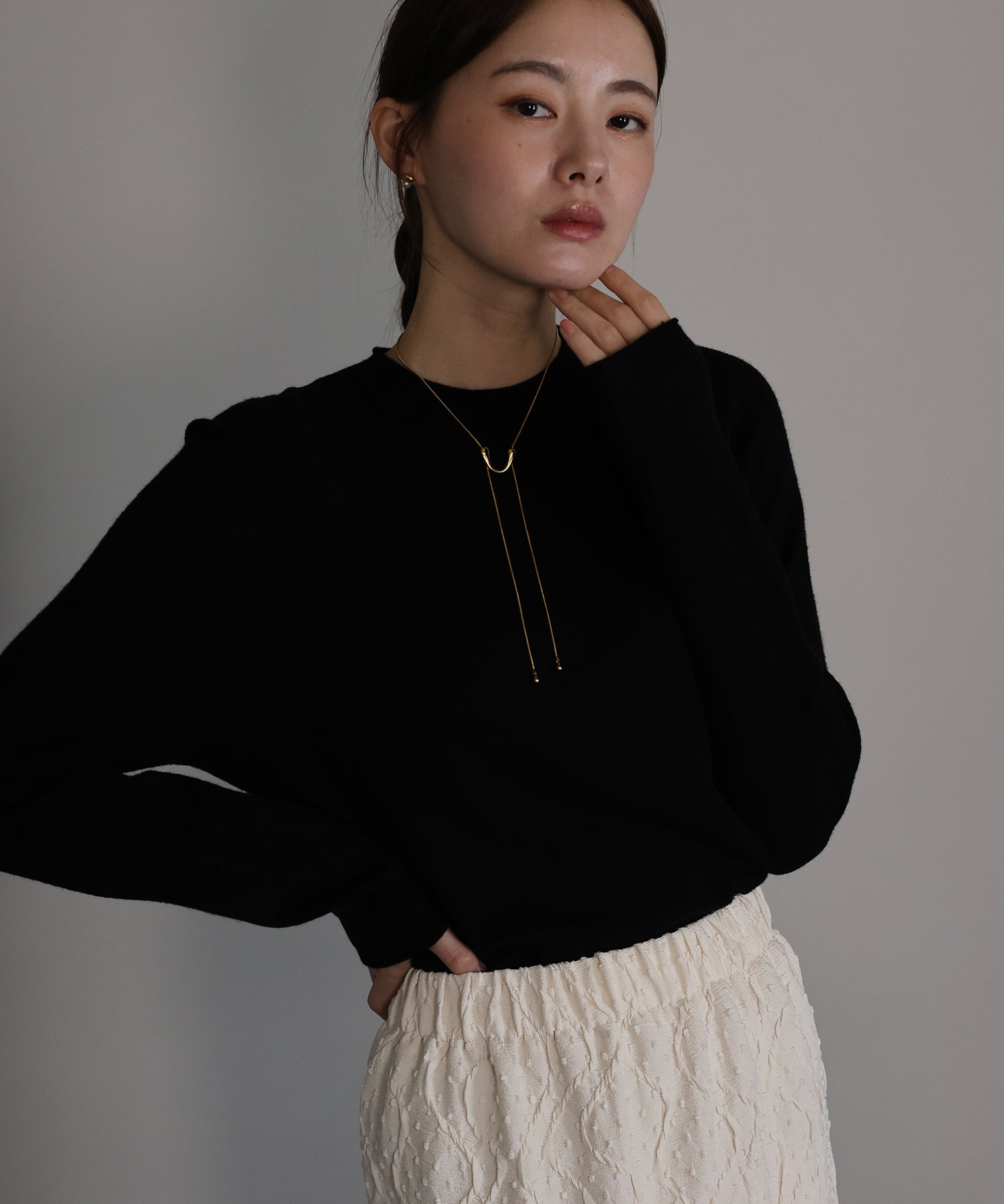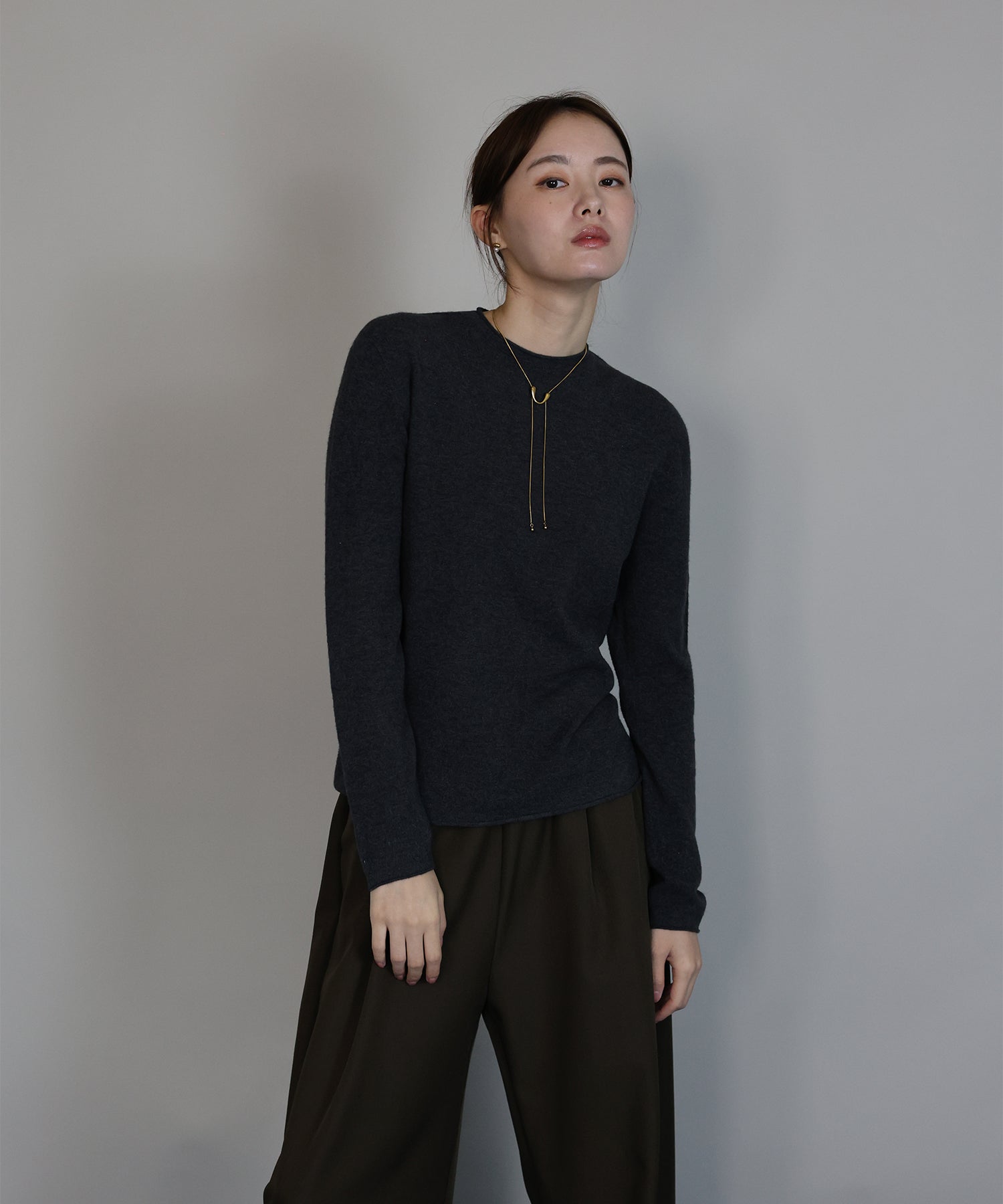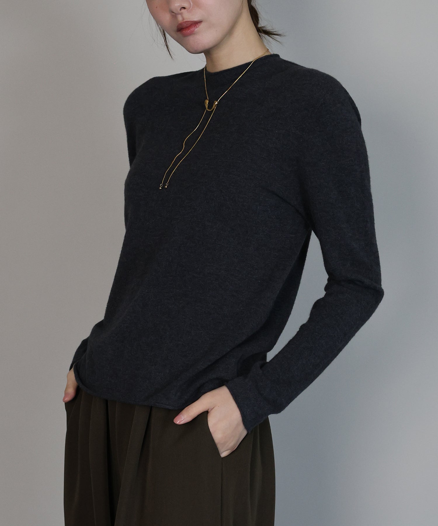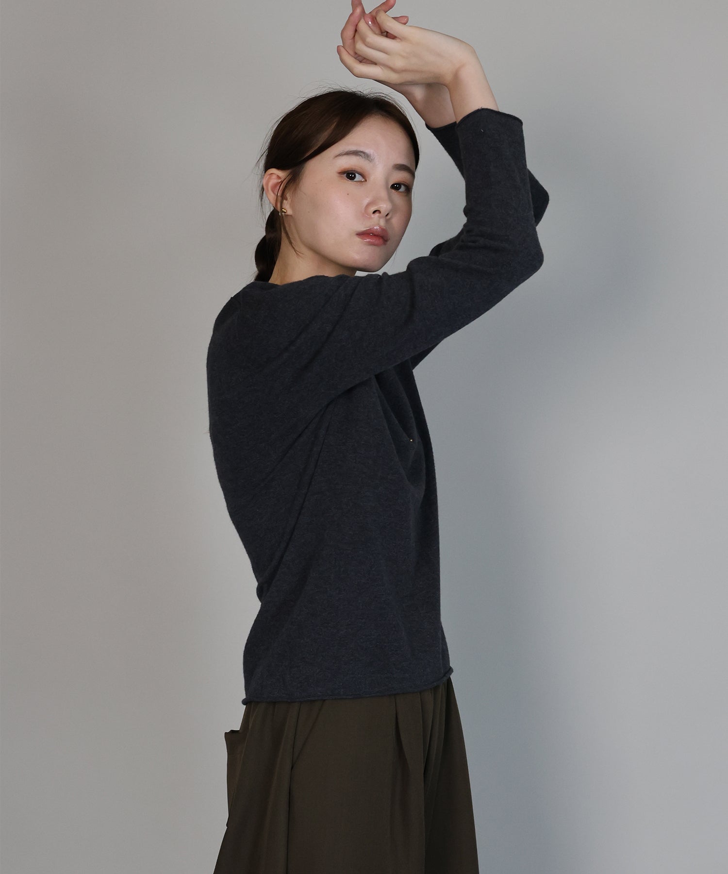 裾とネックはくるんと丸まったロールヘム仕様で、シンプルな中にもさりげないニュアンスをプラスしています。