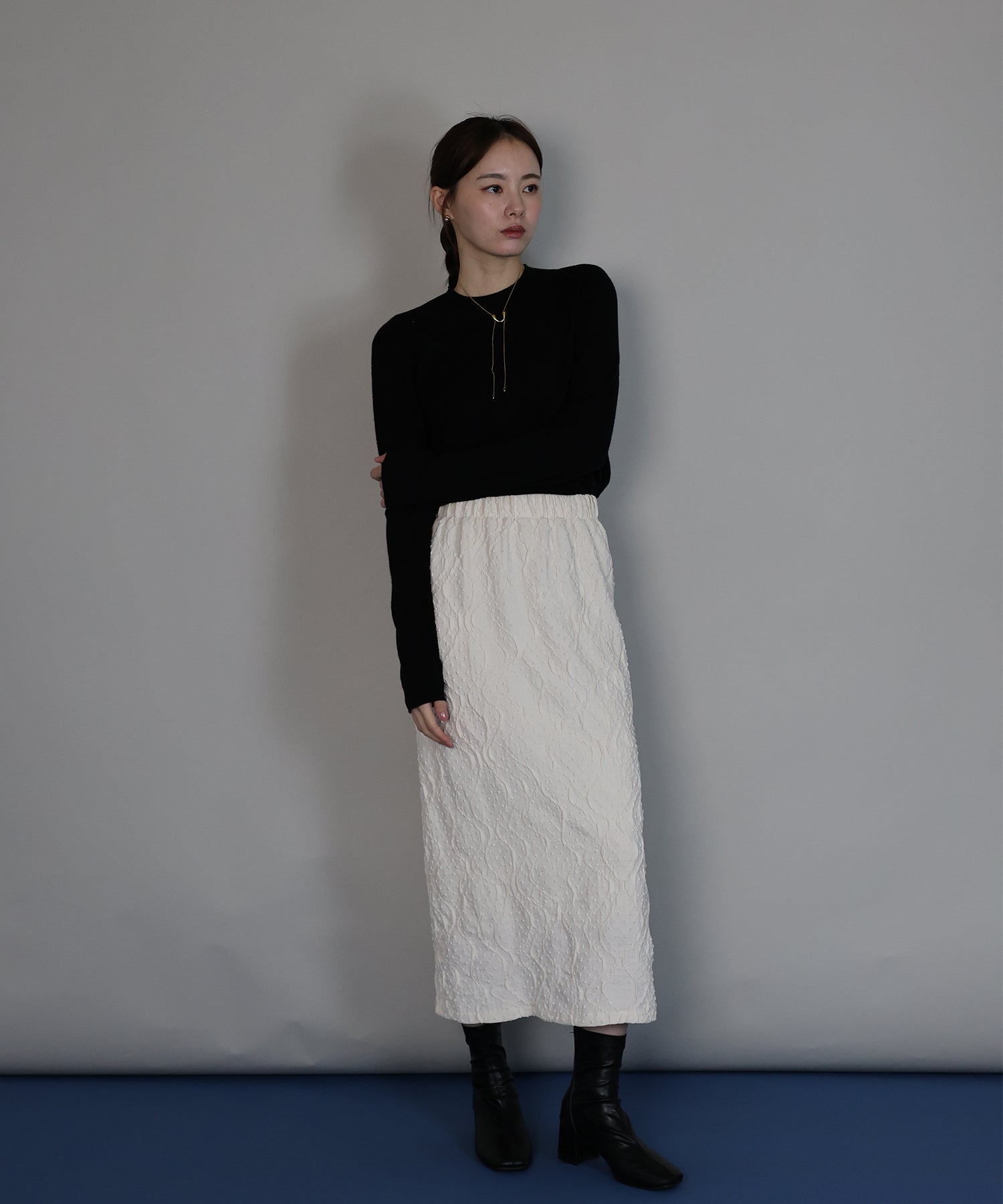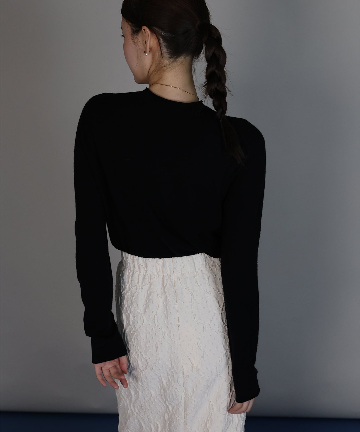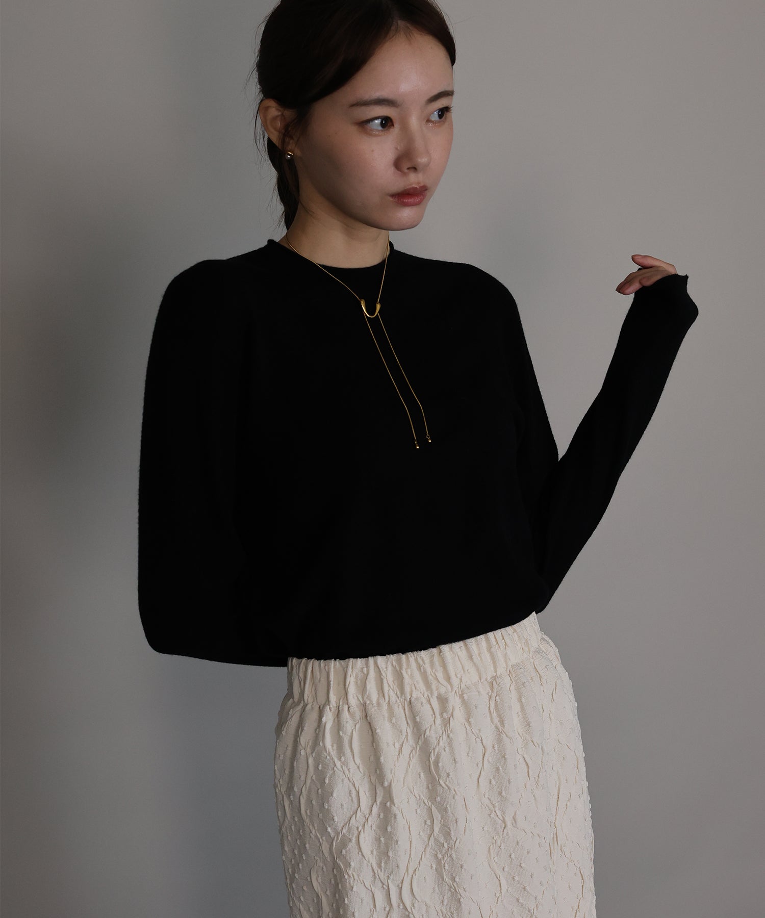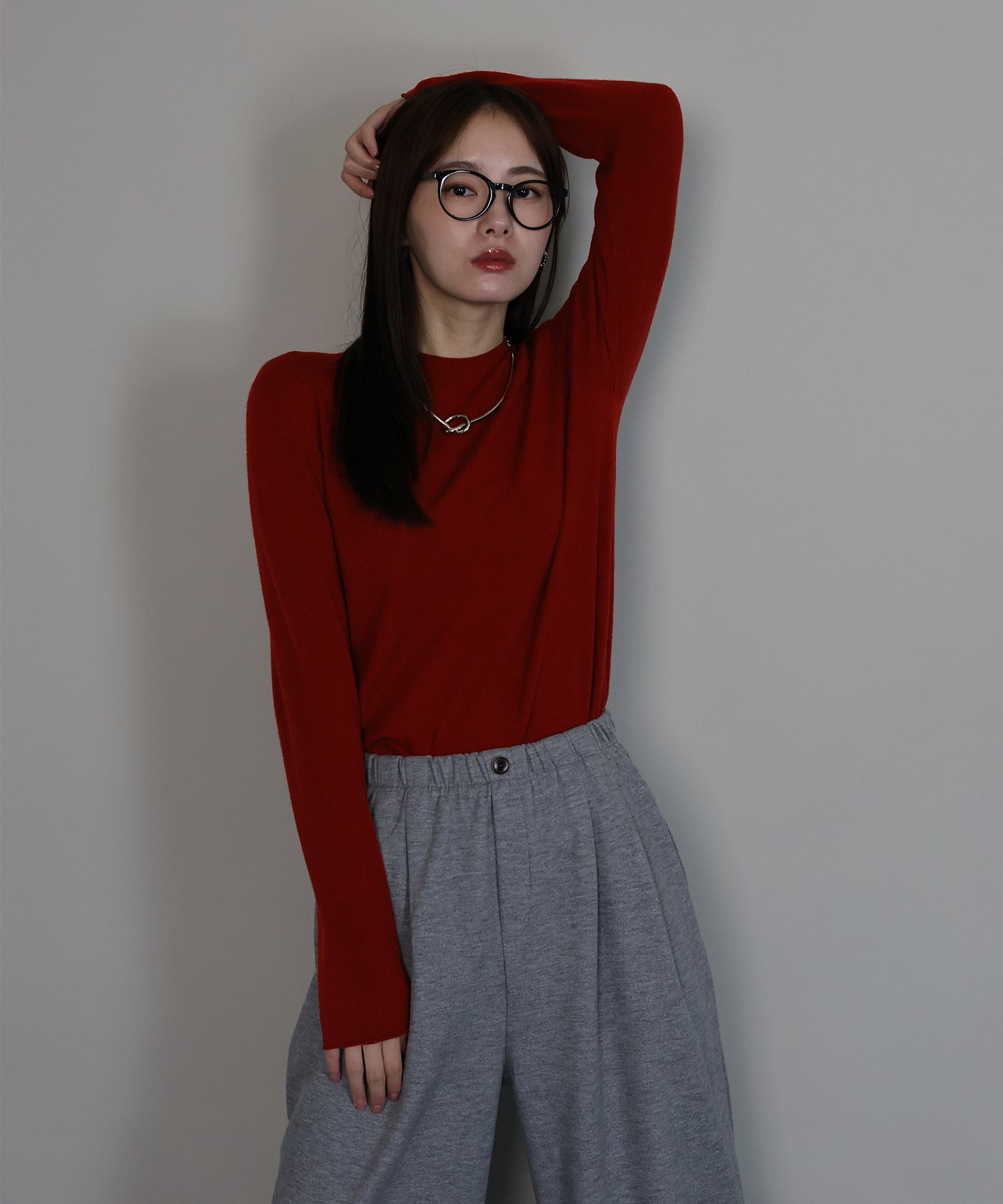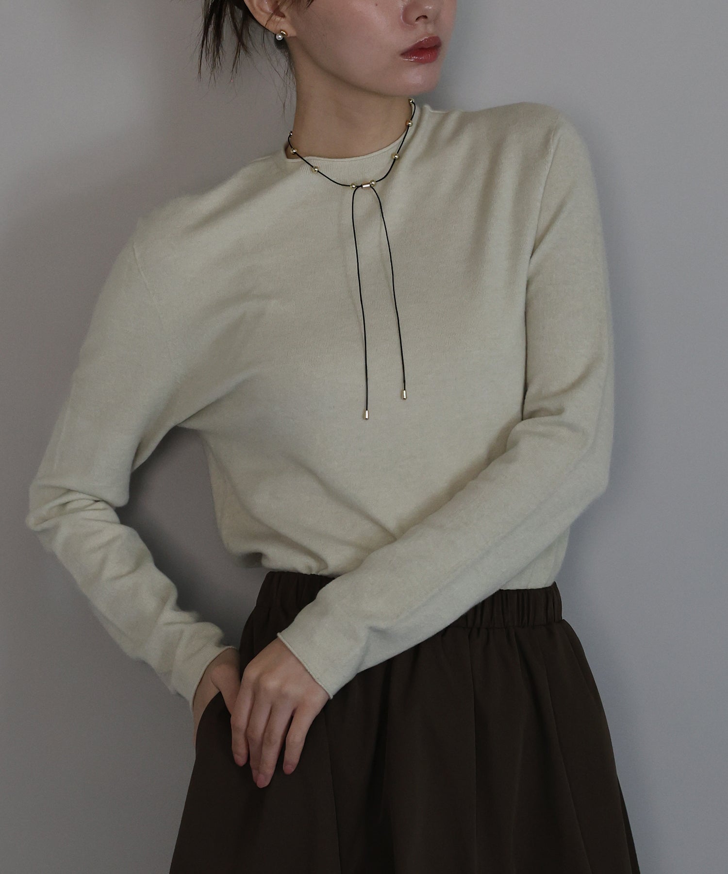 裾とネックはくるんと丸まったロールヘム仕様で、シンプルな中にもさりげないニュアンスをプラスしています。