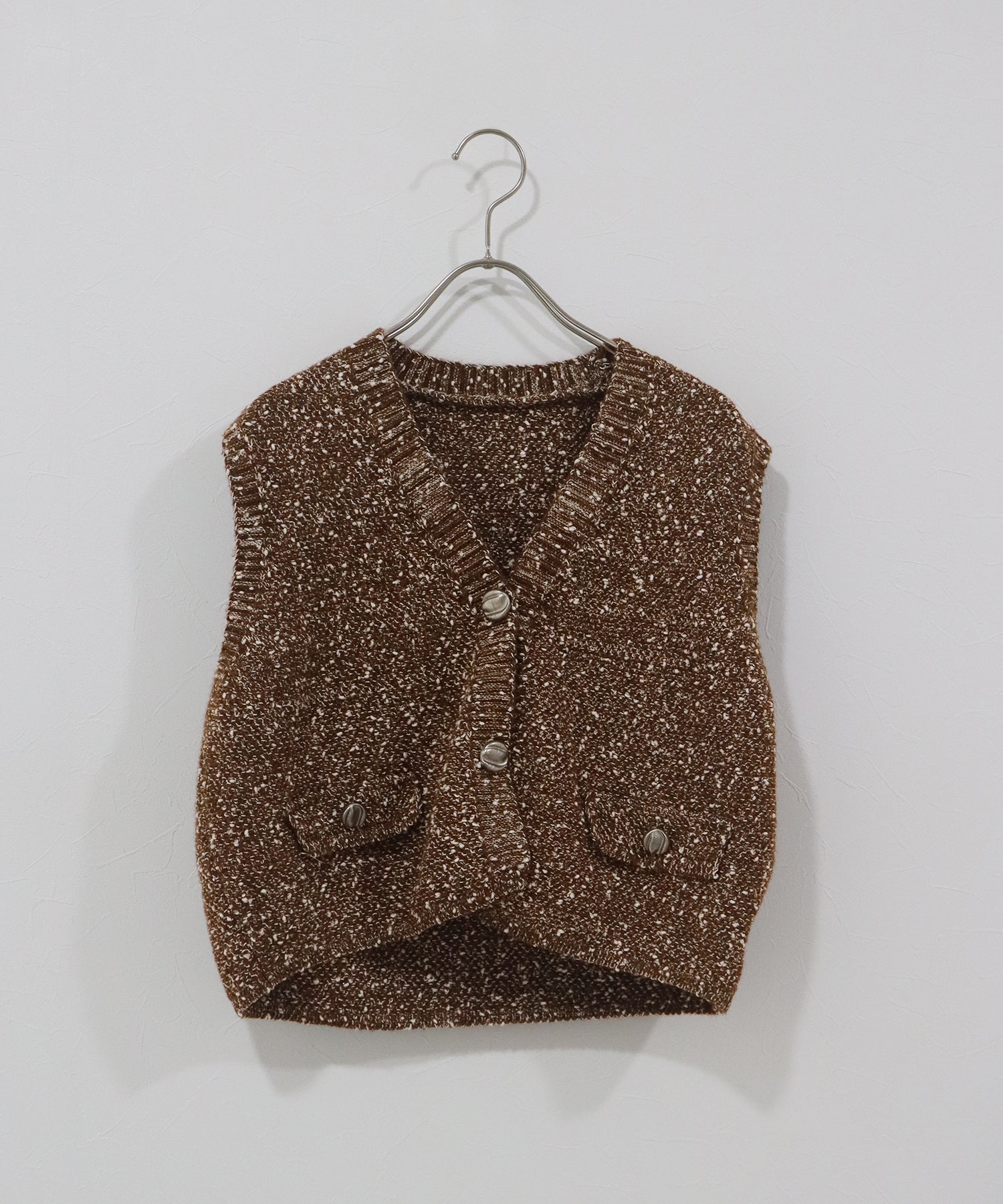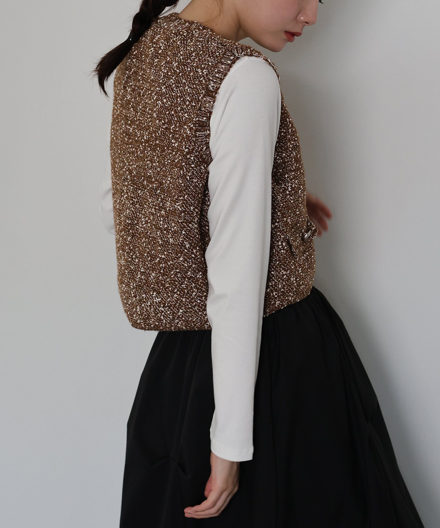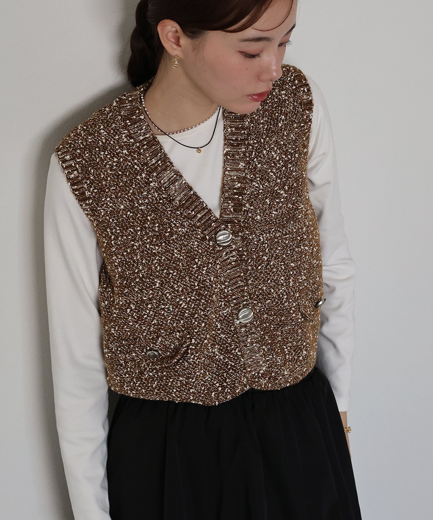 ニュアンスボタンがアクセントになったメランジニットベスト