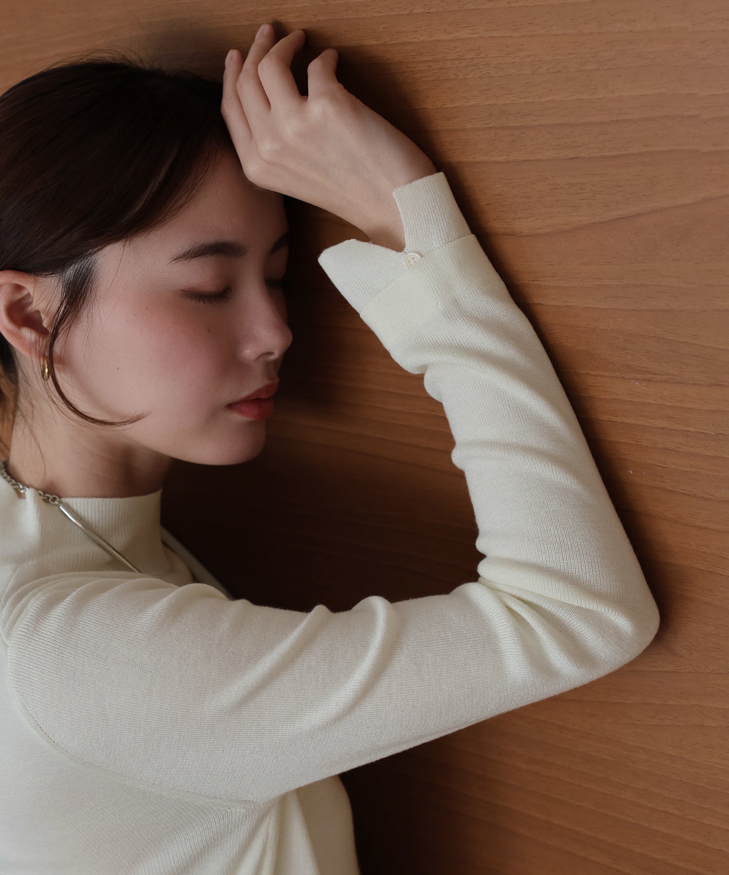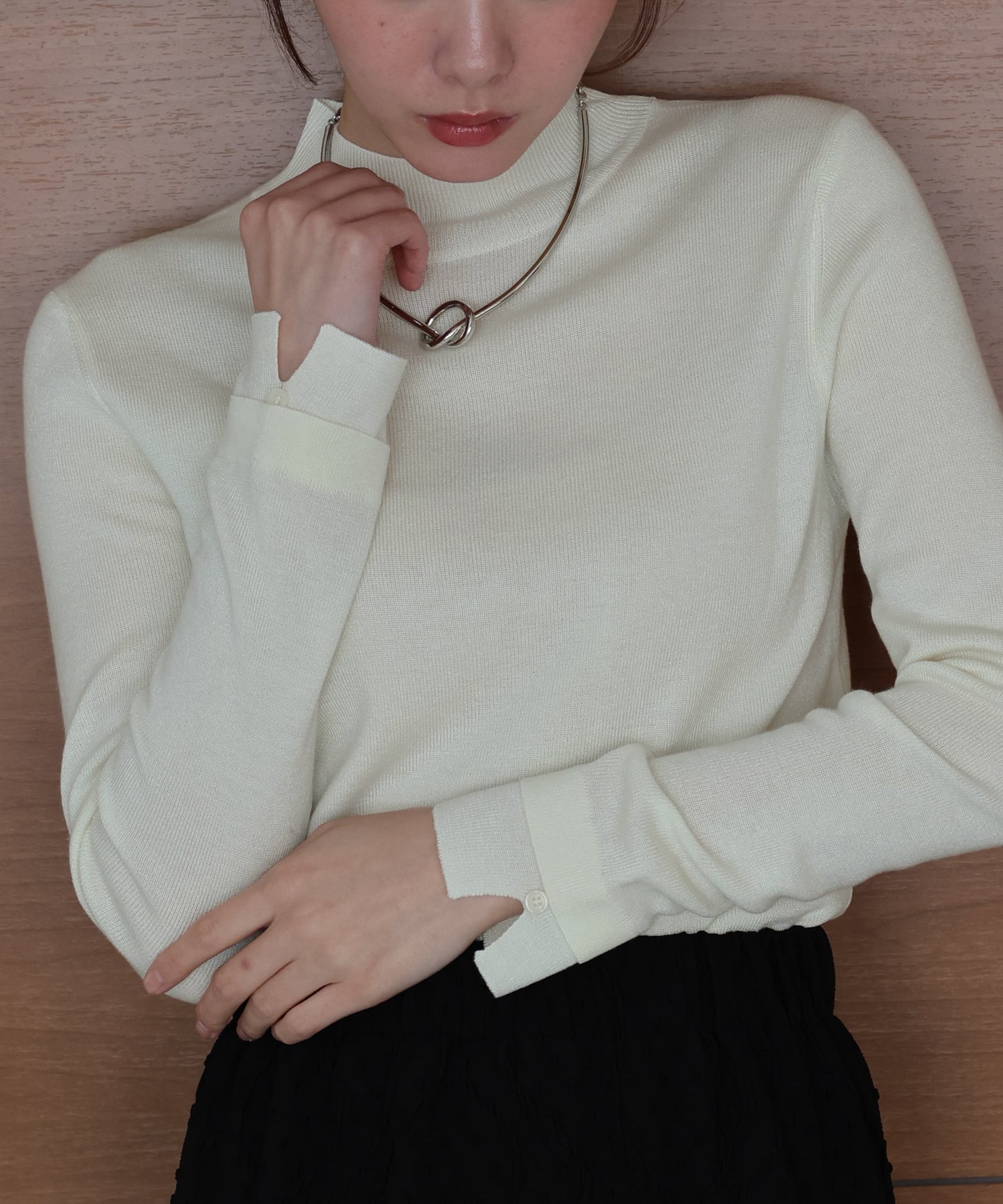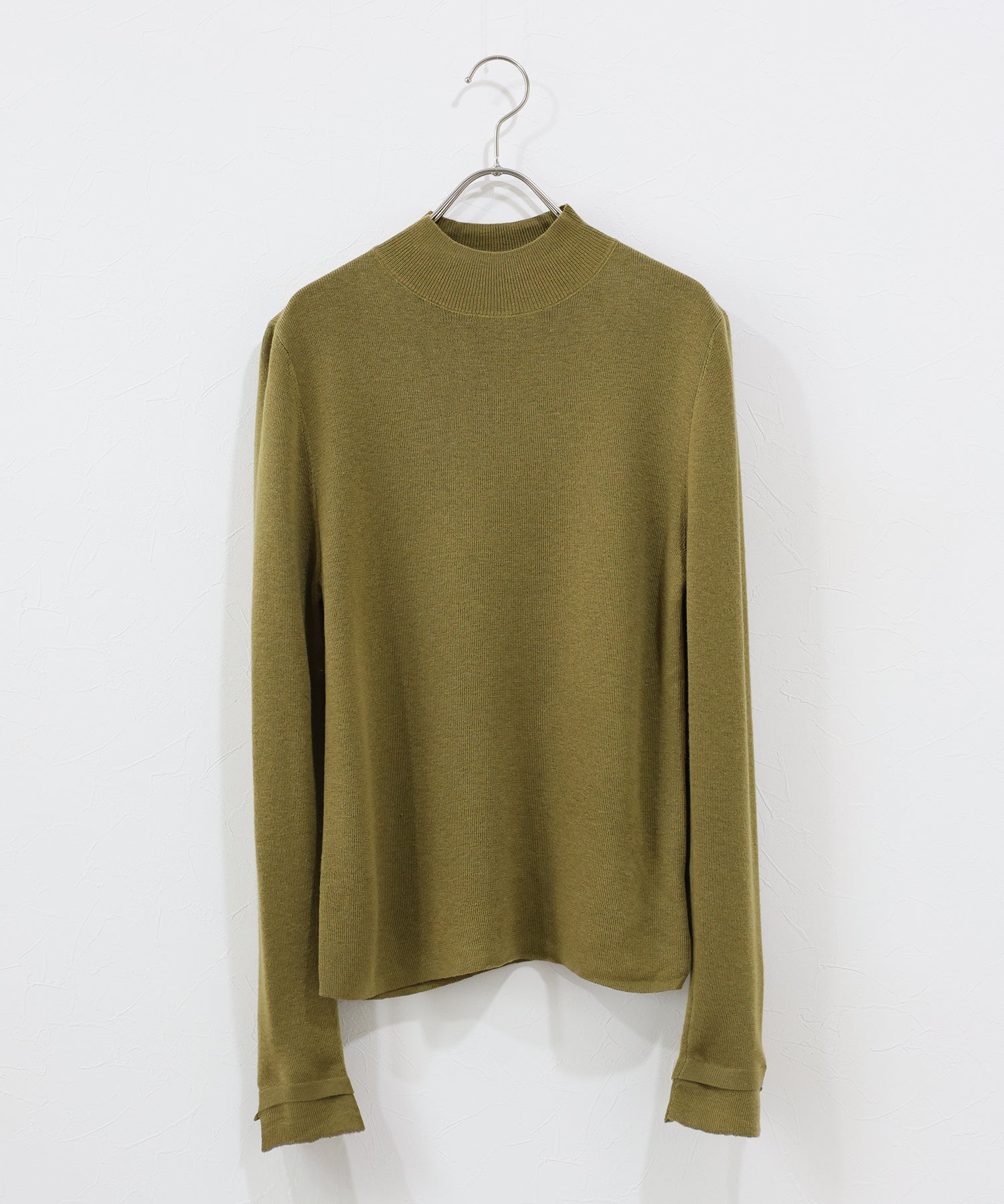 レイヤード見えする袖口が魅力のハイネックニット