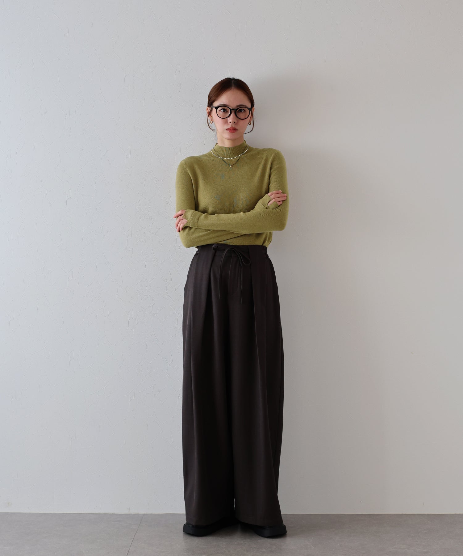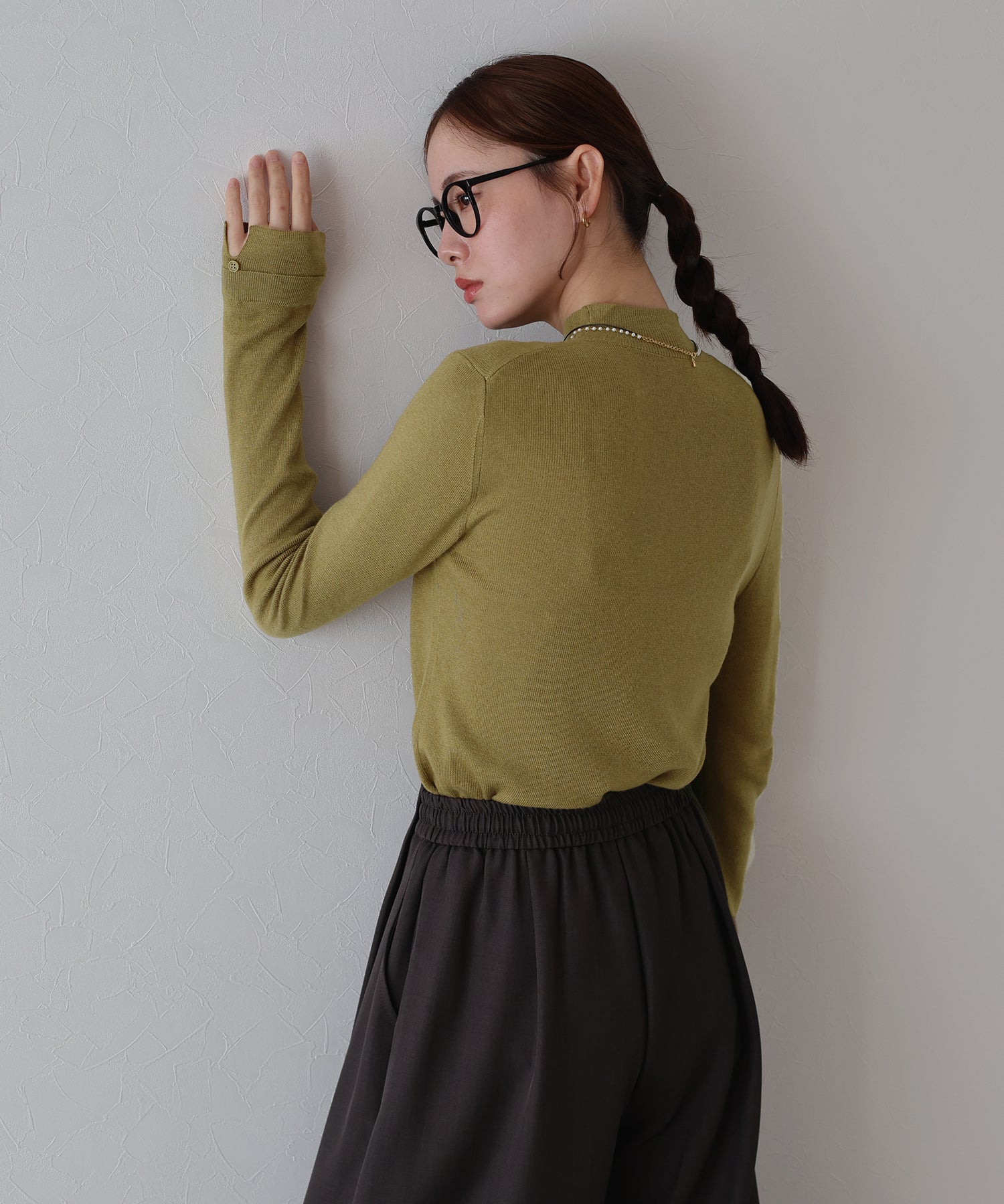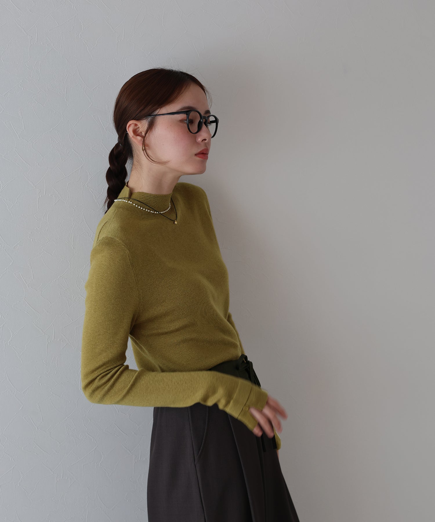 ジャケットやジレのインナーとしても活躍し、シーズンを通して幅広いスタイリングを楽しめます。