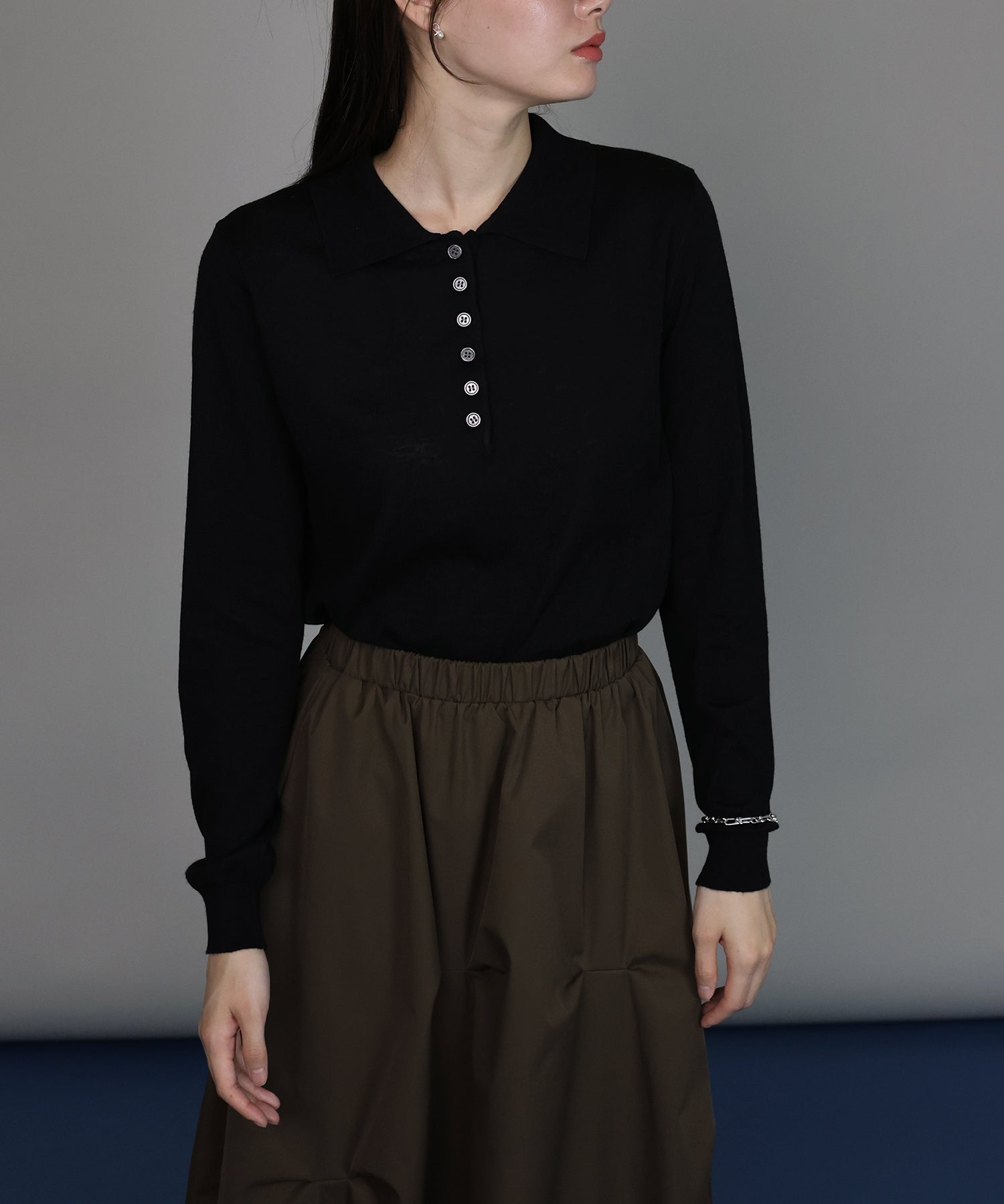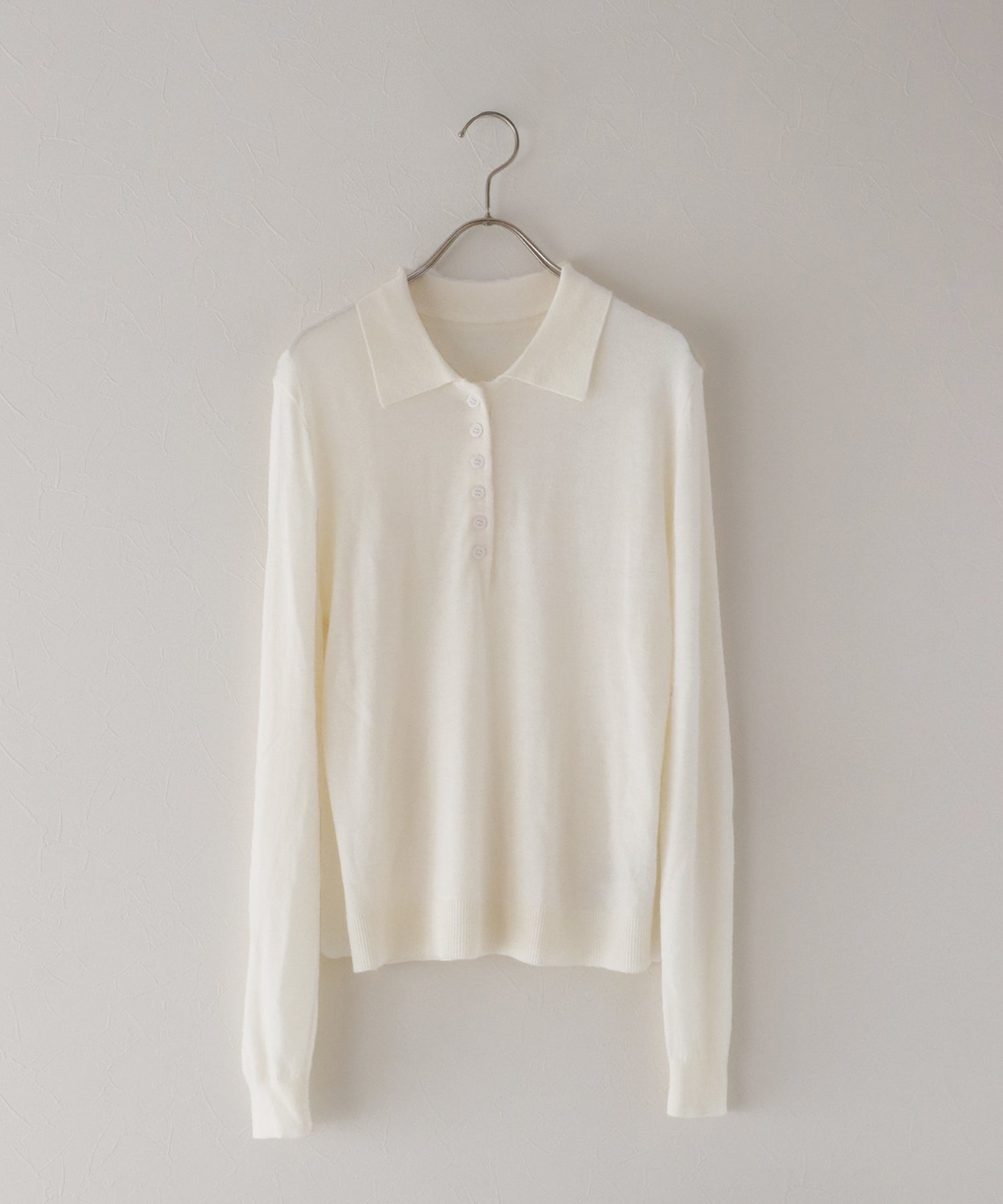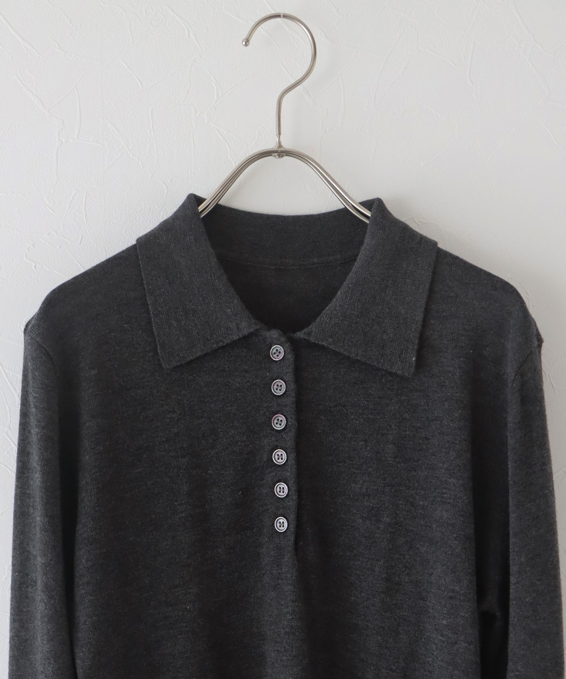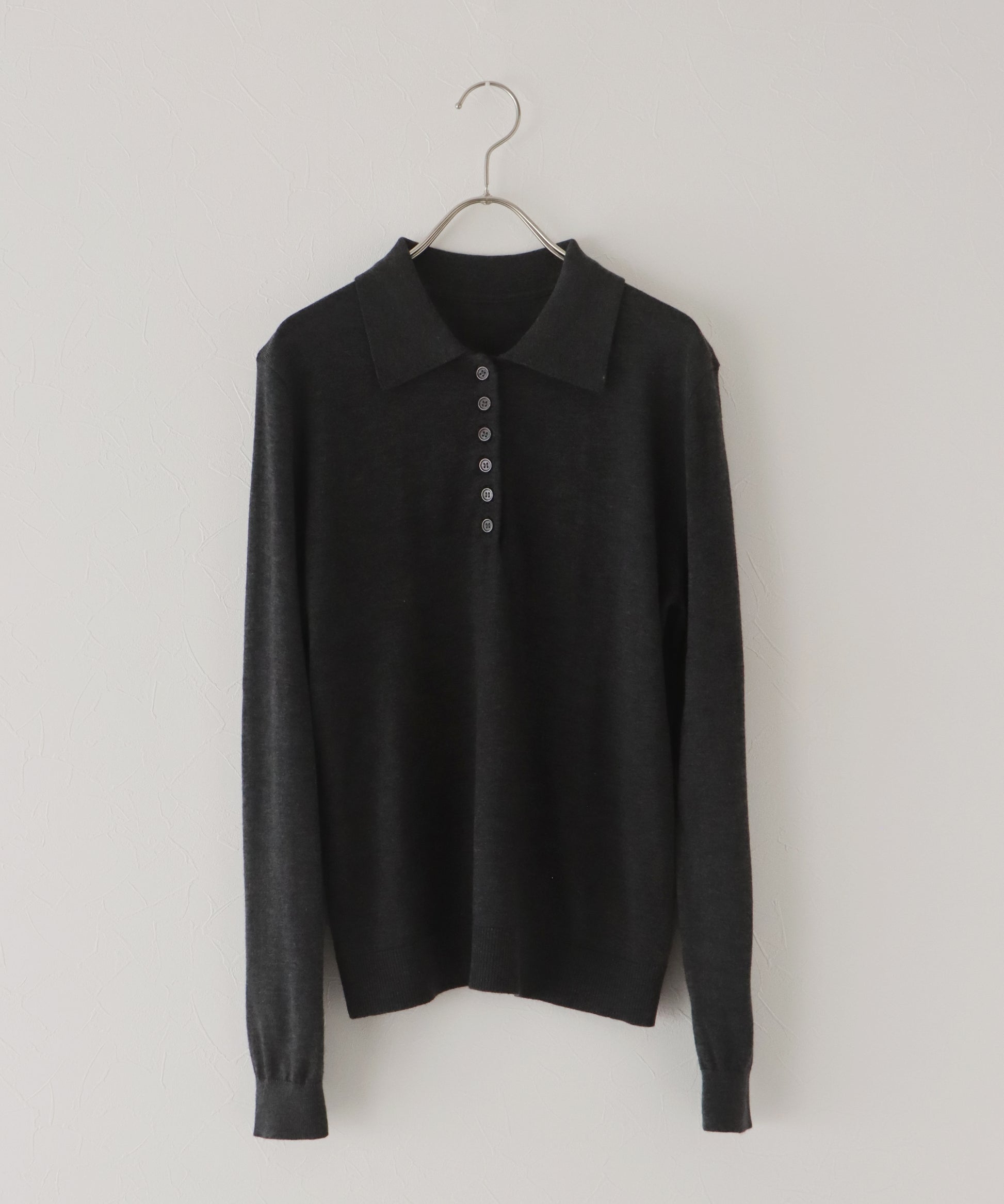 上質なウール混素材を使用し、薄手ながらも程よいあたたかみを感じられるポロニット。