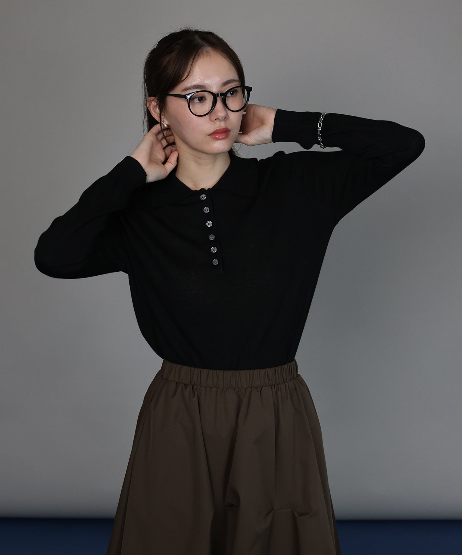 軽やかさとあたたかみを兼ね備えたウール混ニットポロニット