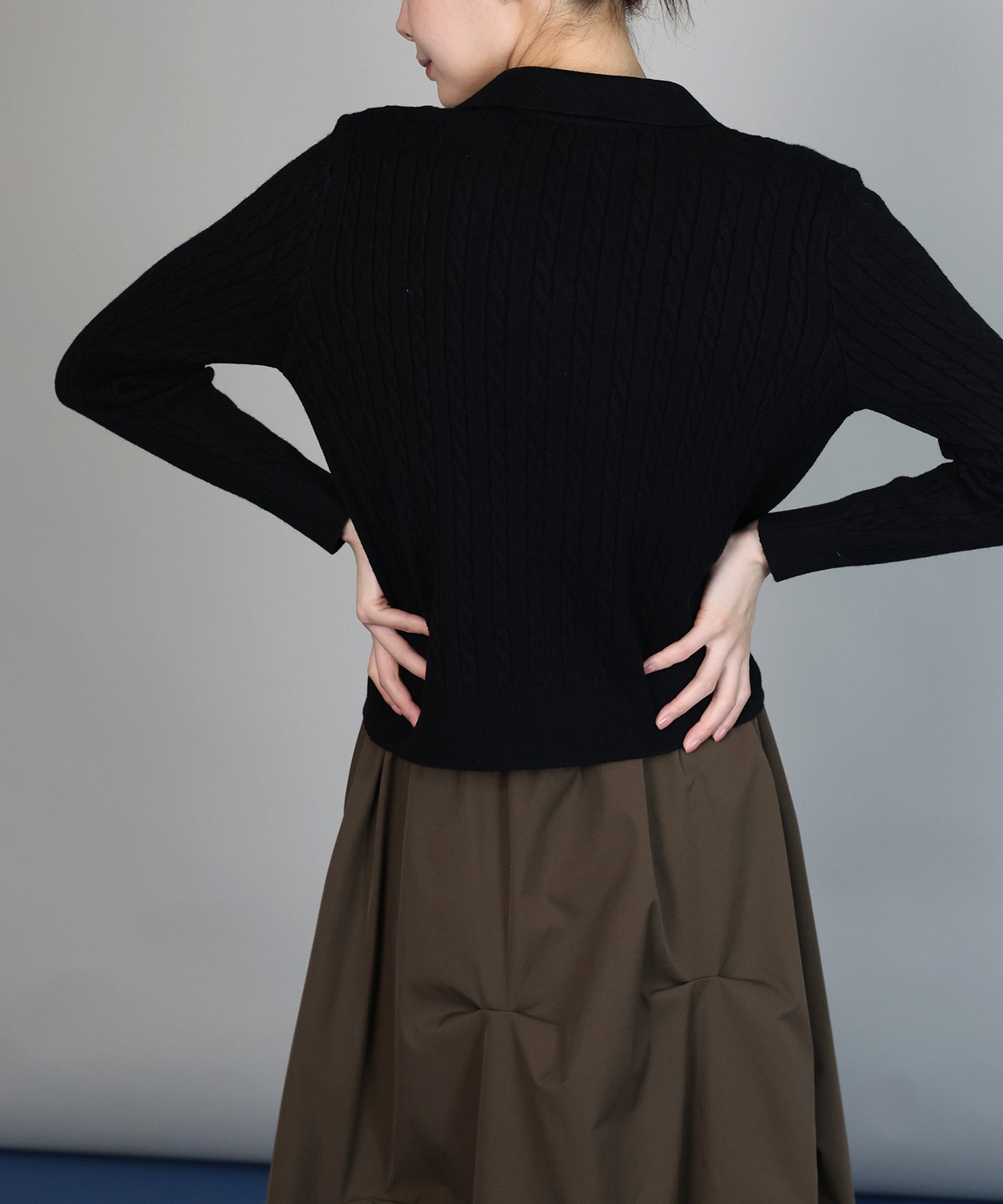 スキッパーデザインのポロ襟で、きちんとしつつも抜け感のあるデザインに仕上げました。