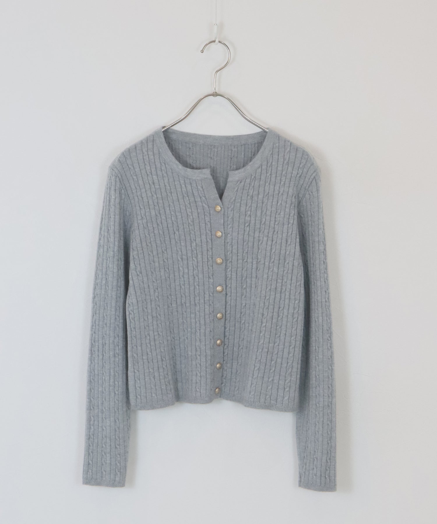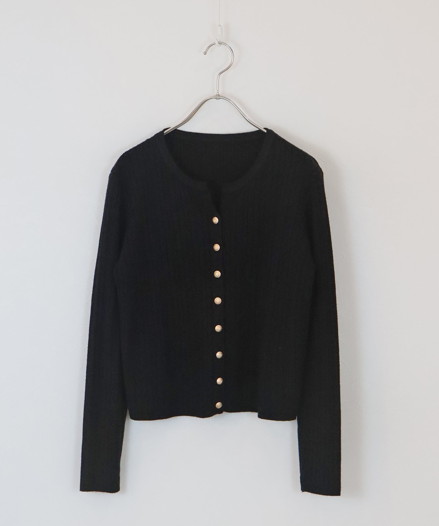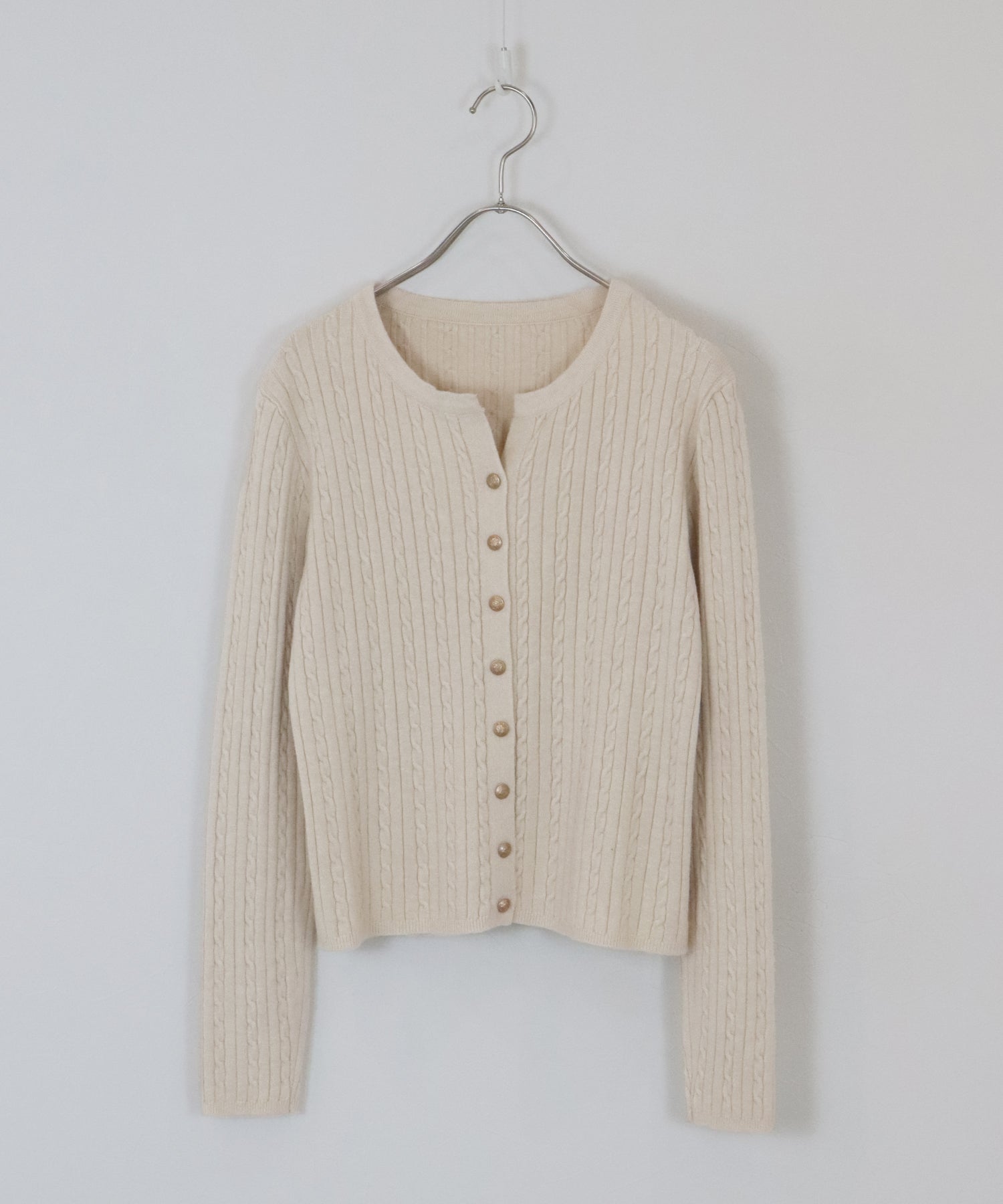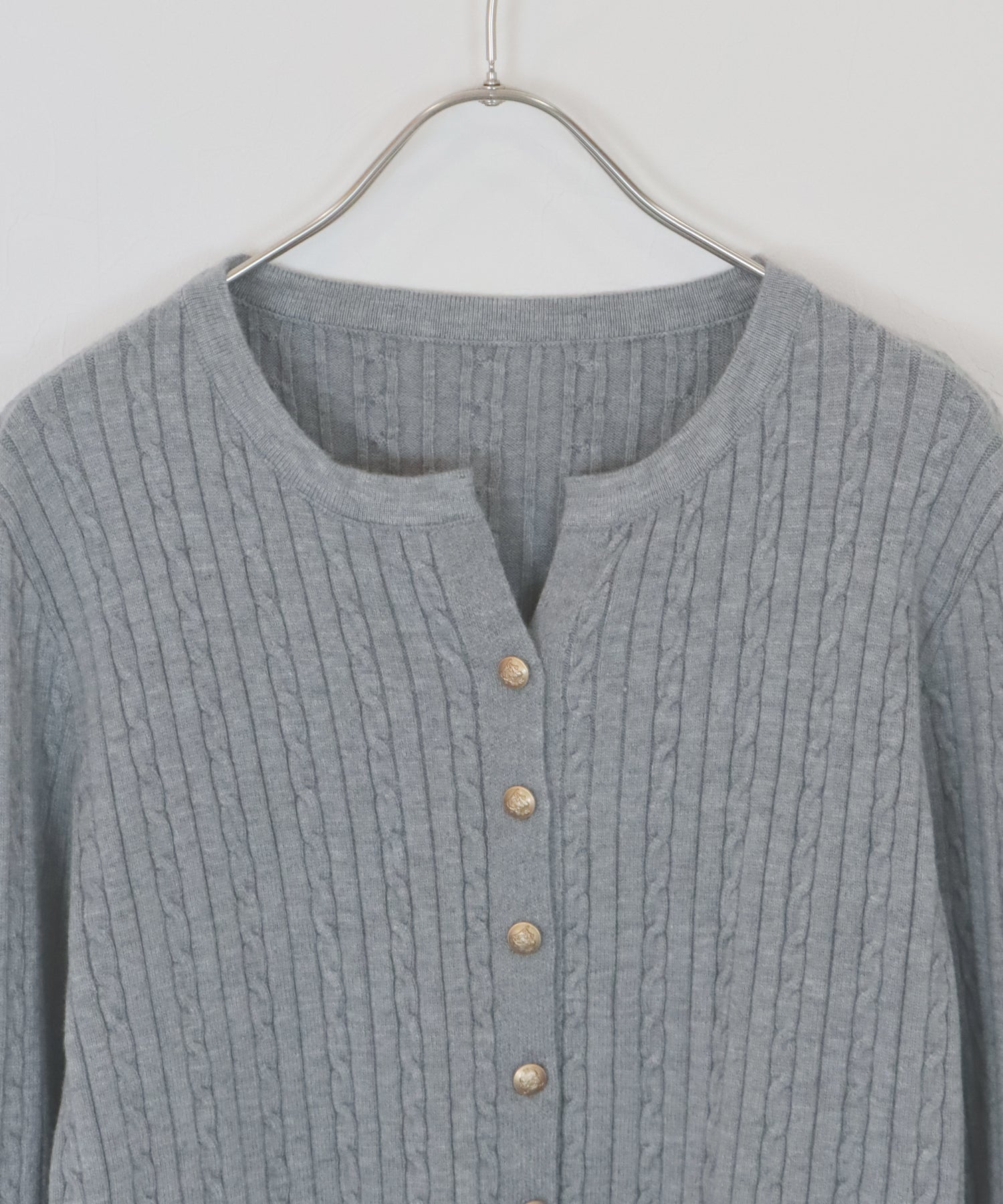 ゴールドボタンケーブルクルーカーディガン