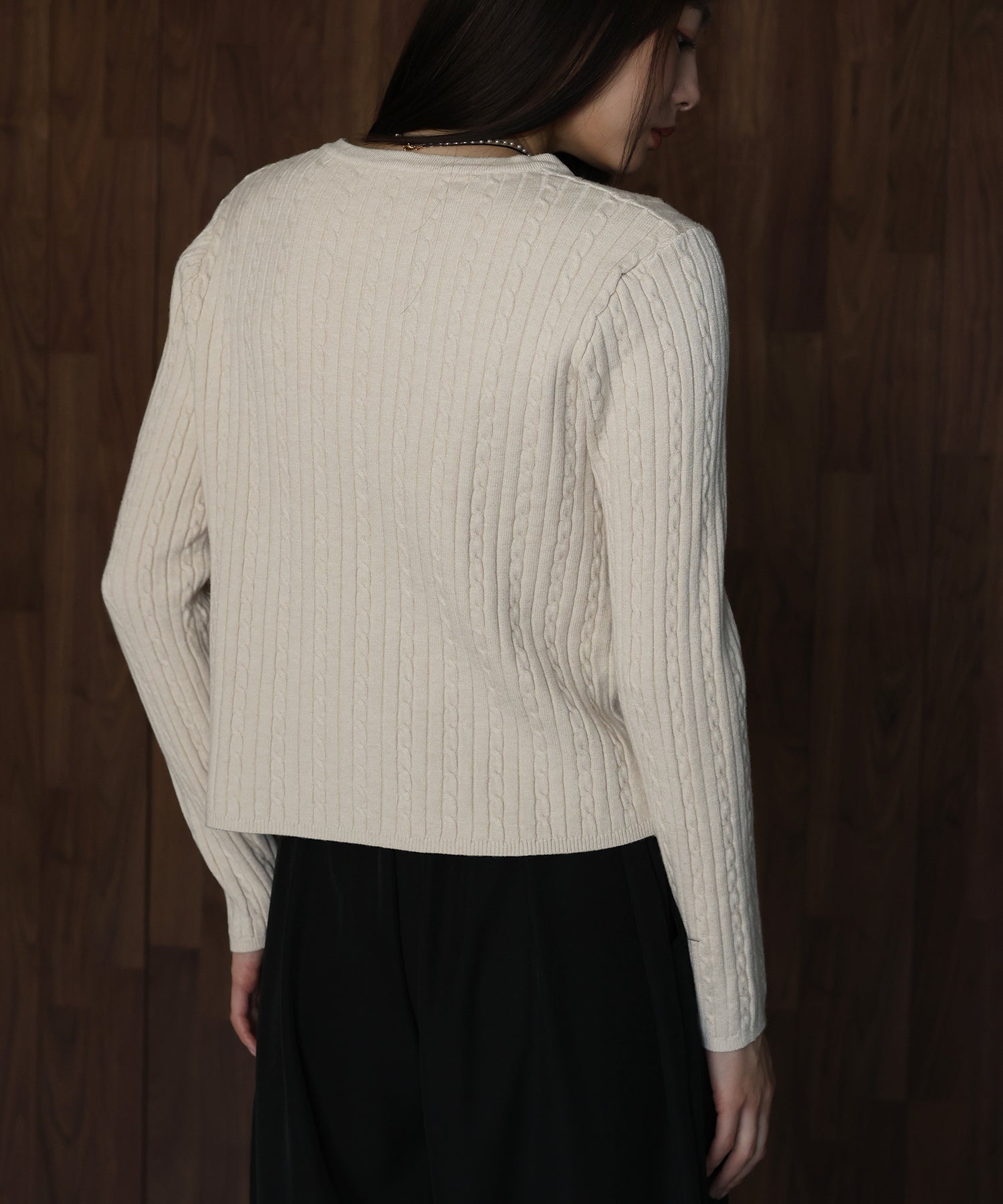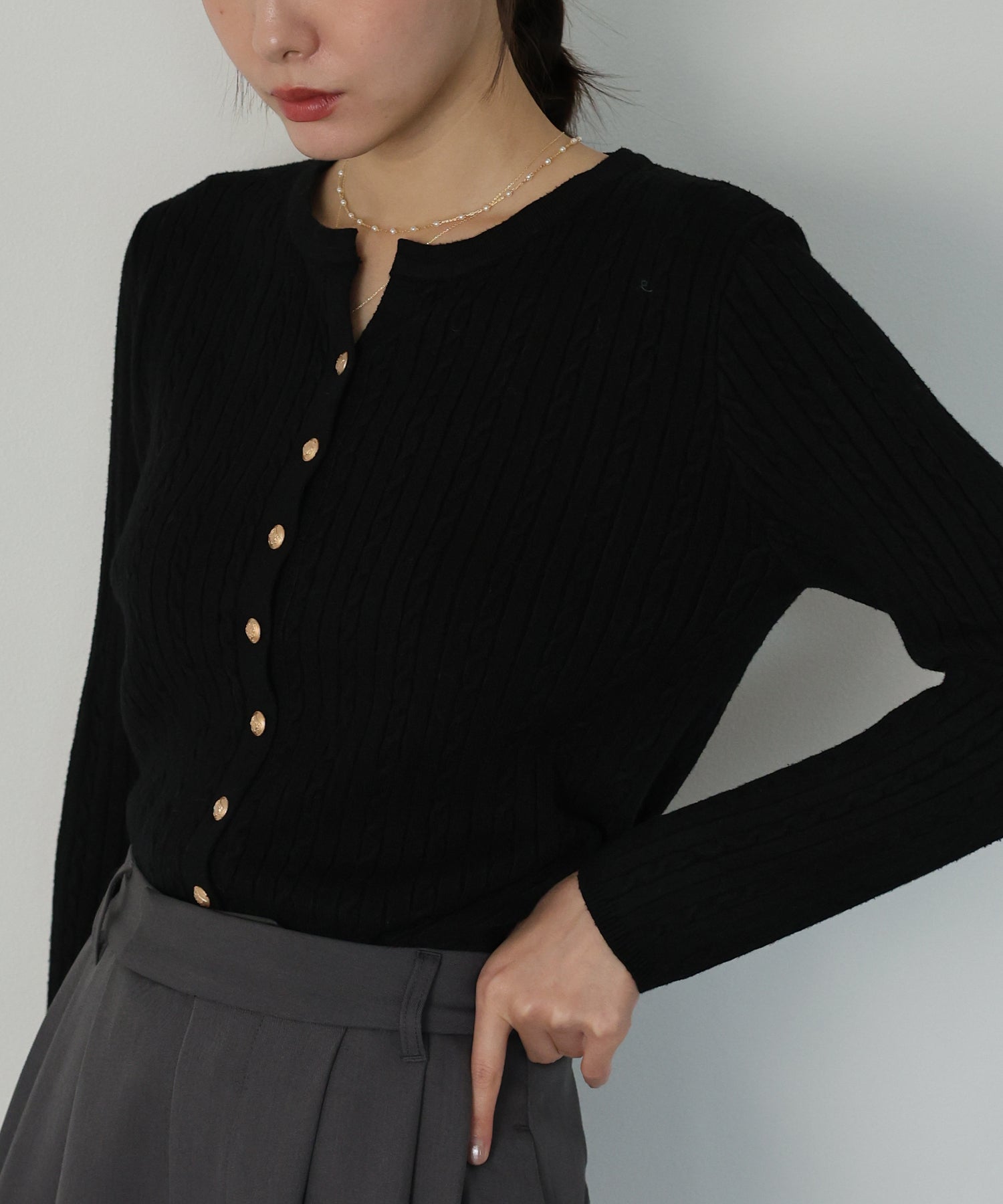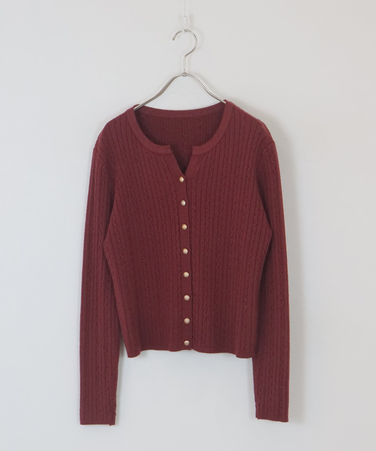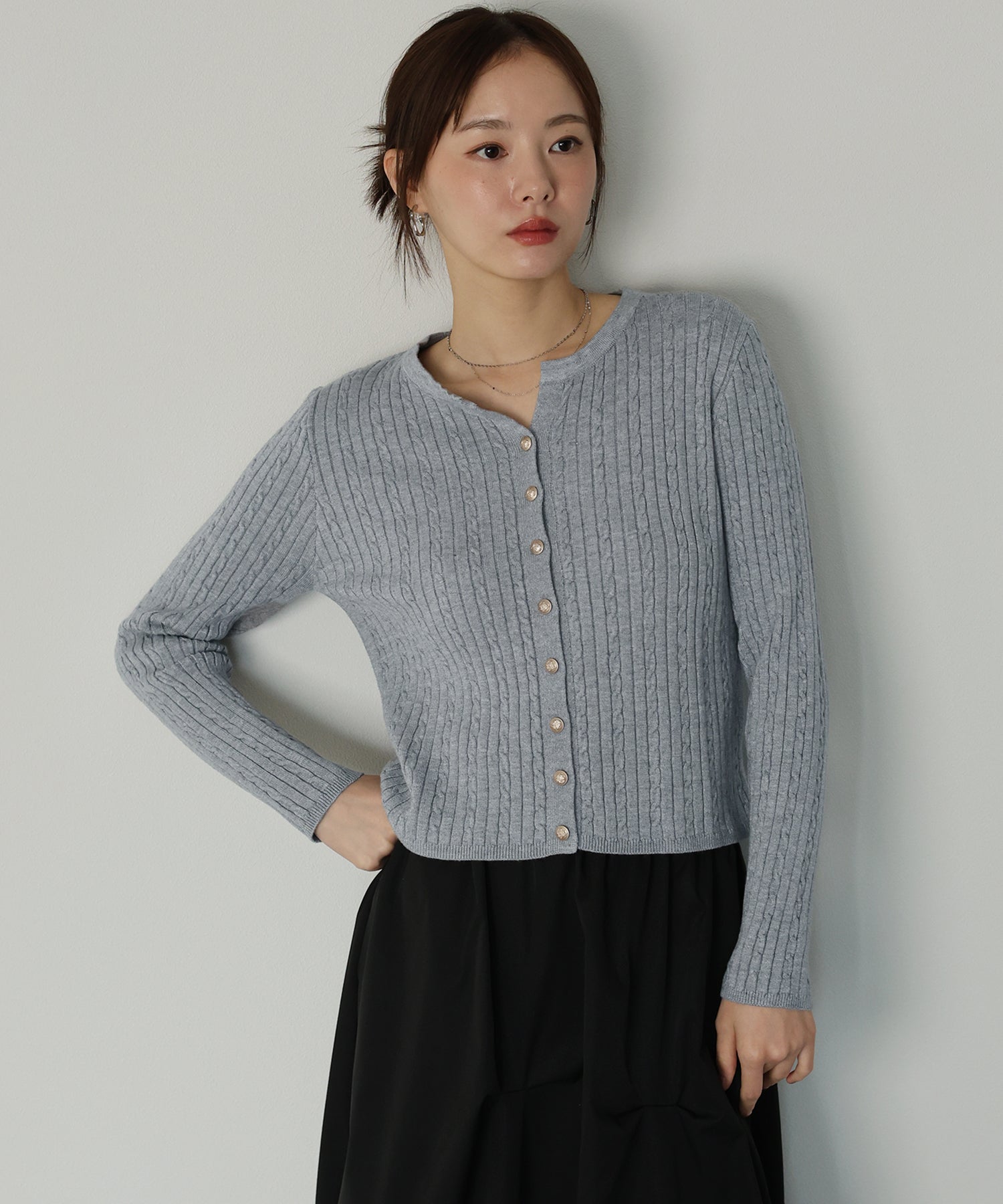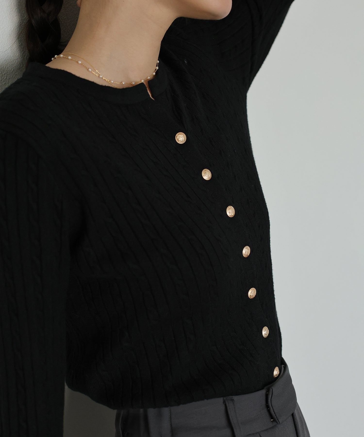ゴールドボタンケーブルクルーカーディガン