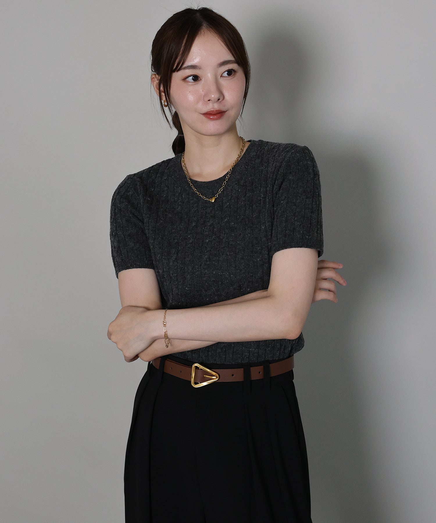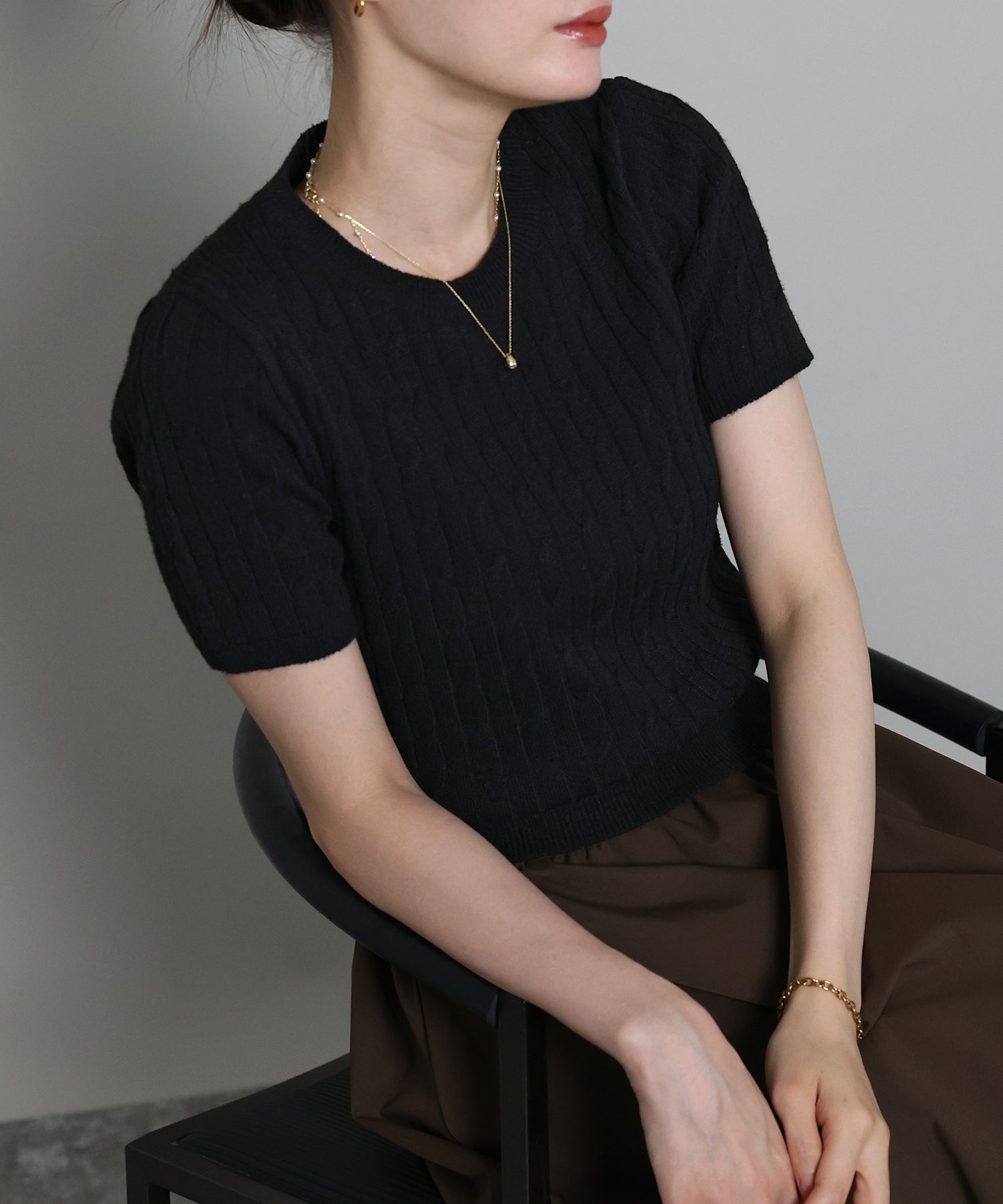 シンプルなデニムやスラックスに合わせるだけでケーブル編みのディテールがアクセントとなり、全体を華やかに仕上げてくれます。