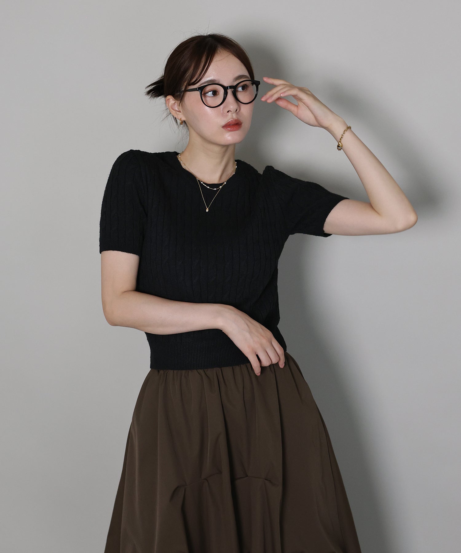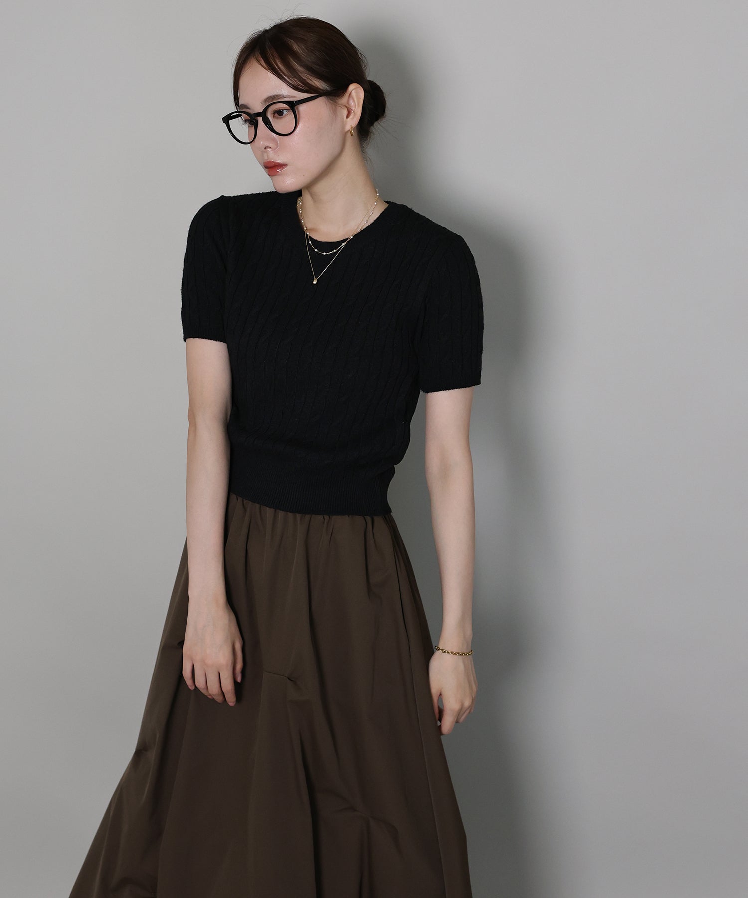 【TIME SALE】リボン袖ドッキングケーブルニット