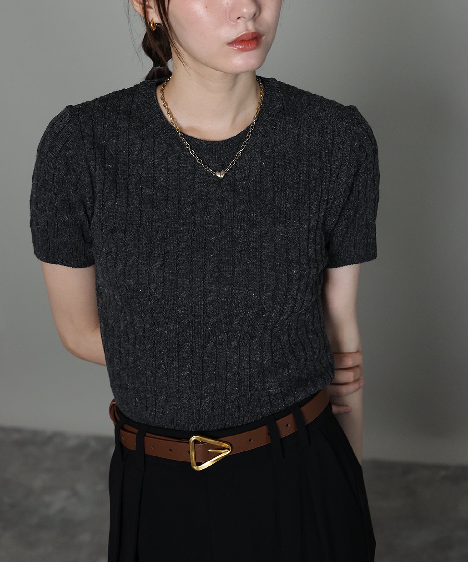 ケーブル編みがアクセントになり華やかな印象を演出します。