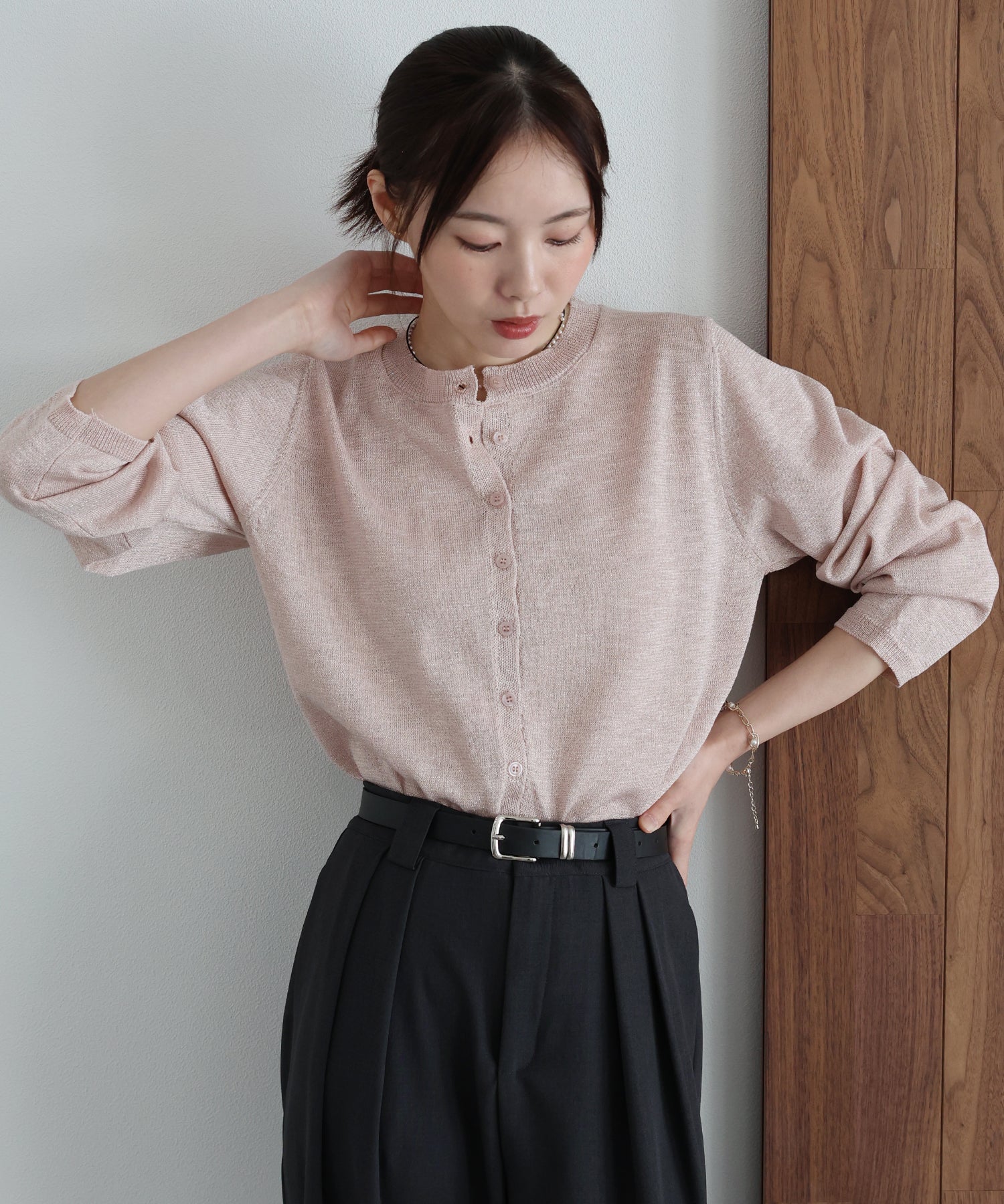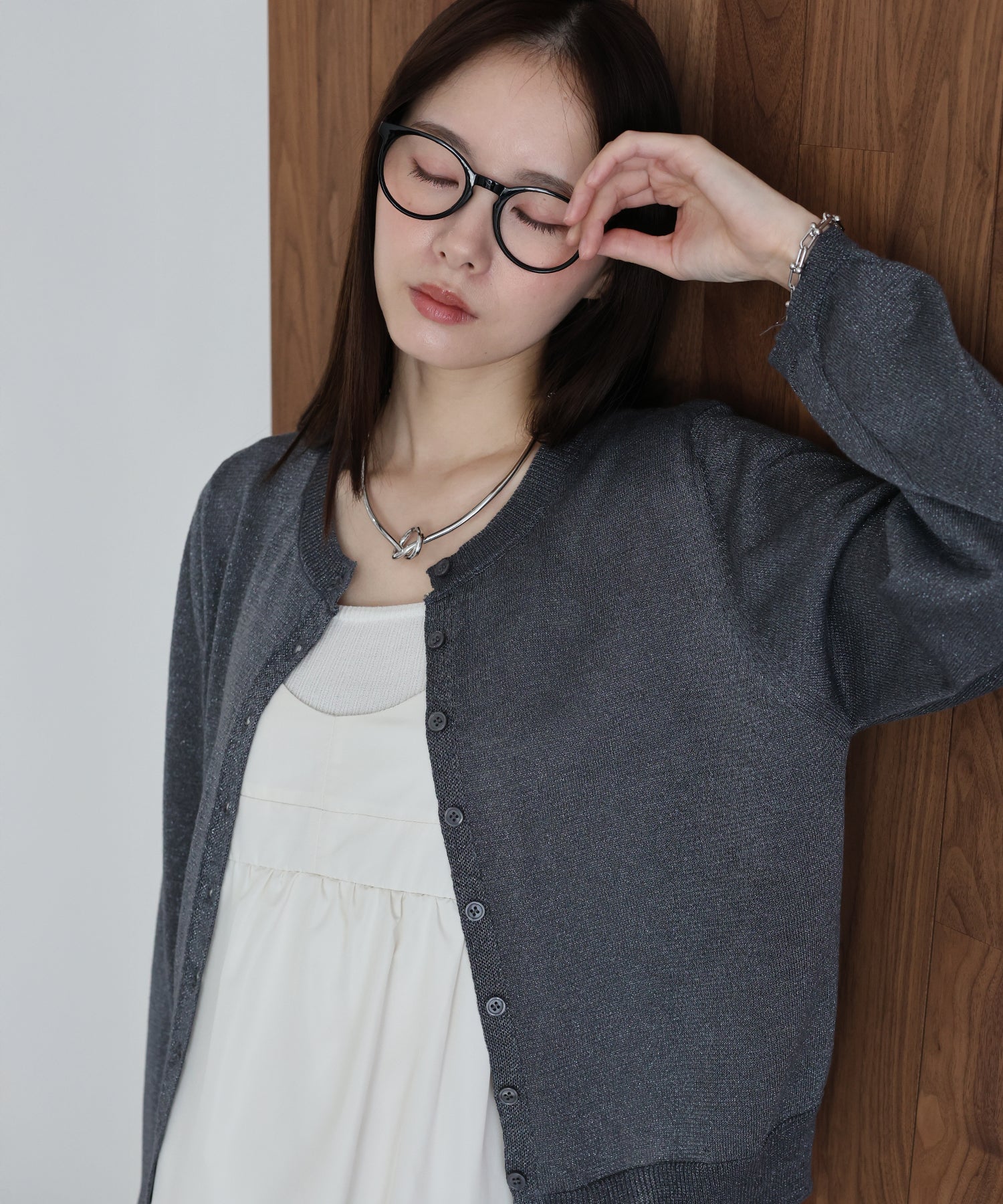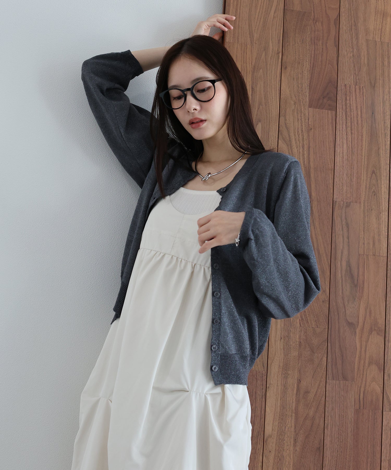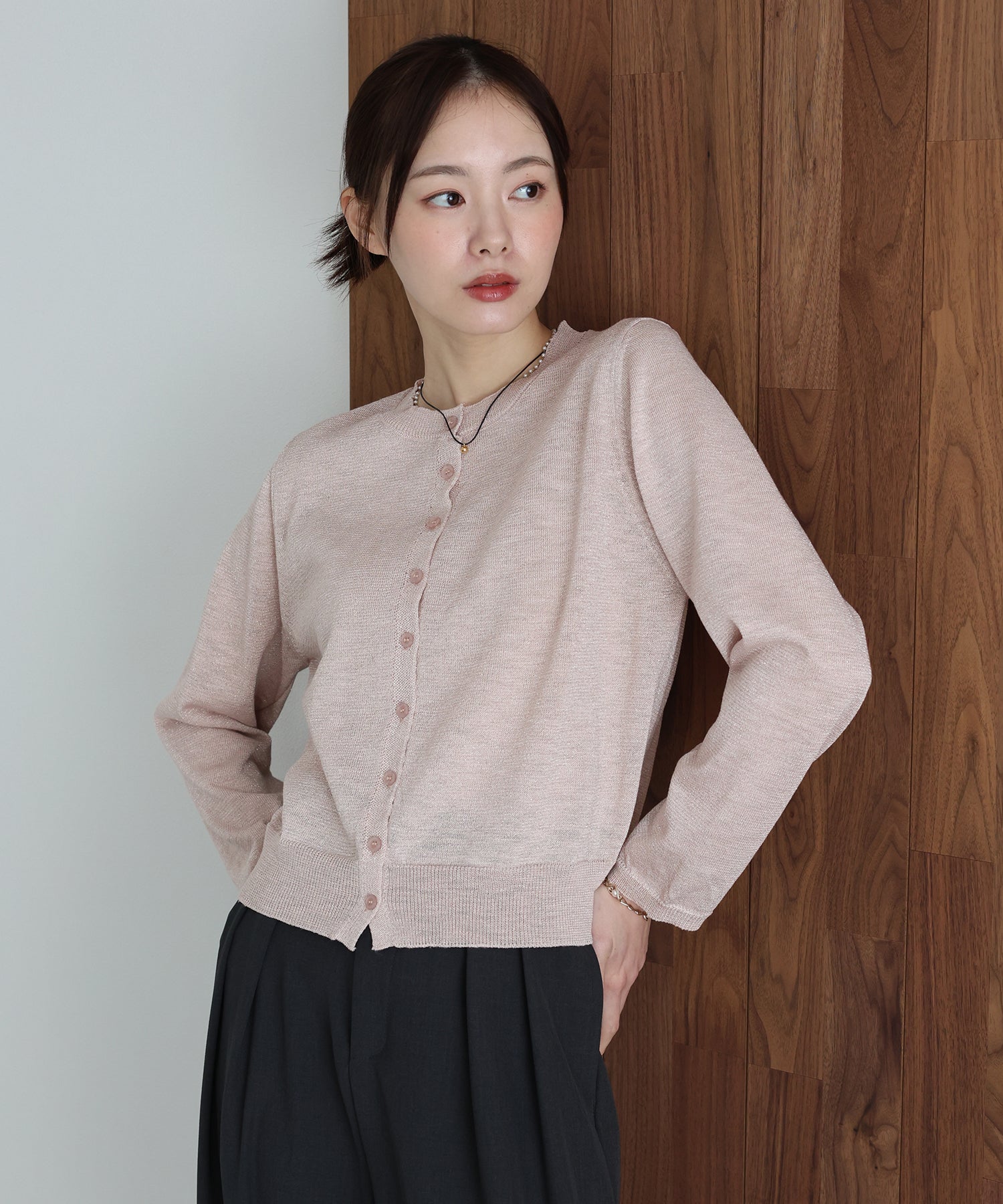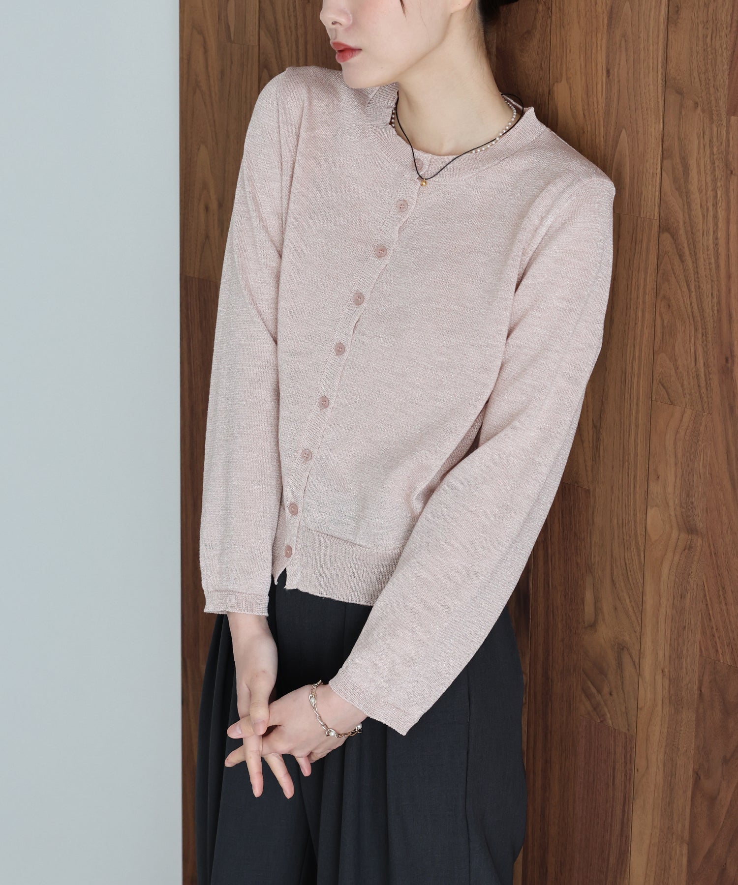 繊細な煌めきを纏う。動くたびに表情が変わる上品ラメニットカーディガン