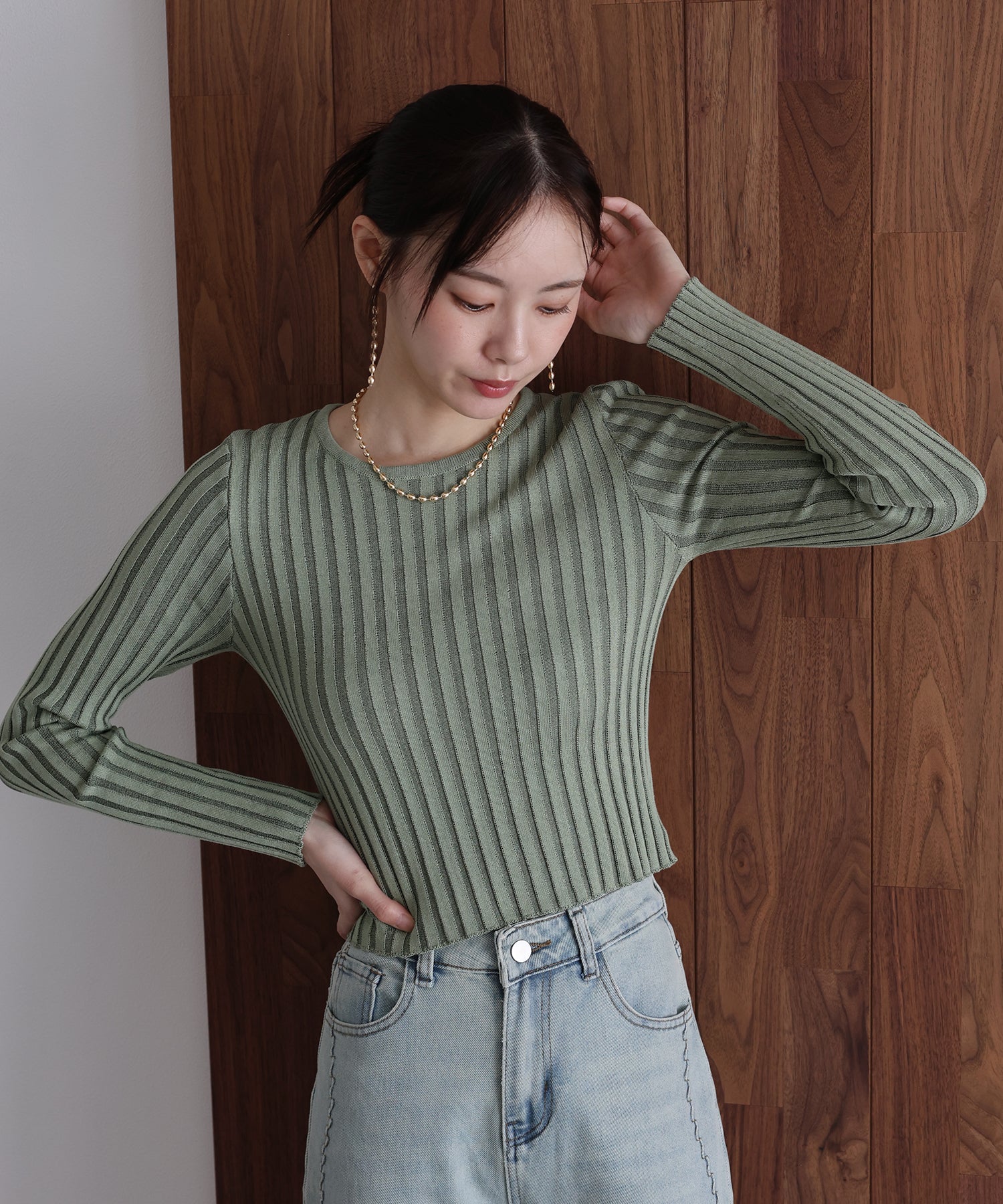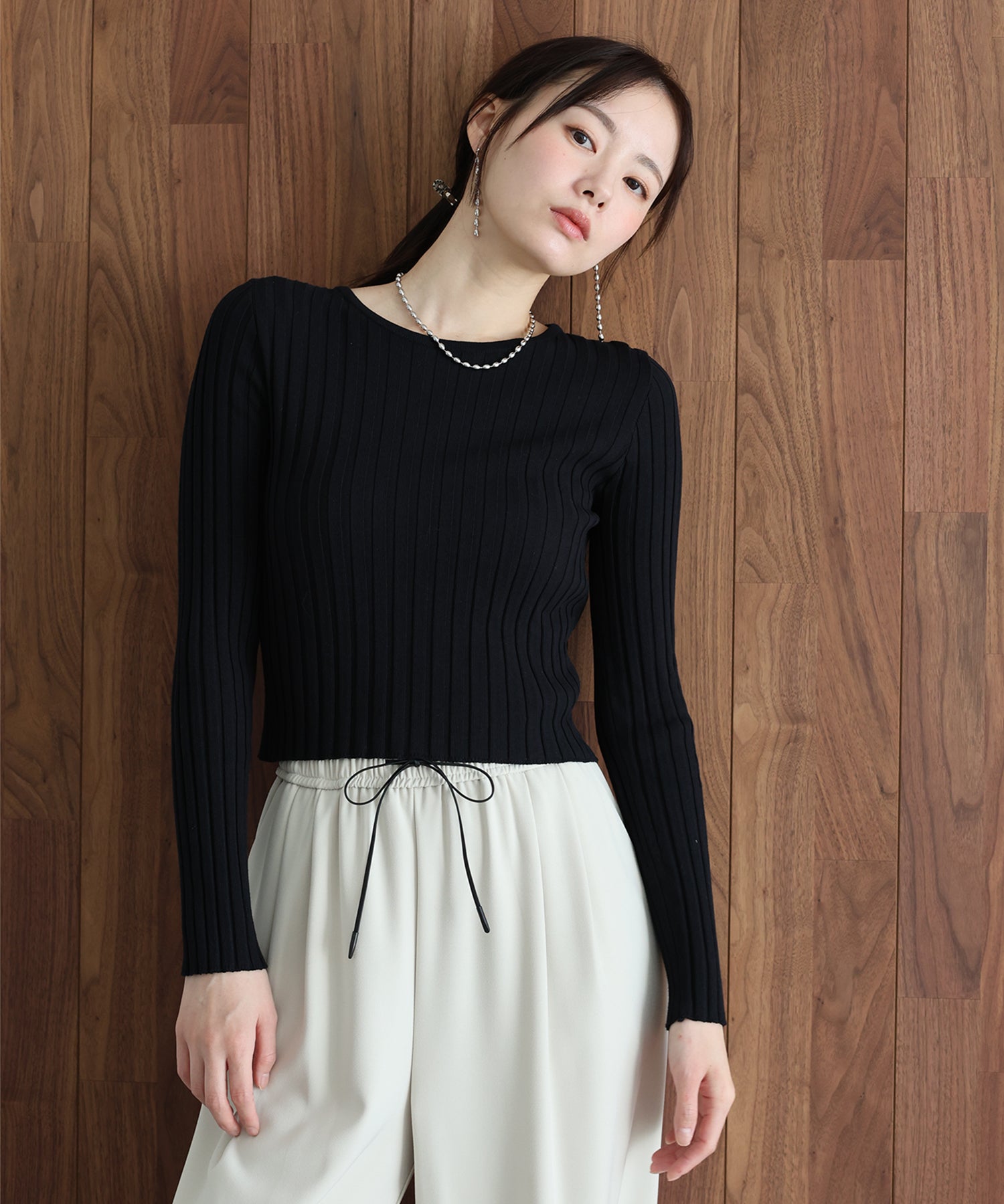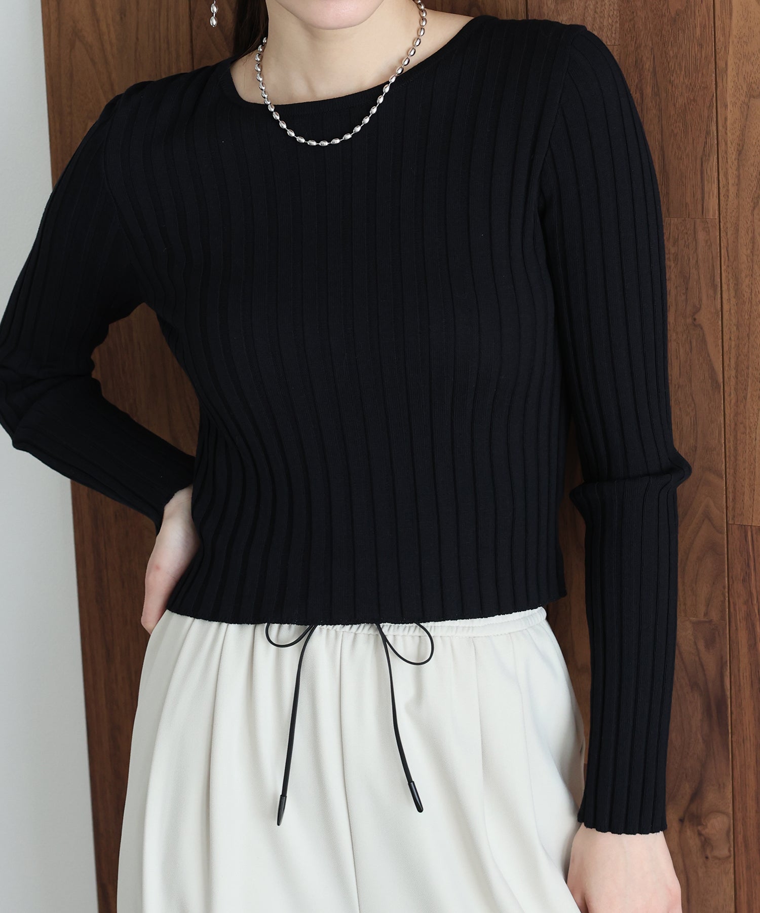 凛としたタイトシルエット。縦ラインが際立つ、大人のリブニット
