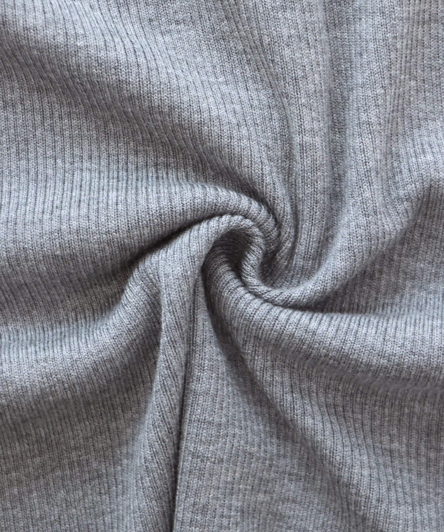 縦のラインを強調する細やかなリブ編みを採用し、身体のラインにしなやかにフィットします。