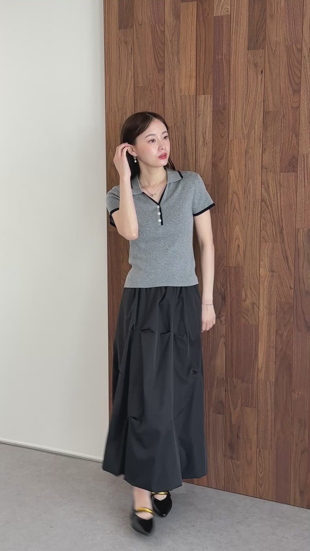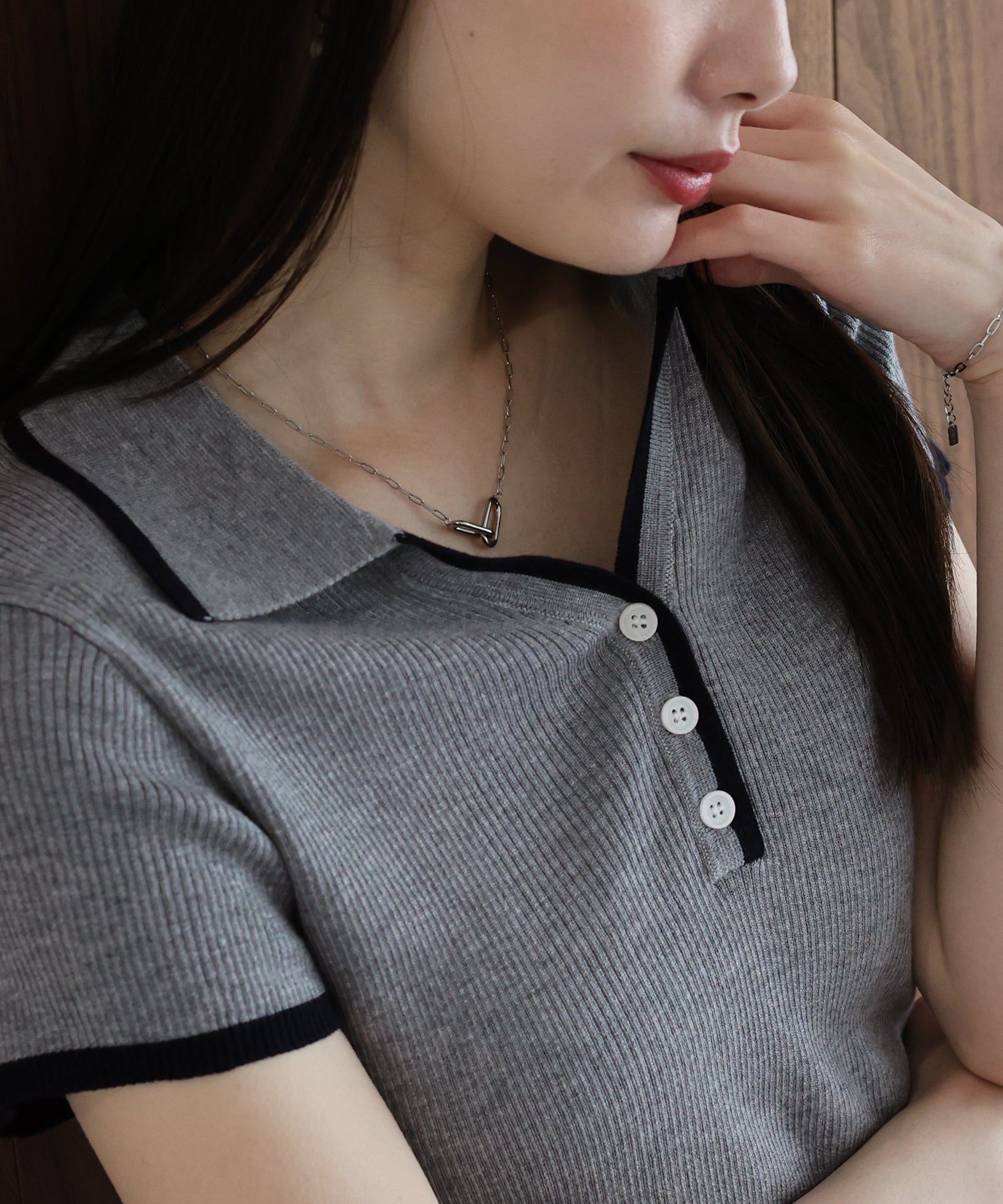 スキッパーネックなのでネックレスなどのアクセサリーとも好相性◎