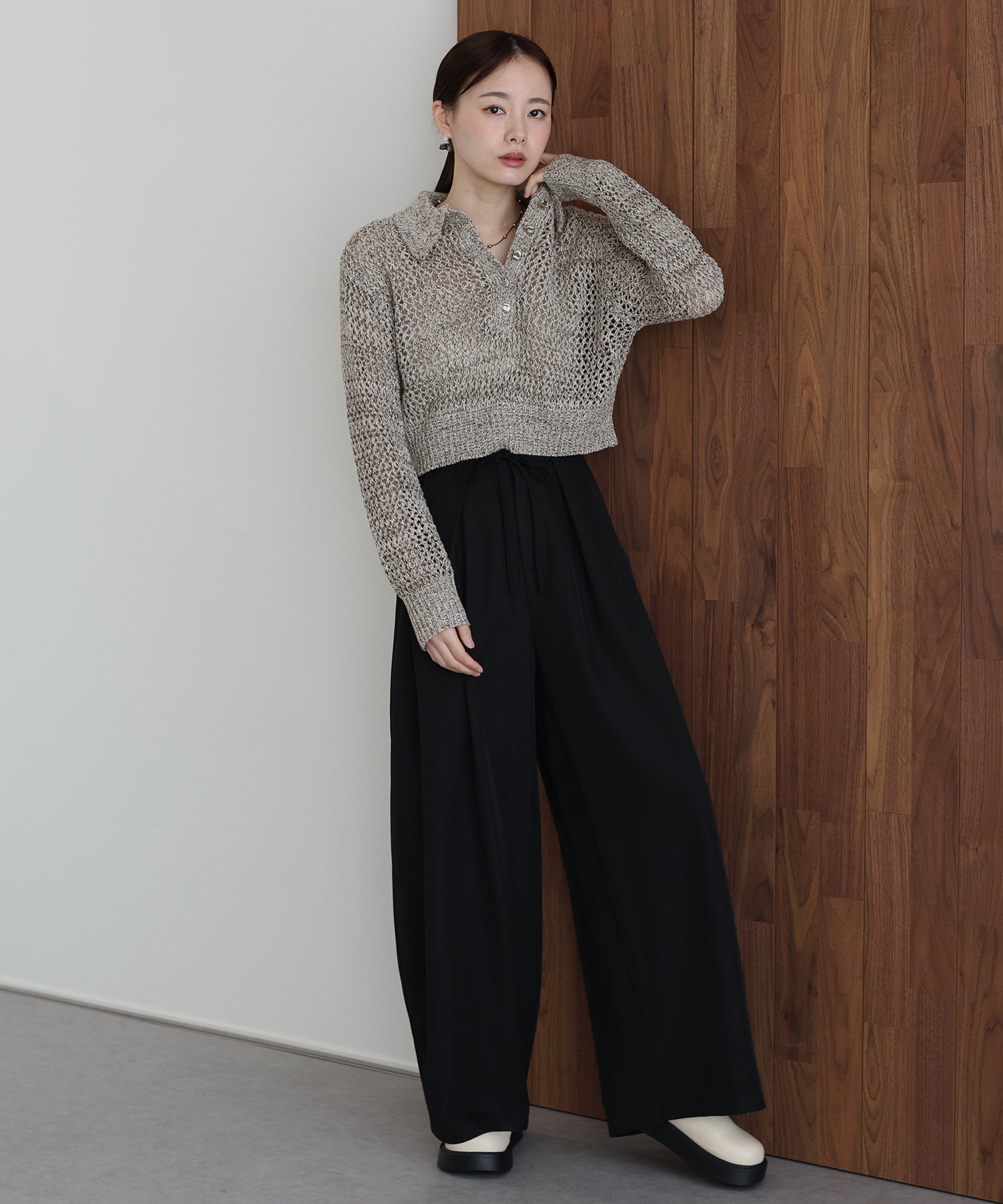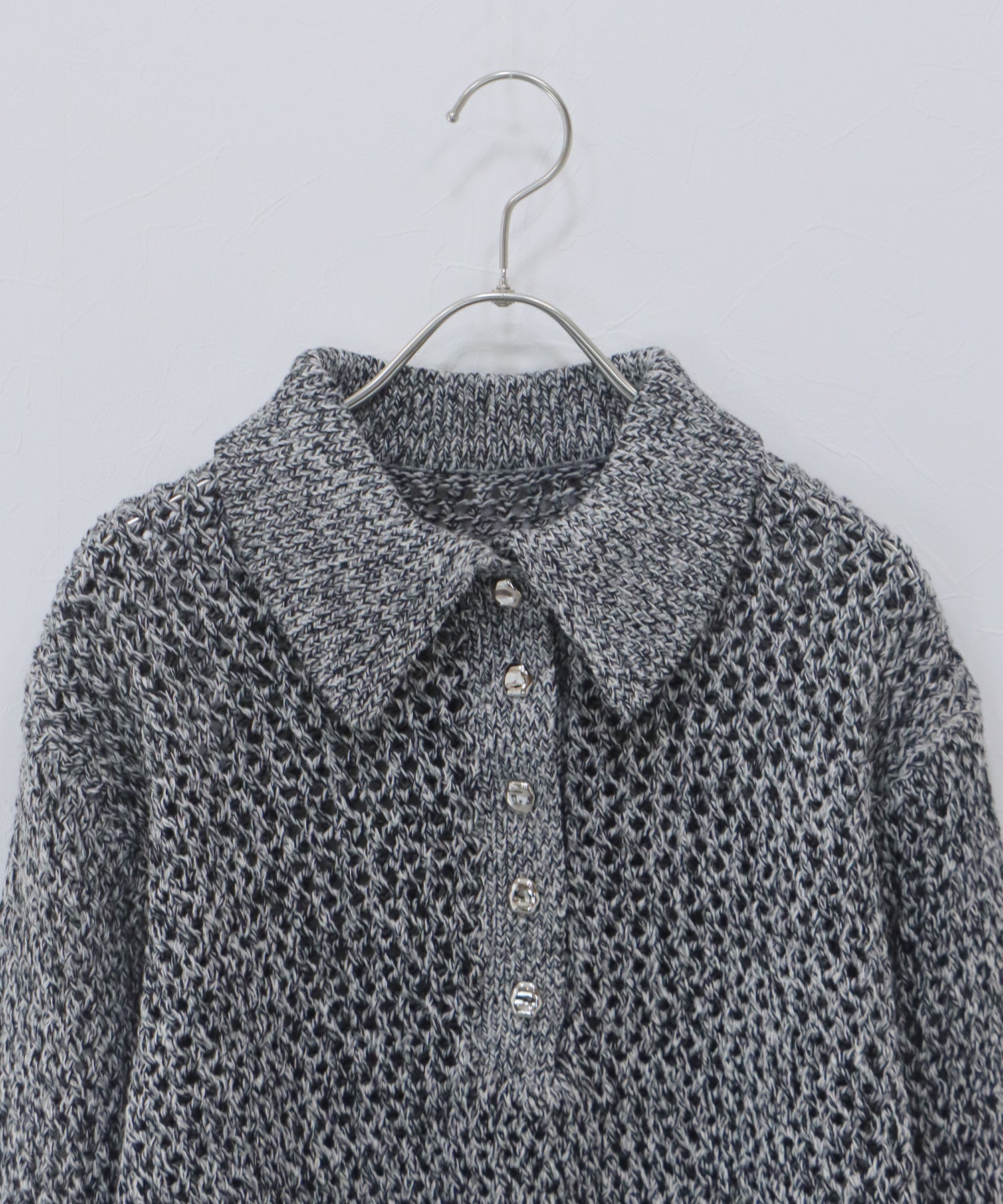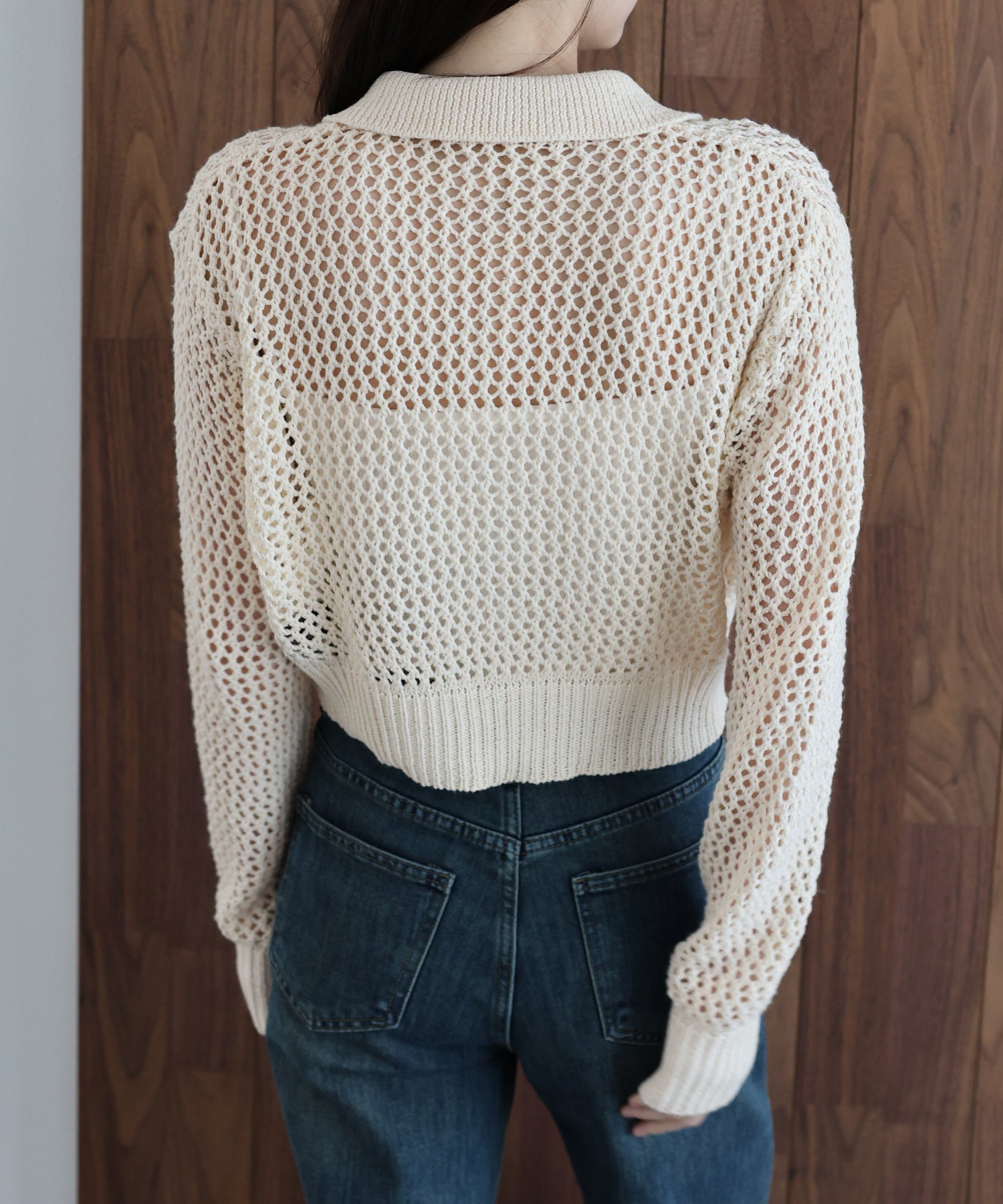 春夏らしいヘルシーな肌見せを叶える、大ぶりなメッシュ編みが目を惹くポロニット。