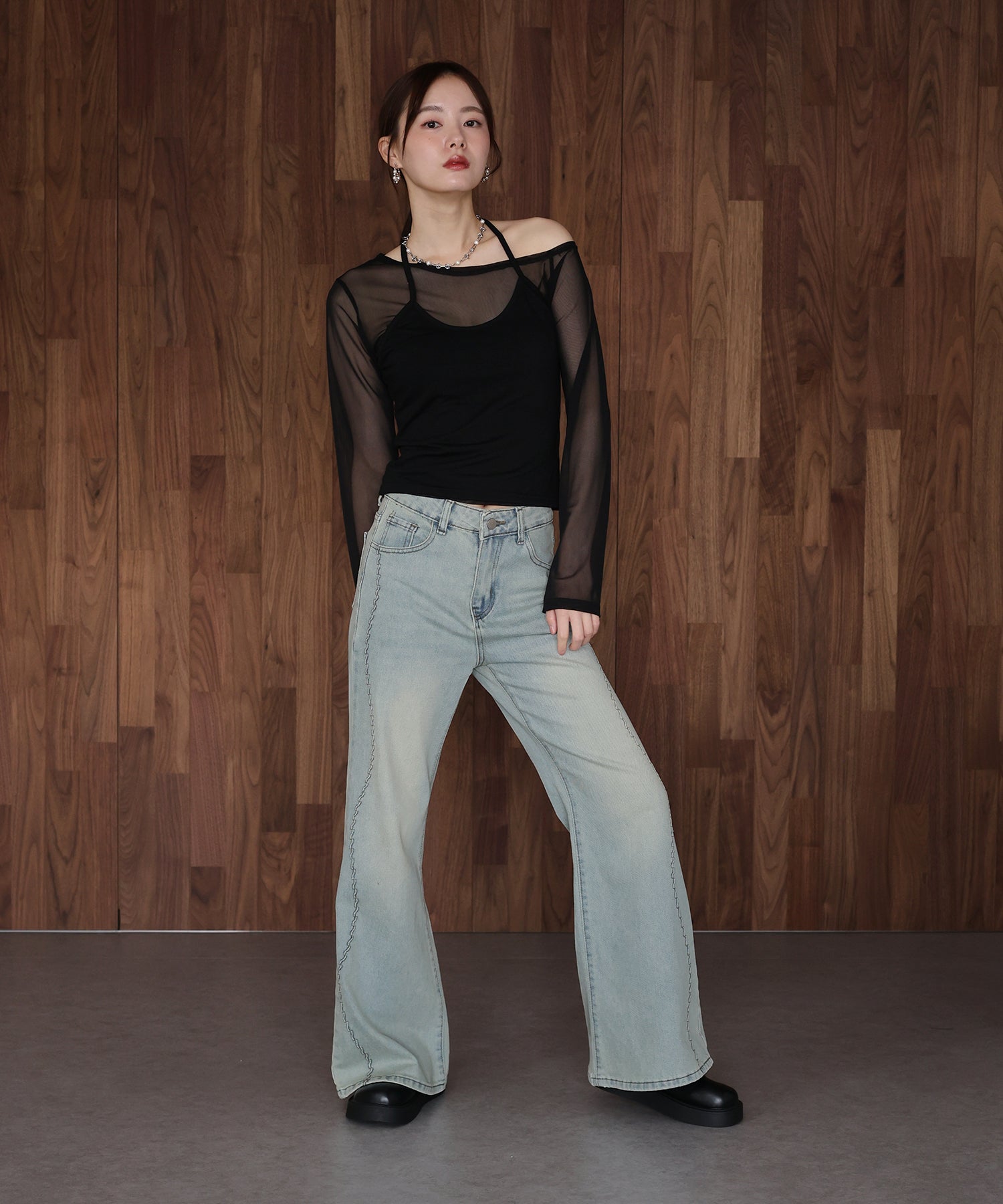 センタープレスフレアデニム