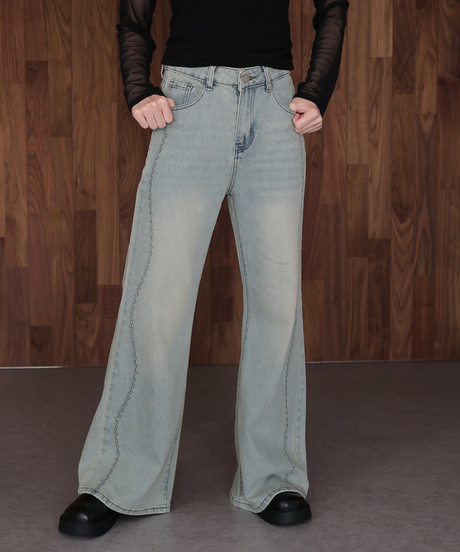 ウェーブラインデニムパンツ