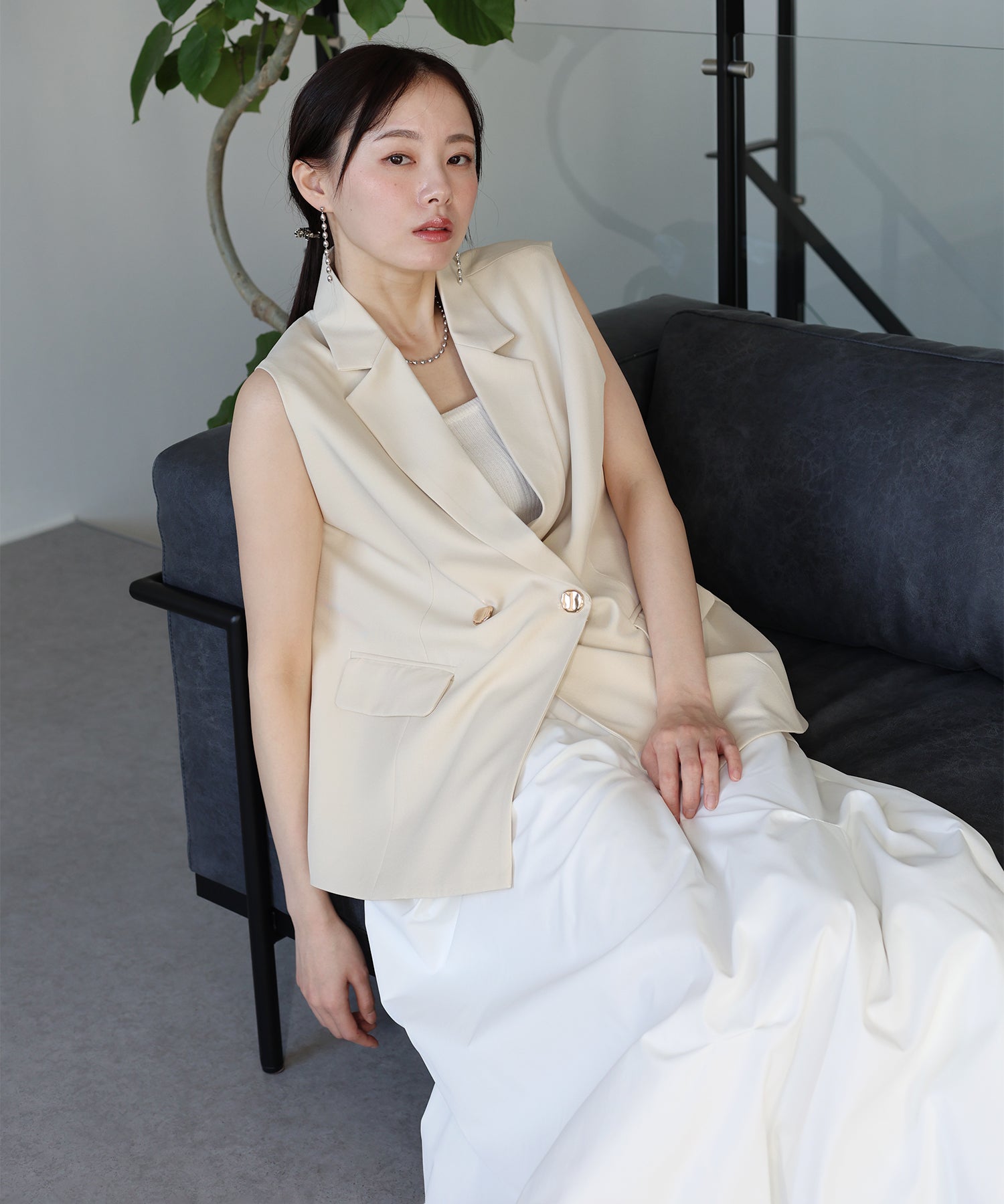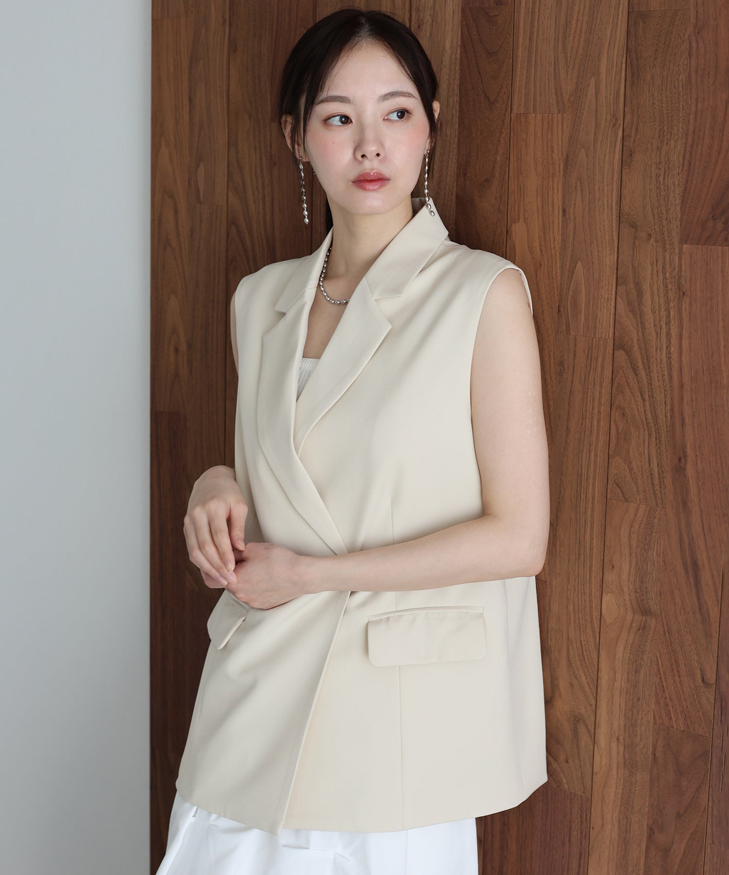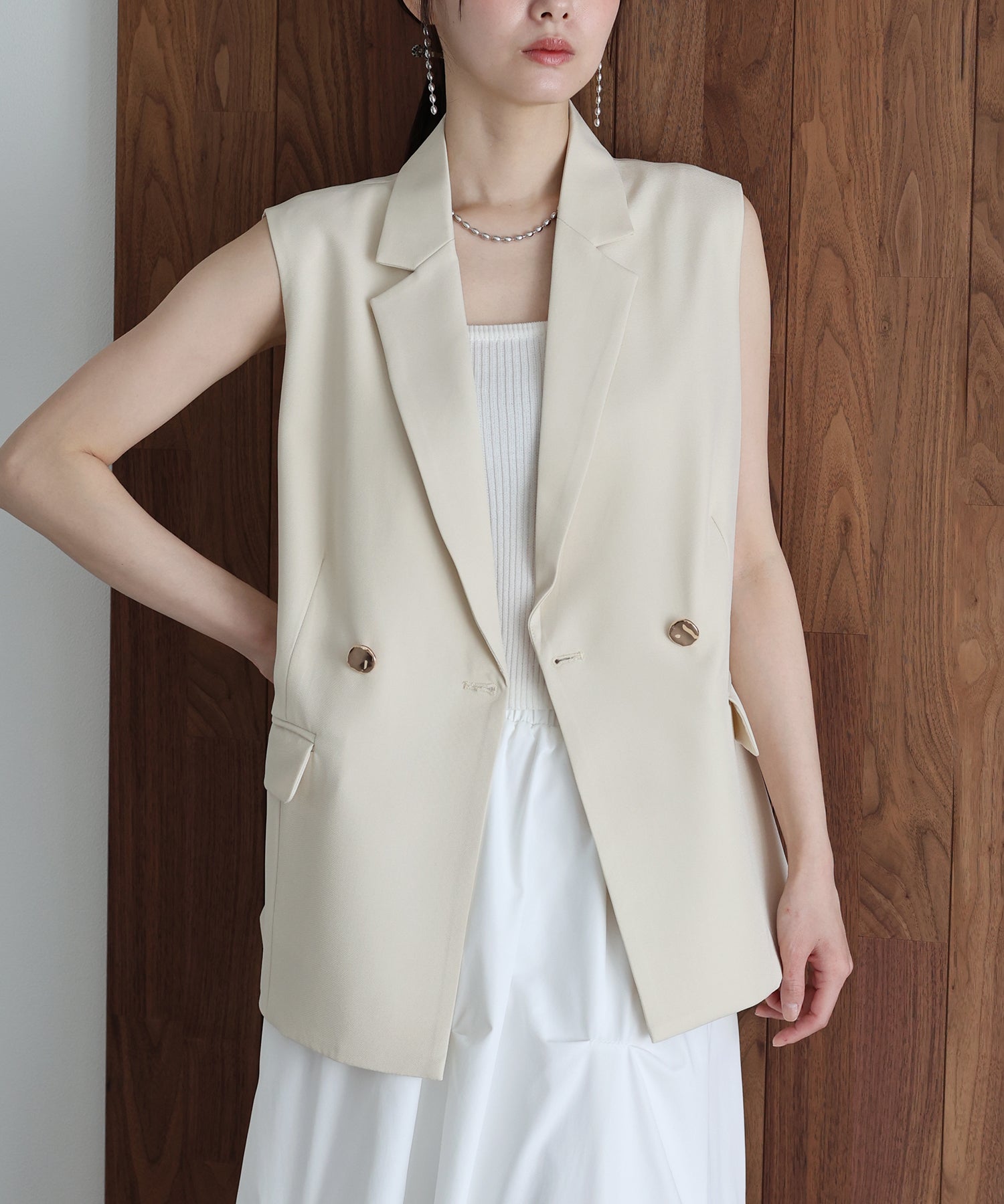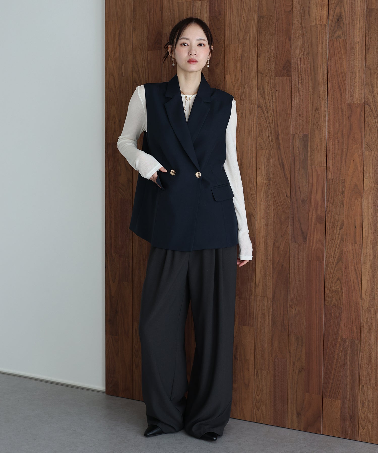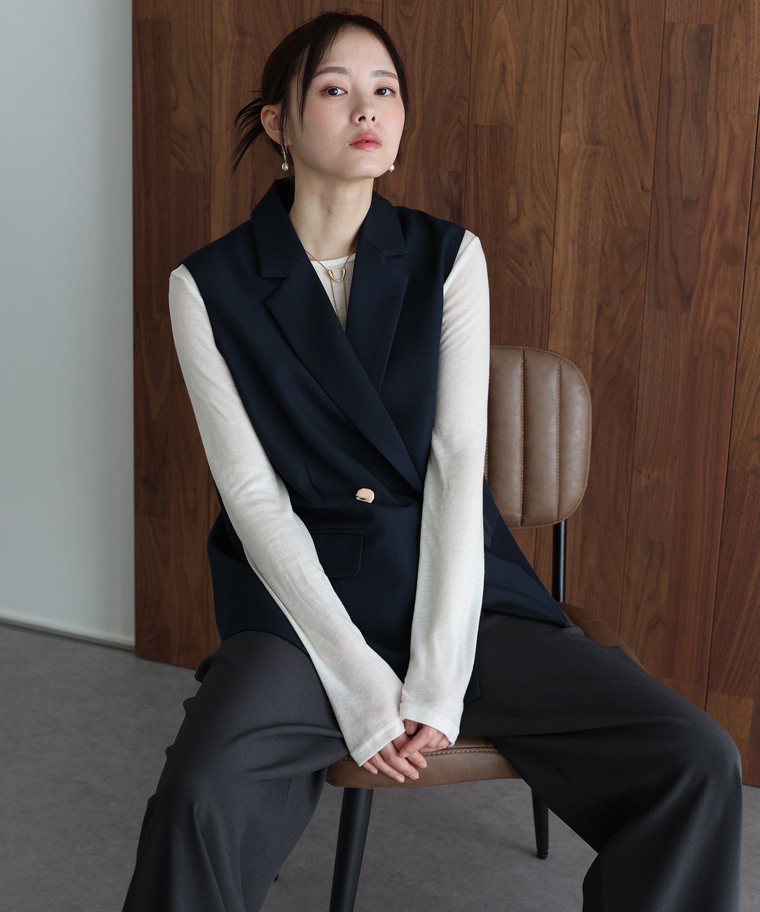 オンオフ問わず様々なスタイリングにマッチする旬なテーラードジレ。