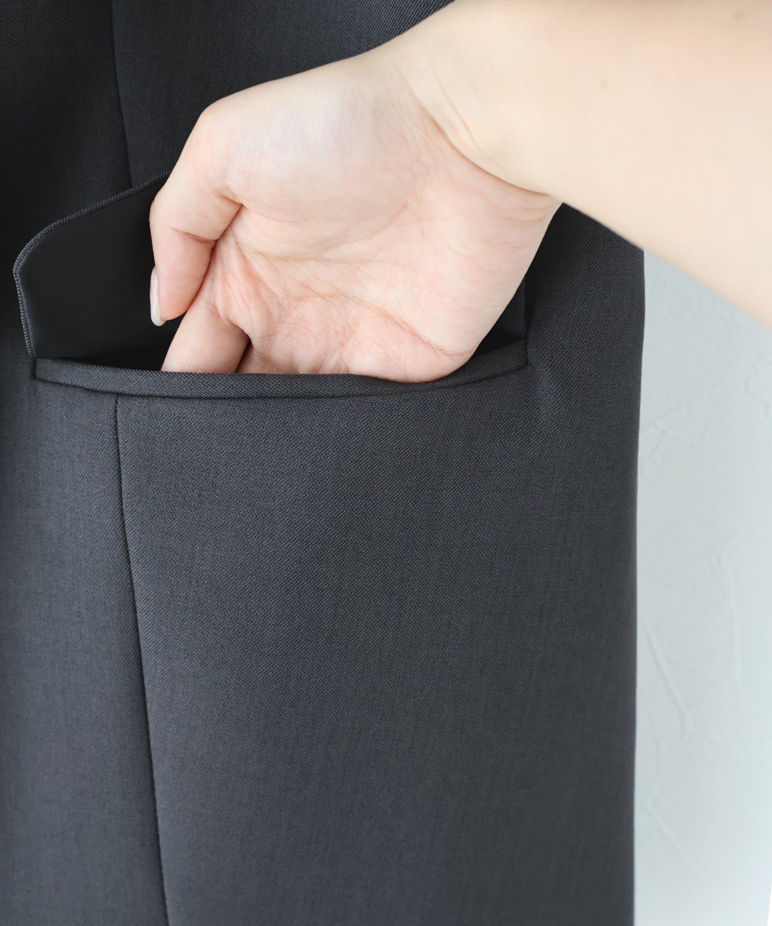 ダブル仕立てのデザインできちんと感があるので、キレイめなブラウスやボトムと合わせるとオフィスカジュアルにも◎