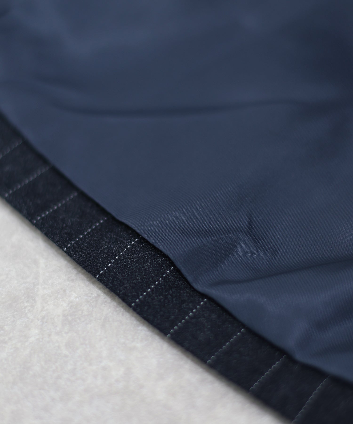 同素材のボトムを合わせたセットアップスタイルはもちろん、