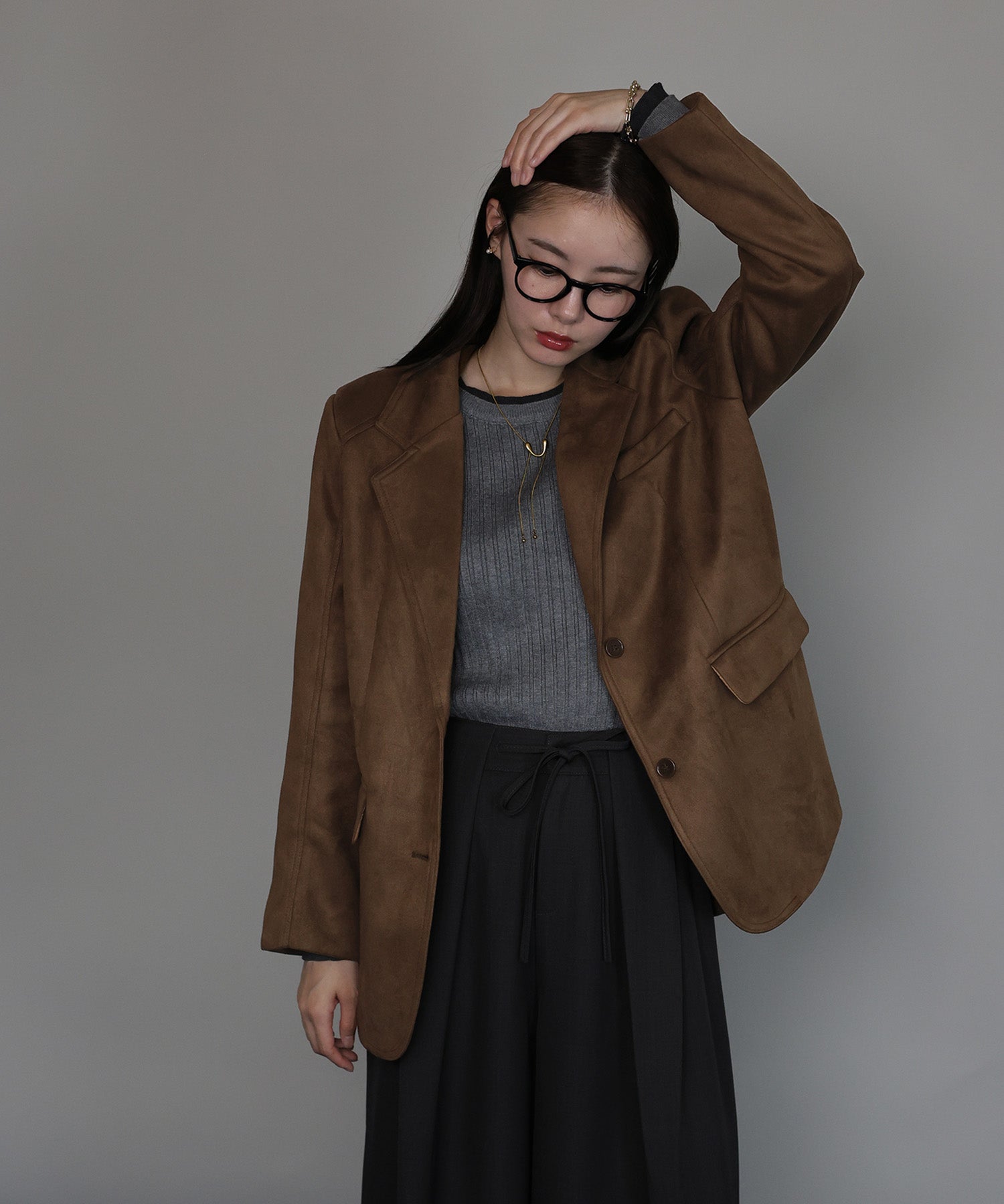 柔らかなスウェード調素材が、高見えしながらも大人の余裕を感じさせます。