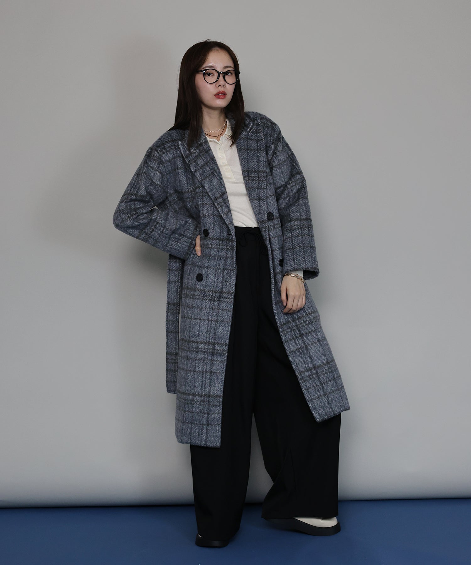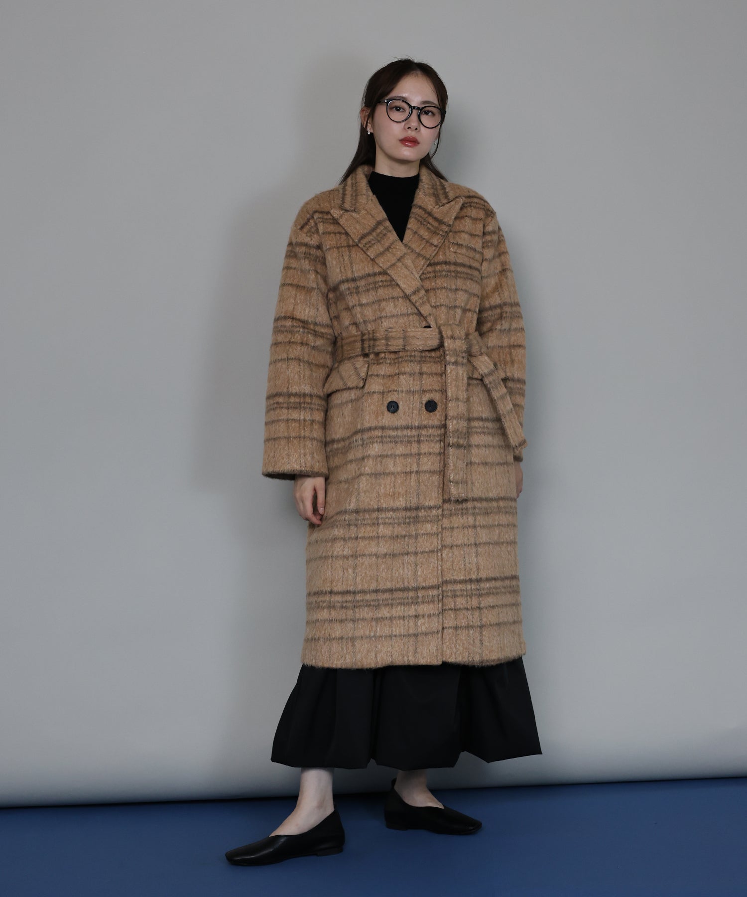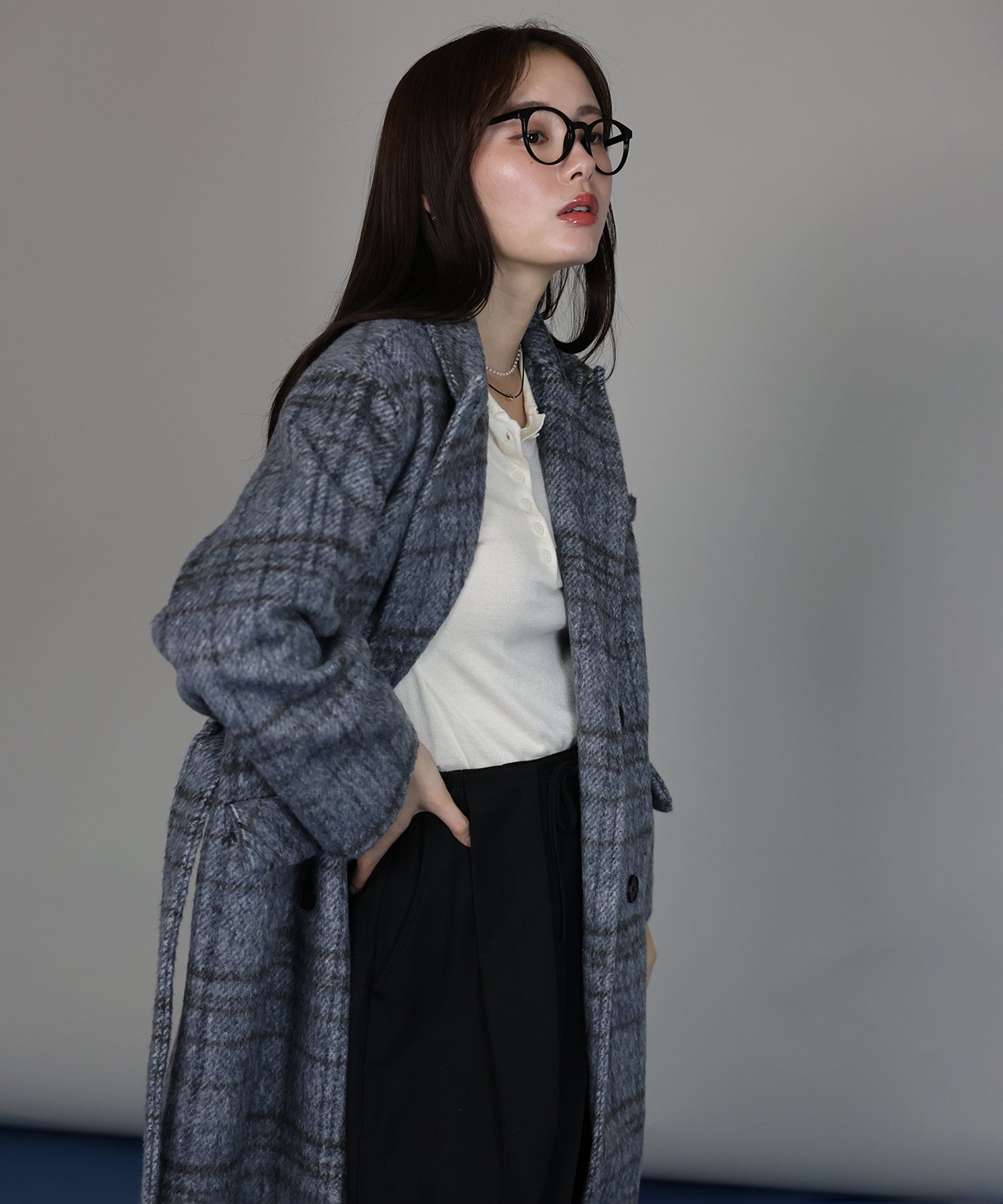 起毛感のある柔らかなシャギー素材を使用し、季節感たっぷりに仕上げたチェックコート。