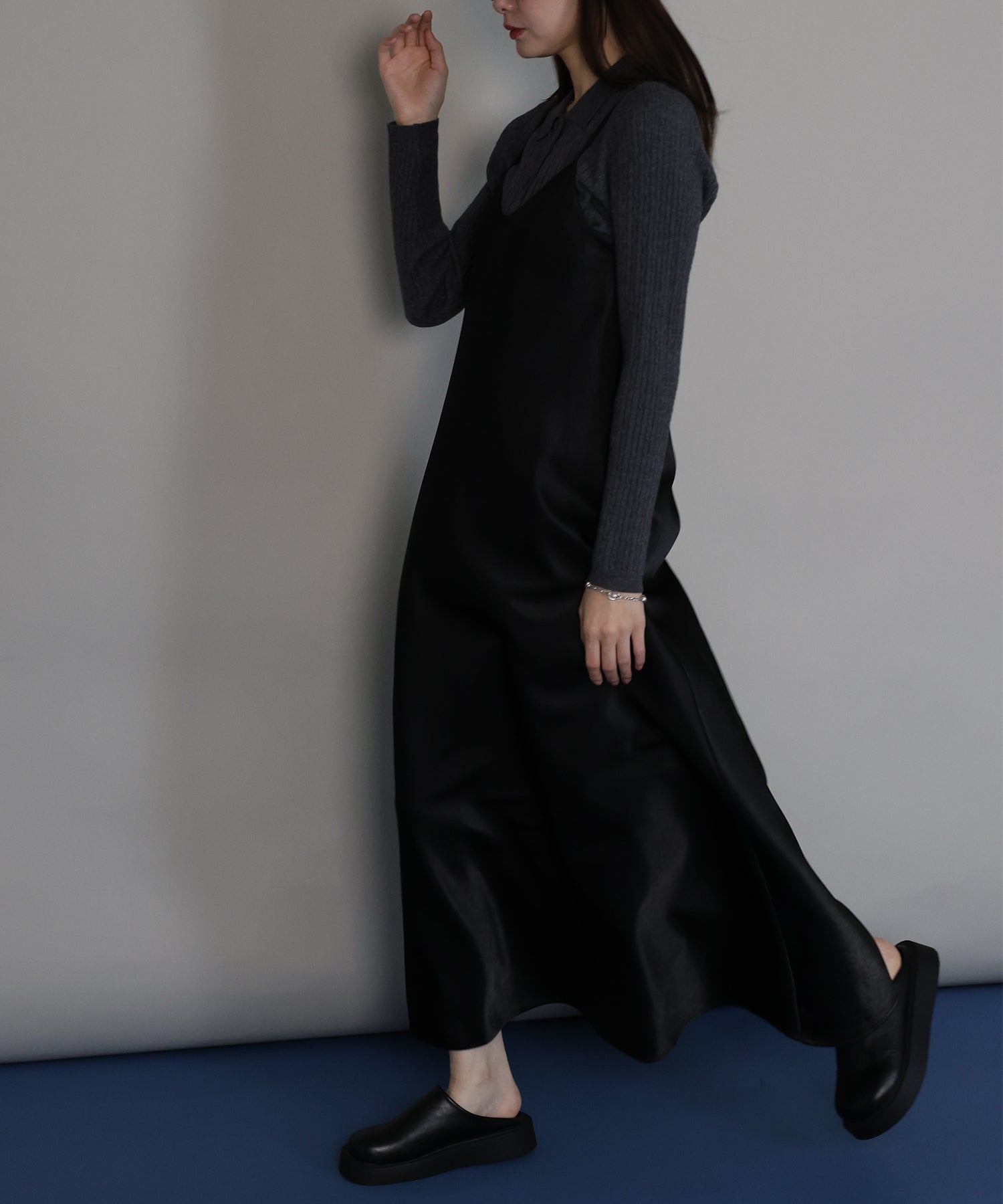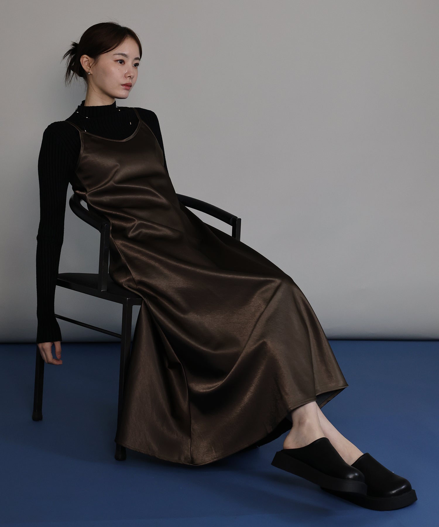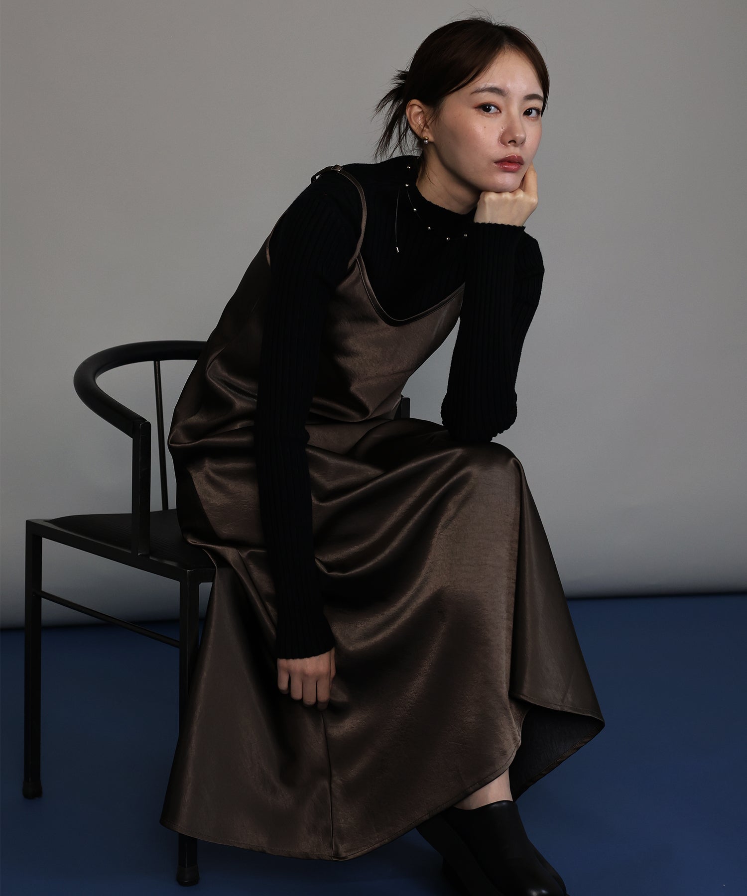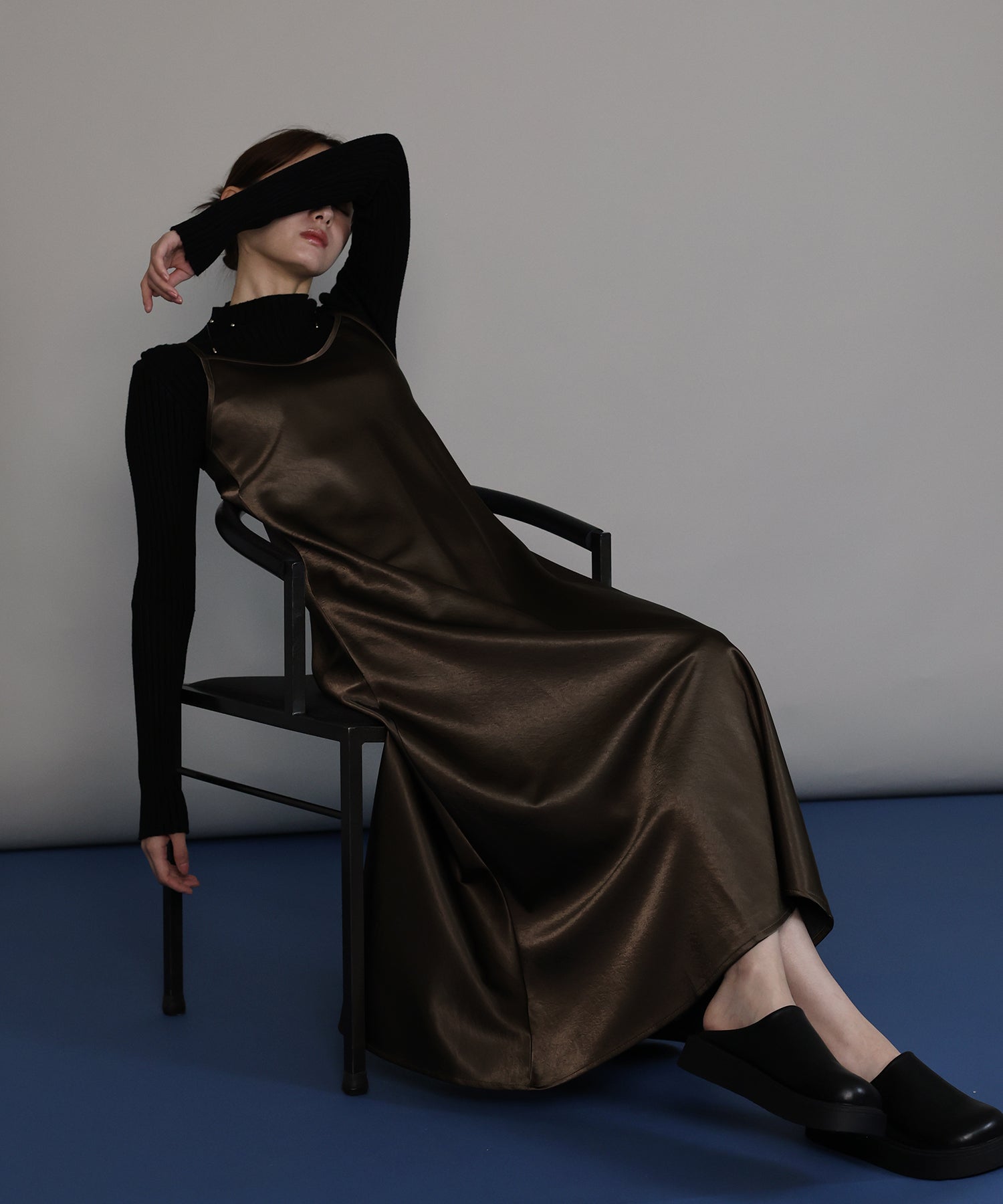 程よい厚みと上品な光沢が魅力のヘビーサテン素材を使用したワンピース。