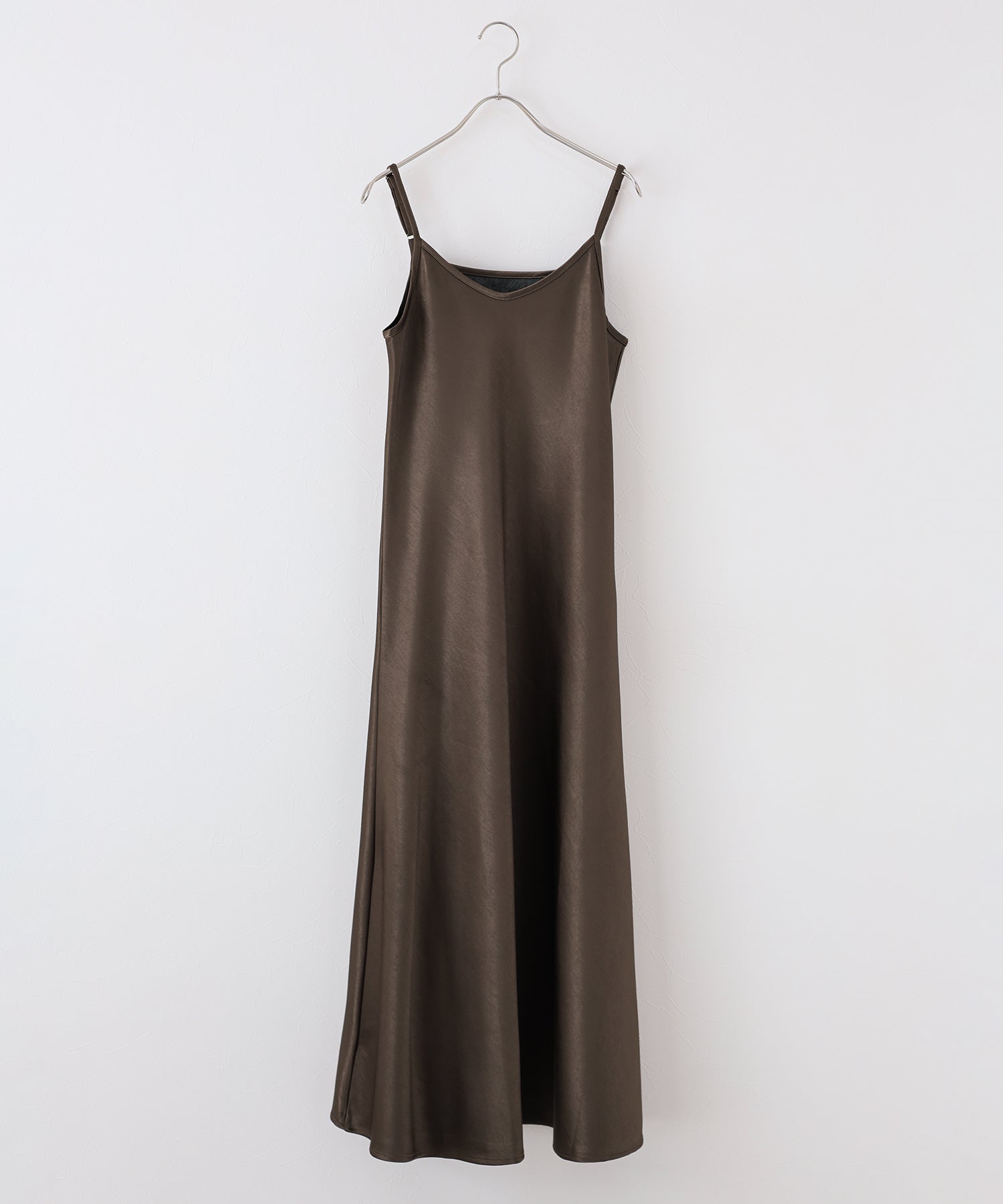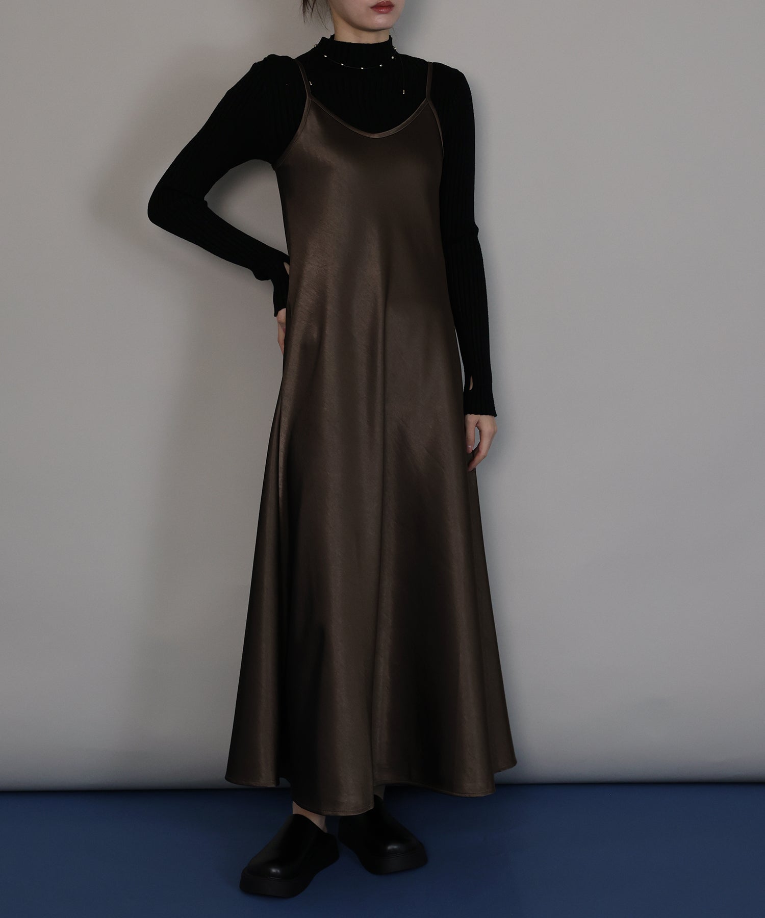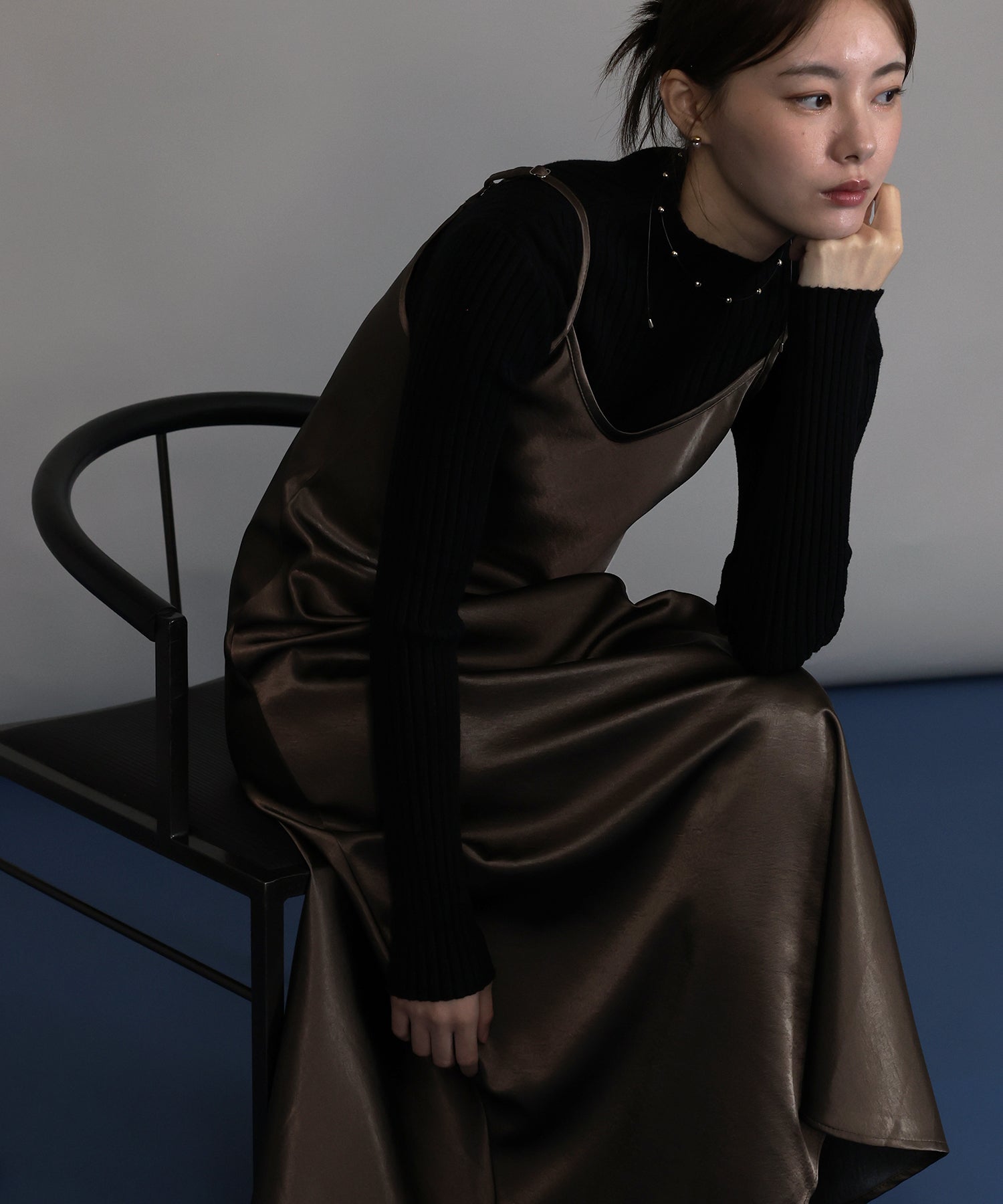 程よい厚みと上品な光沢が魅力のヘビーサテン素材を使用したワンピース。