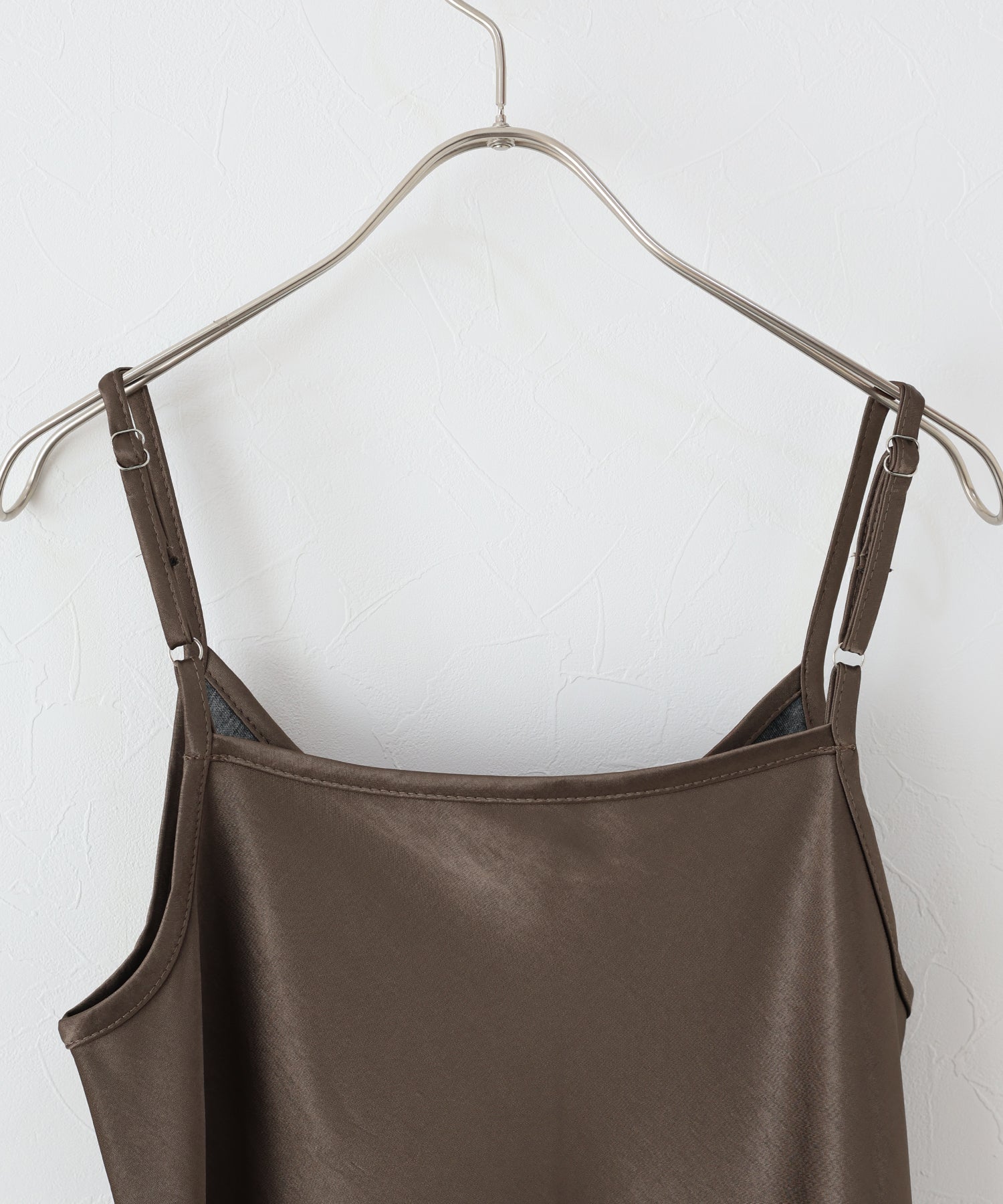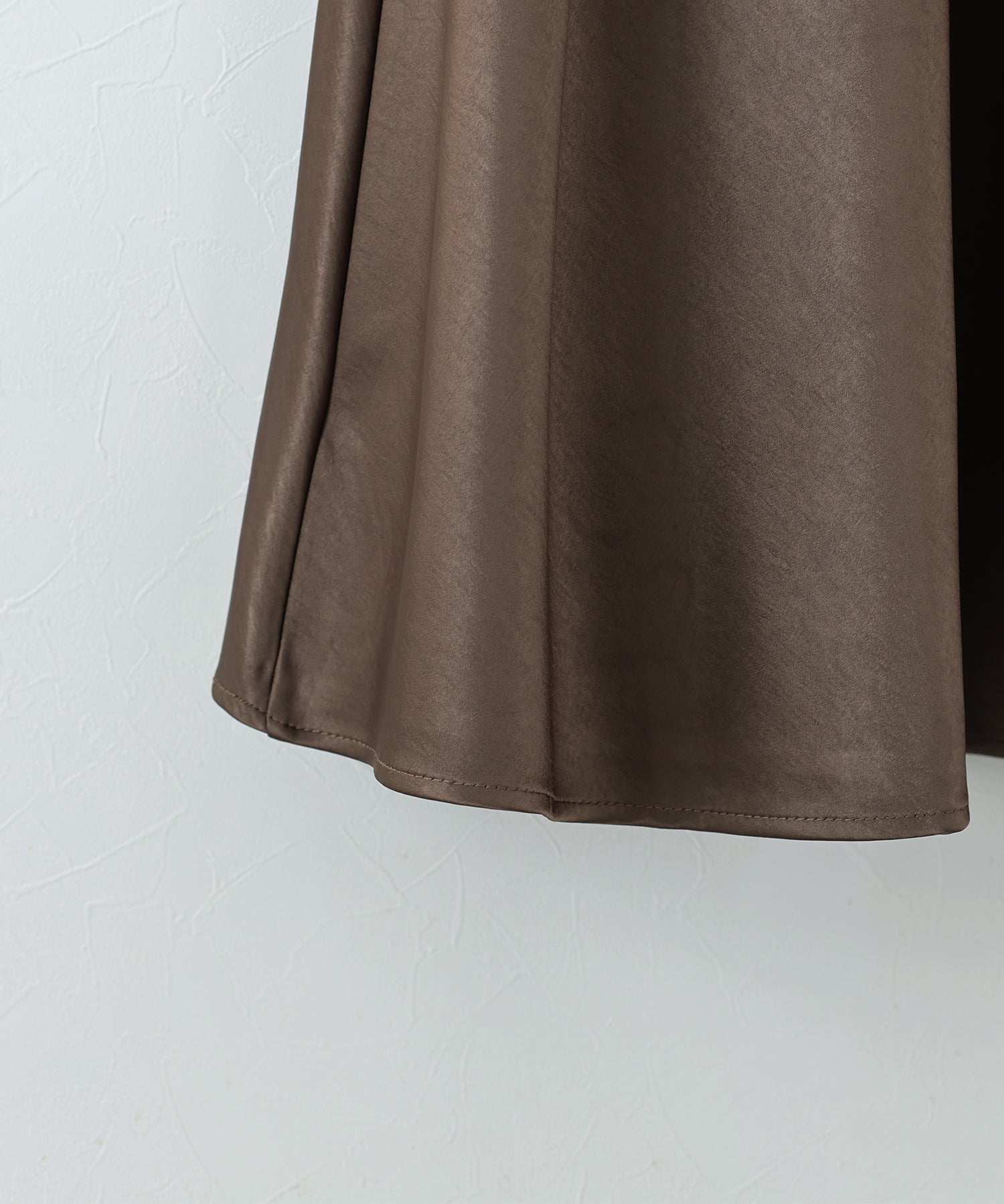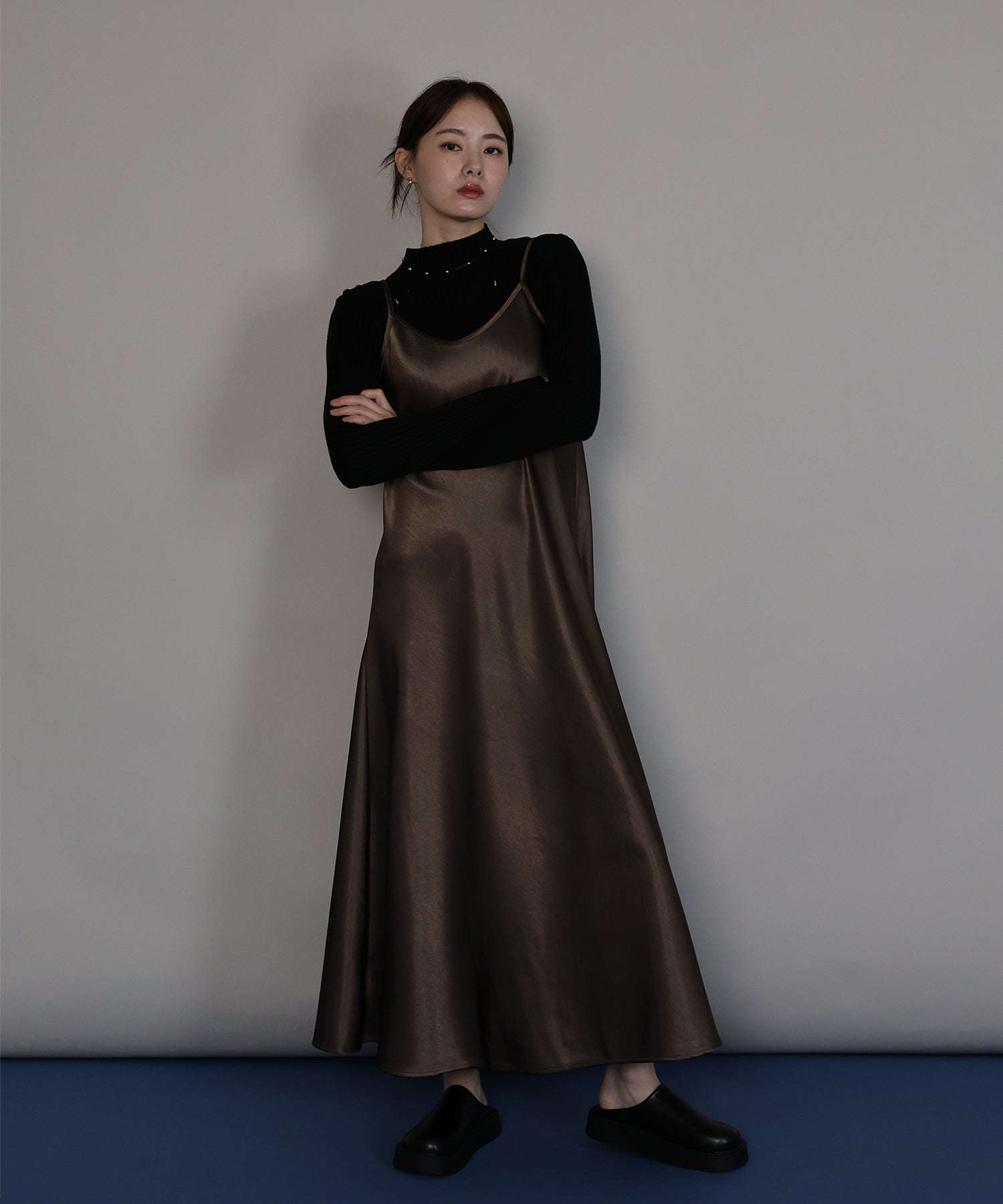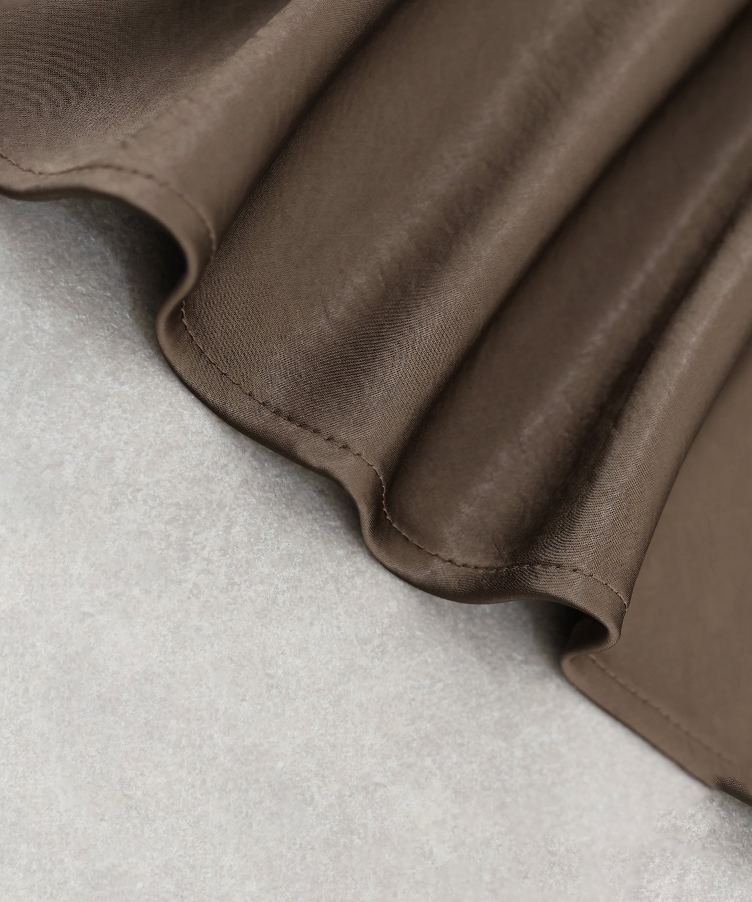 程よい厚みと上品な光沢が魅力のヘビーサテン素材を使用したワンピース。